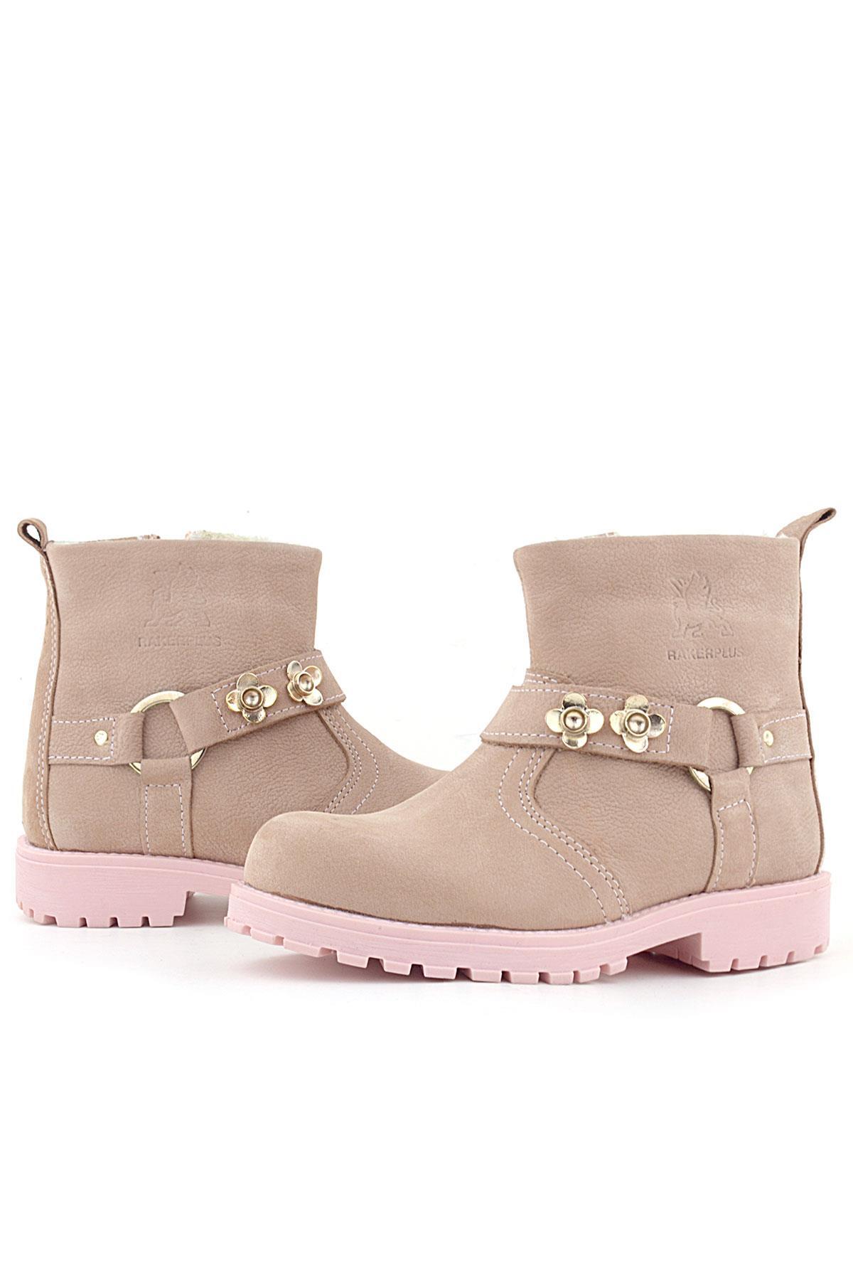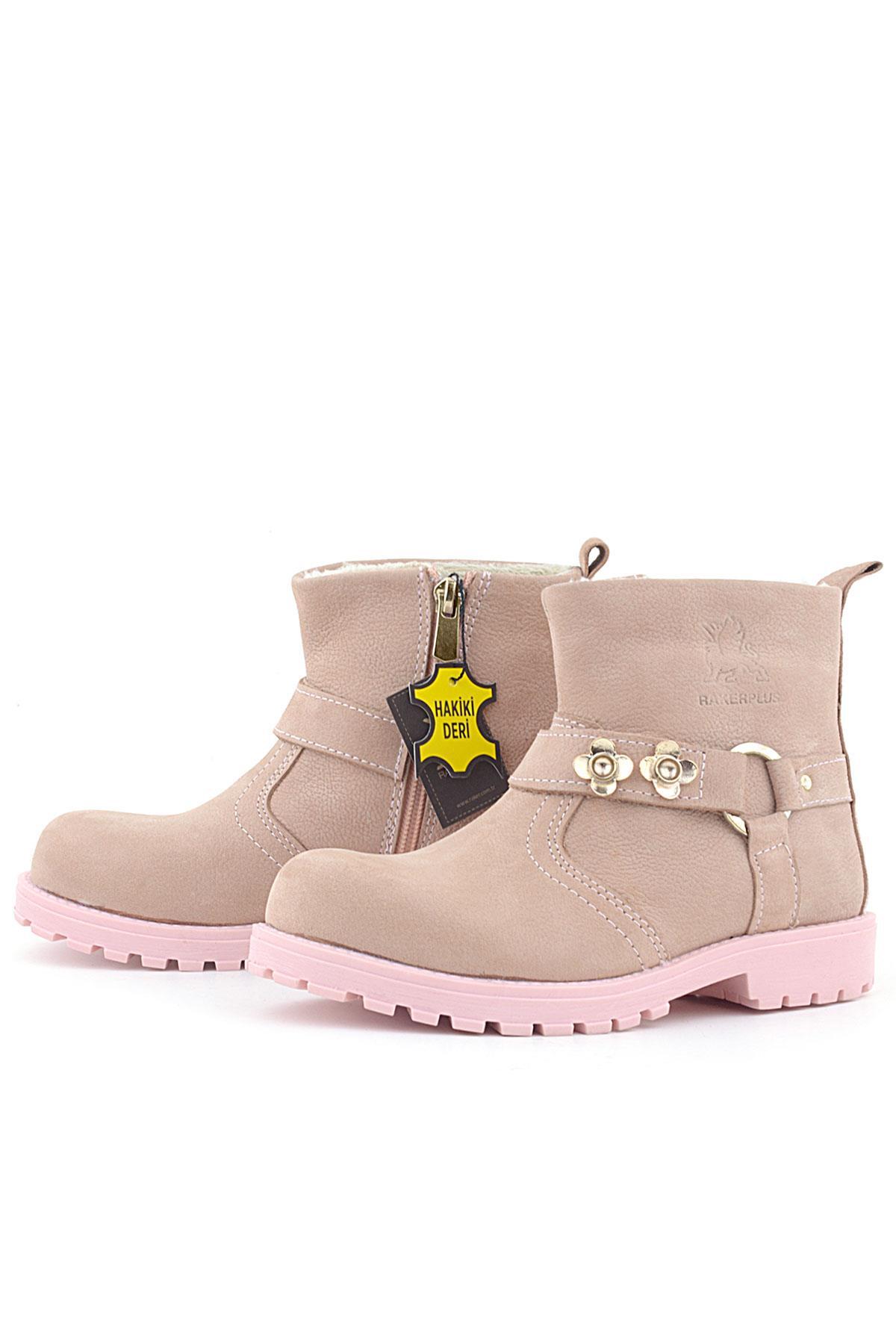 Rakerplus Griffon Hakiki Deri Pembe Fermuarlı Kışlık Kız Çocuk Bot