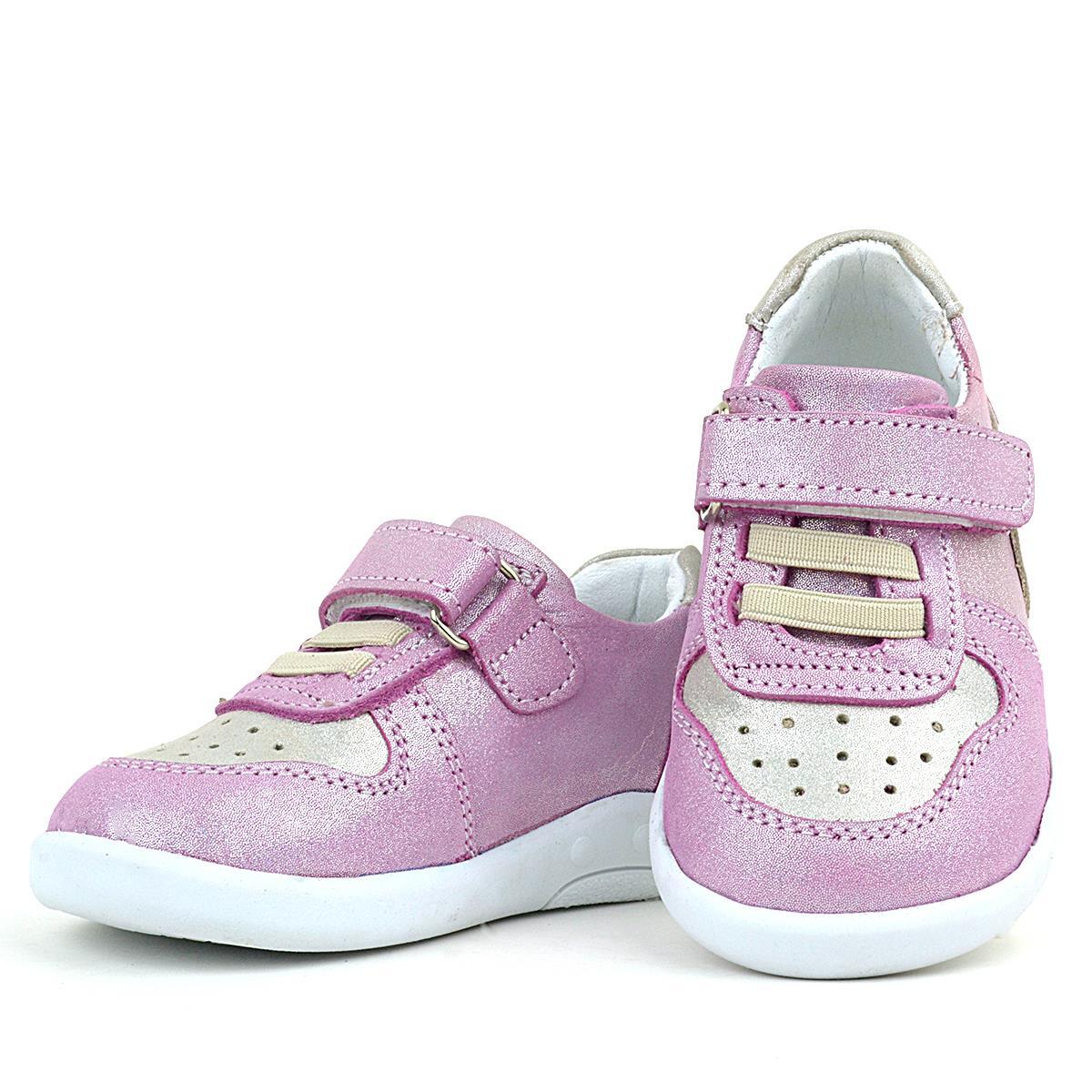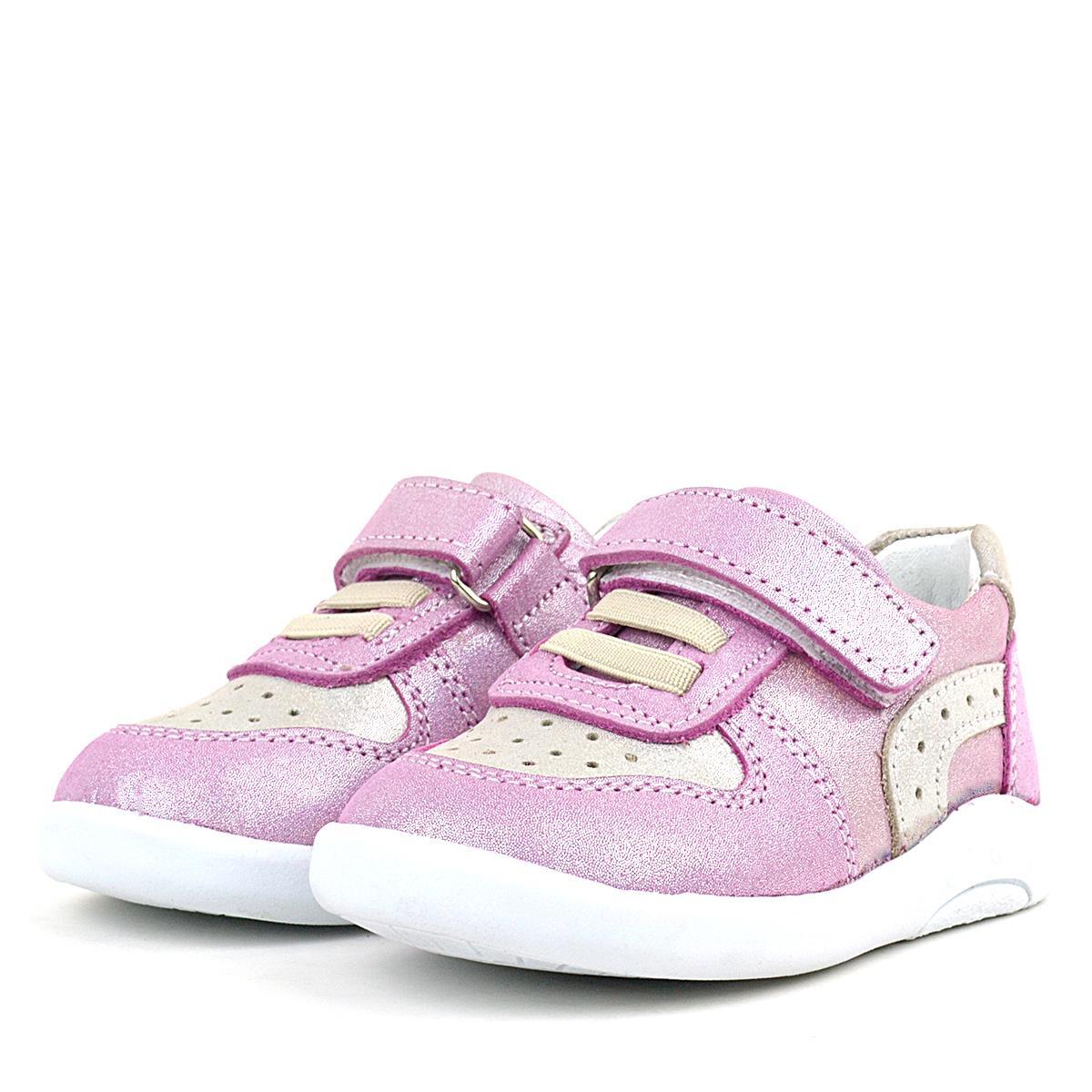 حذاء رياضي للأطفال من راكر بلاس، مصنوع من الجلد الطبيعي، بتصميم تشريحي وردي لامع