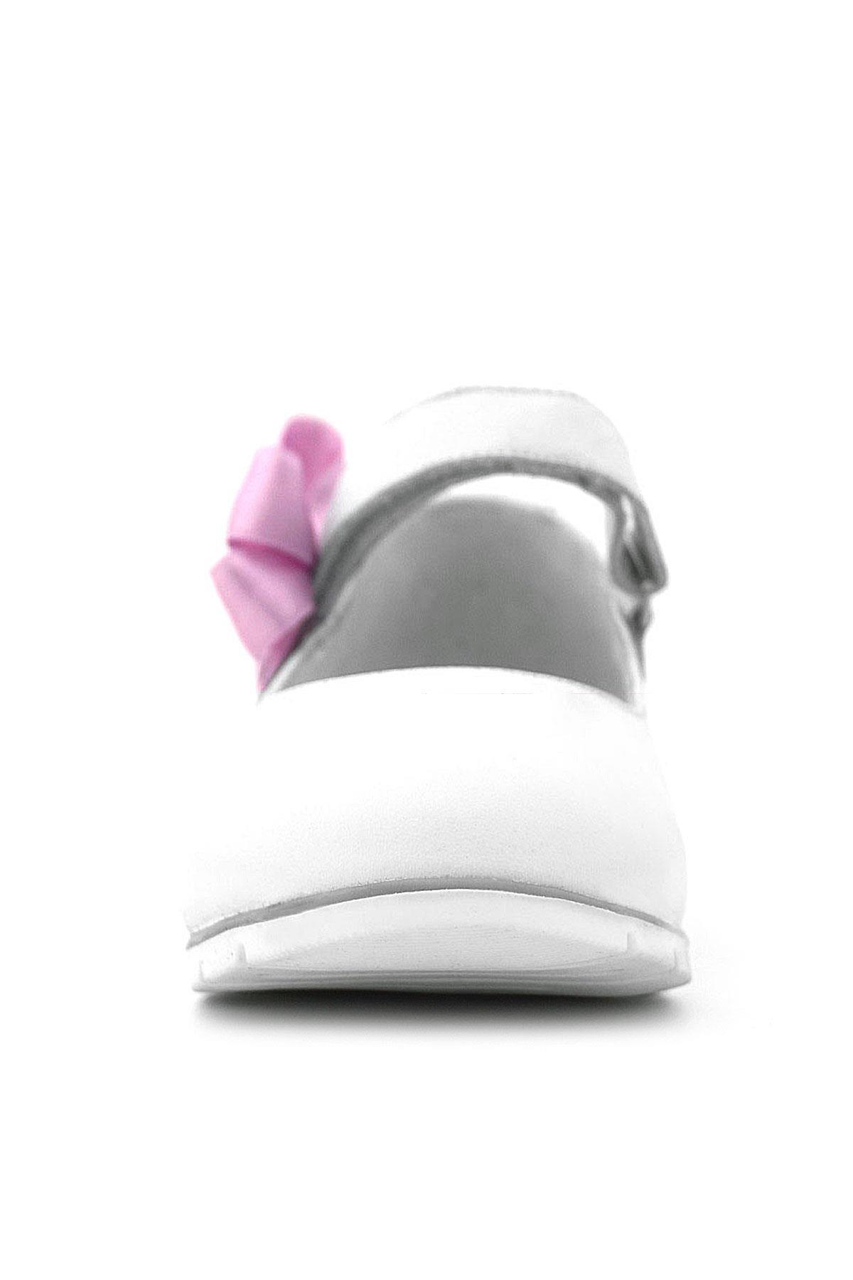 حذاء باليرينا للفتيات من جلد طبيعي من راكر بلاس مع شريط فيلكرو أبيض وردي