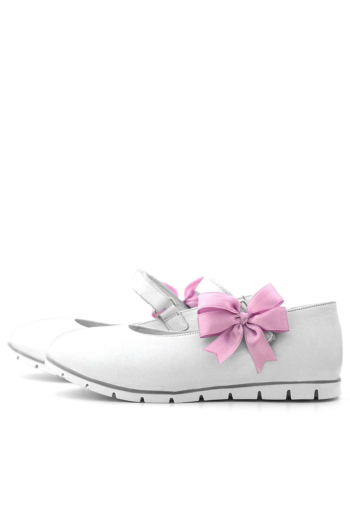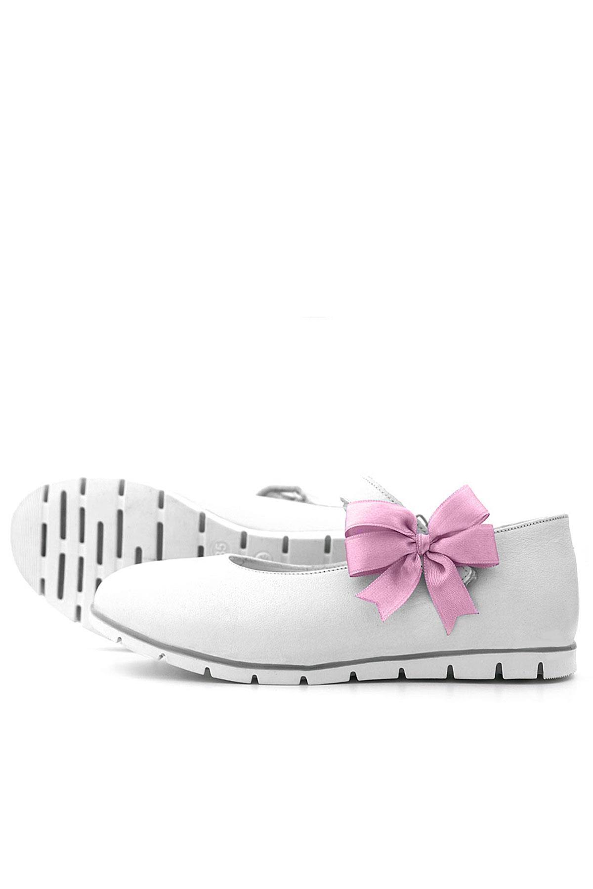 حذاء باليرينا أبيض من الجلد الطبيعي للفتيات من راكر بلاس
