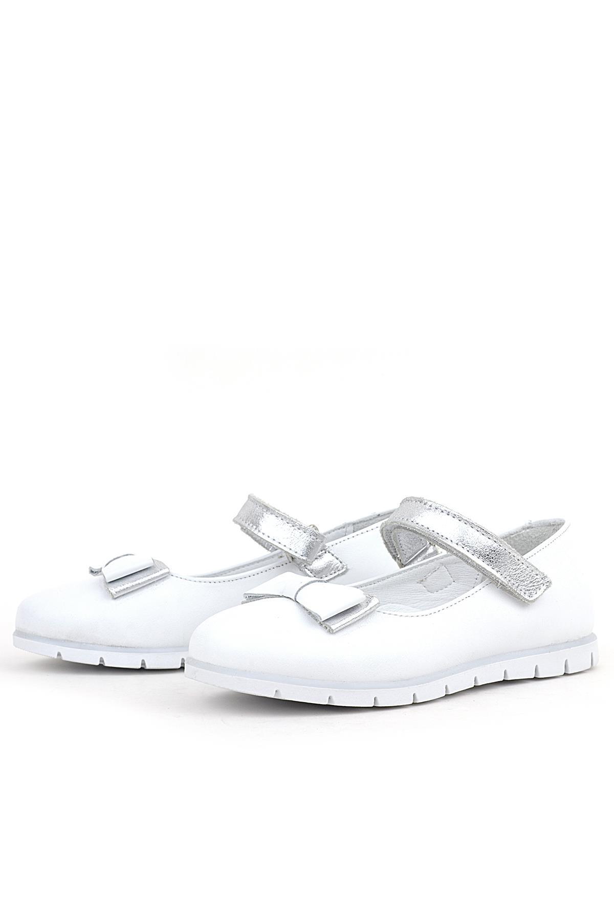 Rakerplus Genuine Leather White Velcro Flower Detailed Girls Ballerina Shoes