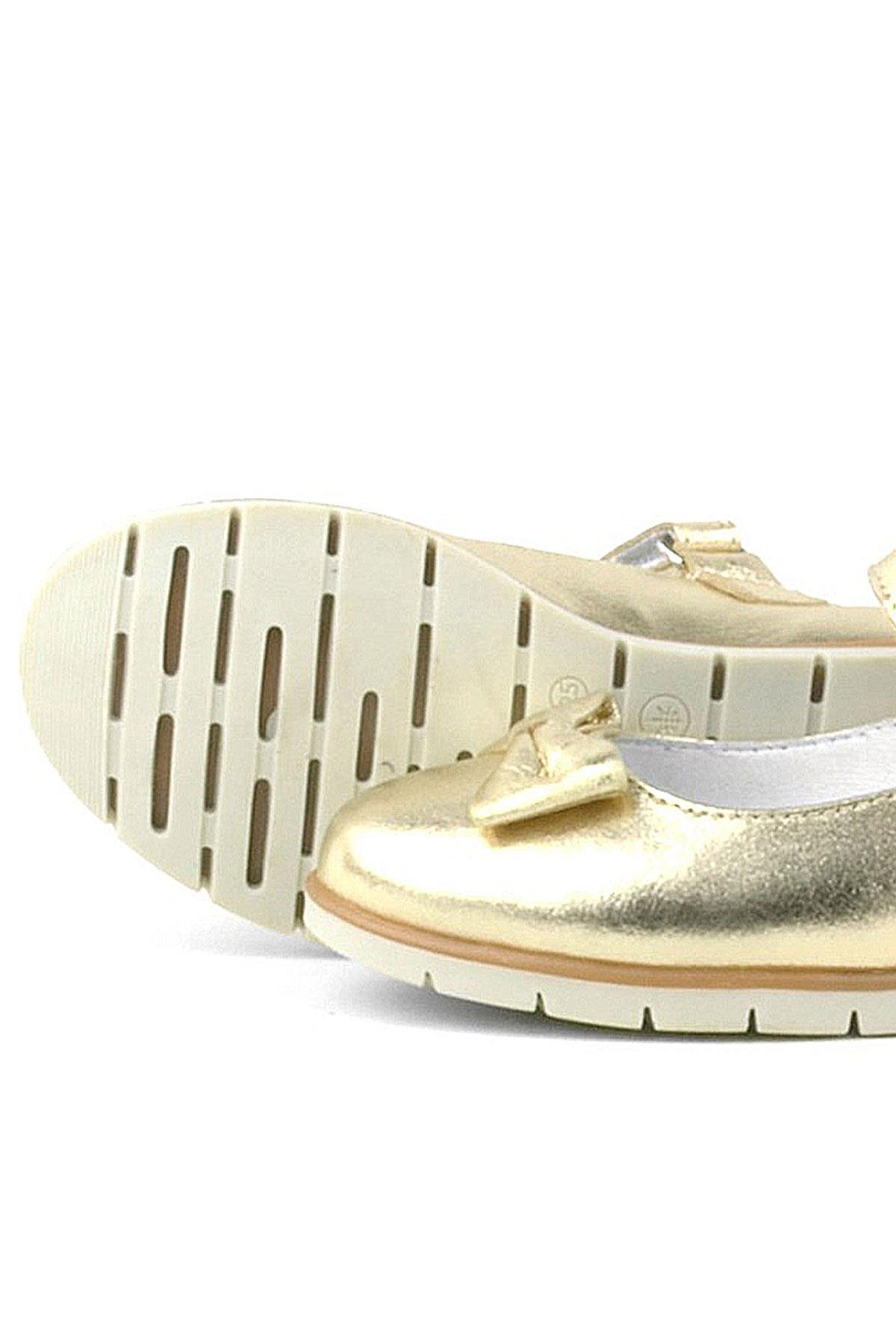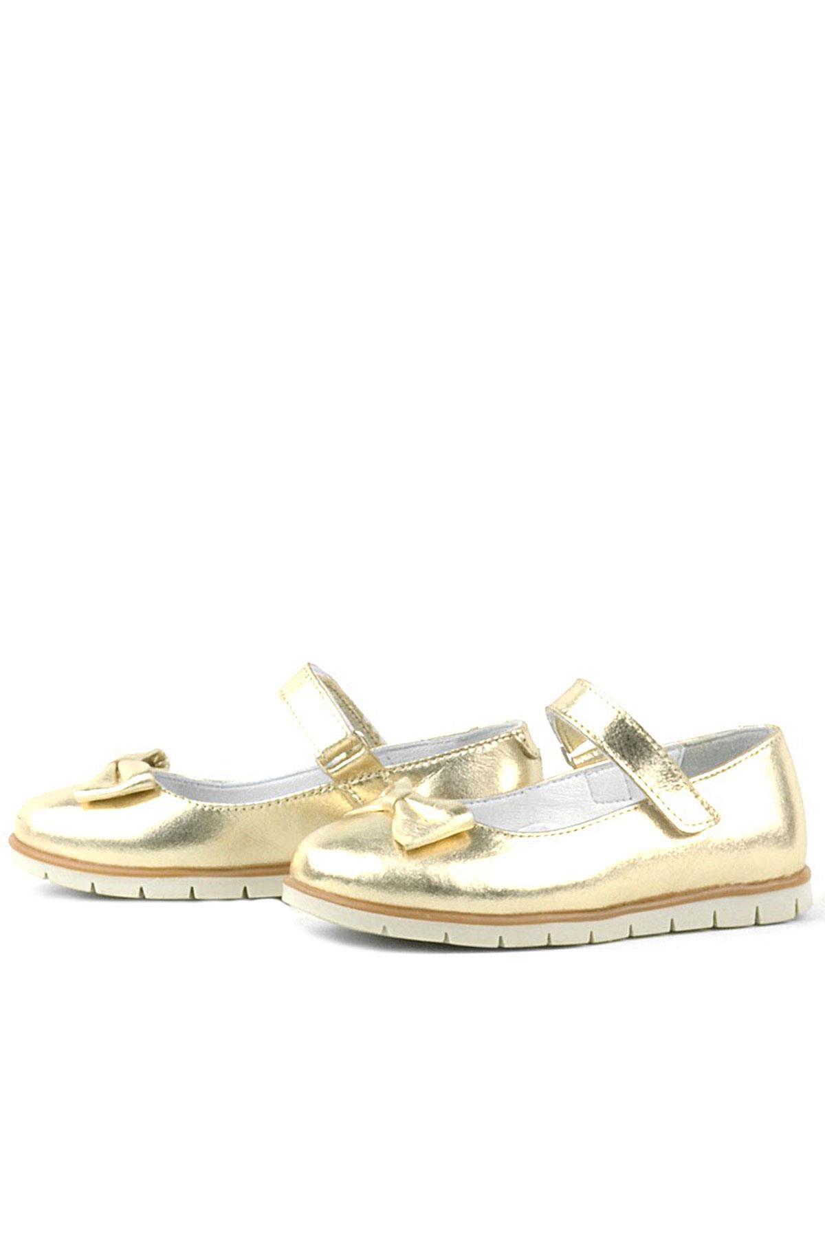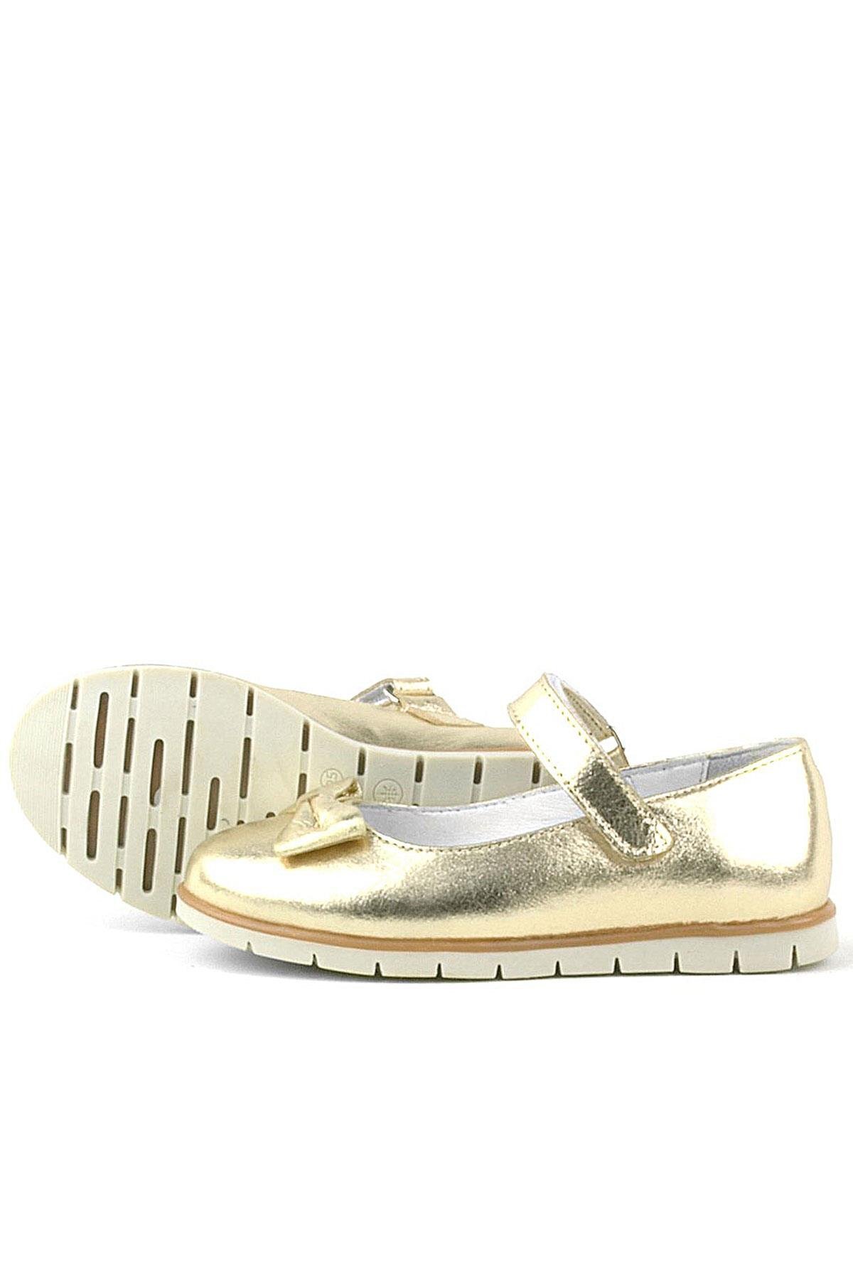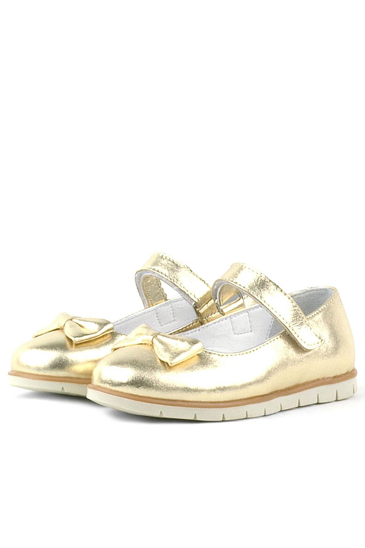 حذاء باليرينا للبنات من الجلد الطبيعي مع فيونكة ذهبية من راكر بلاس