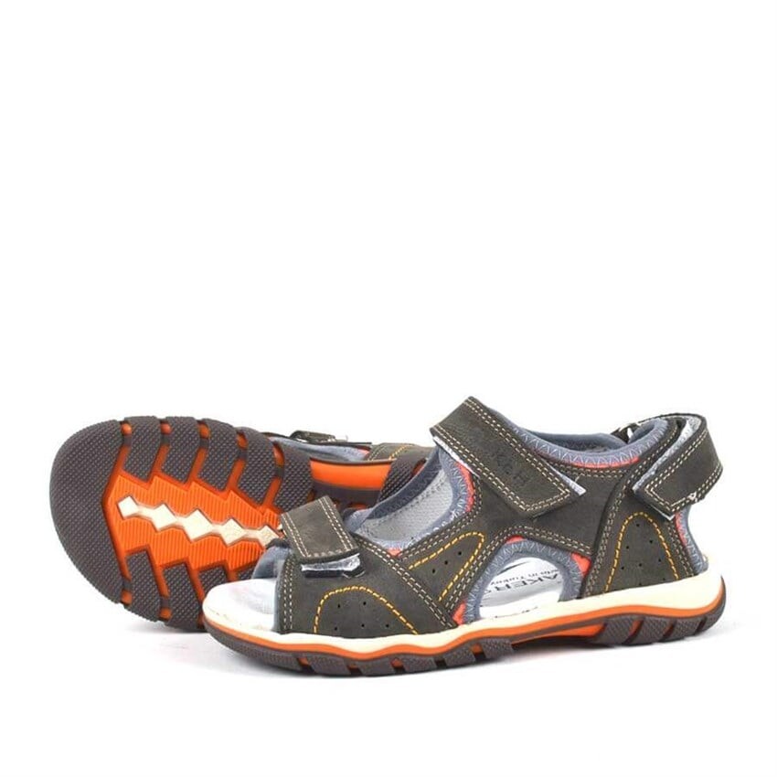 Rakerplus Hakiki Deri Gri Cırtlı Erkek Çocuk Sandalet