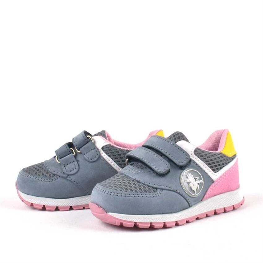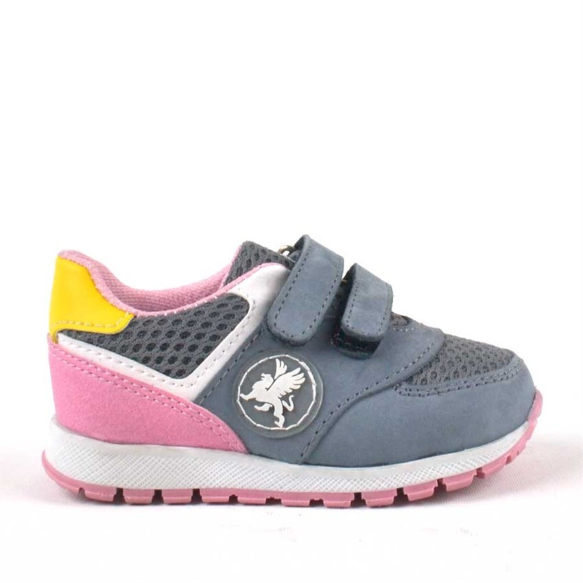 حذاء رياضي من الجلد الطبيعي باللون الرمادي من راكر بلاس مع شريط فيلكرو للفتيات الصغيرات