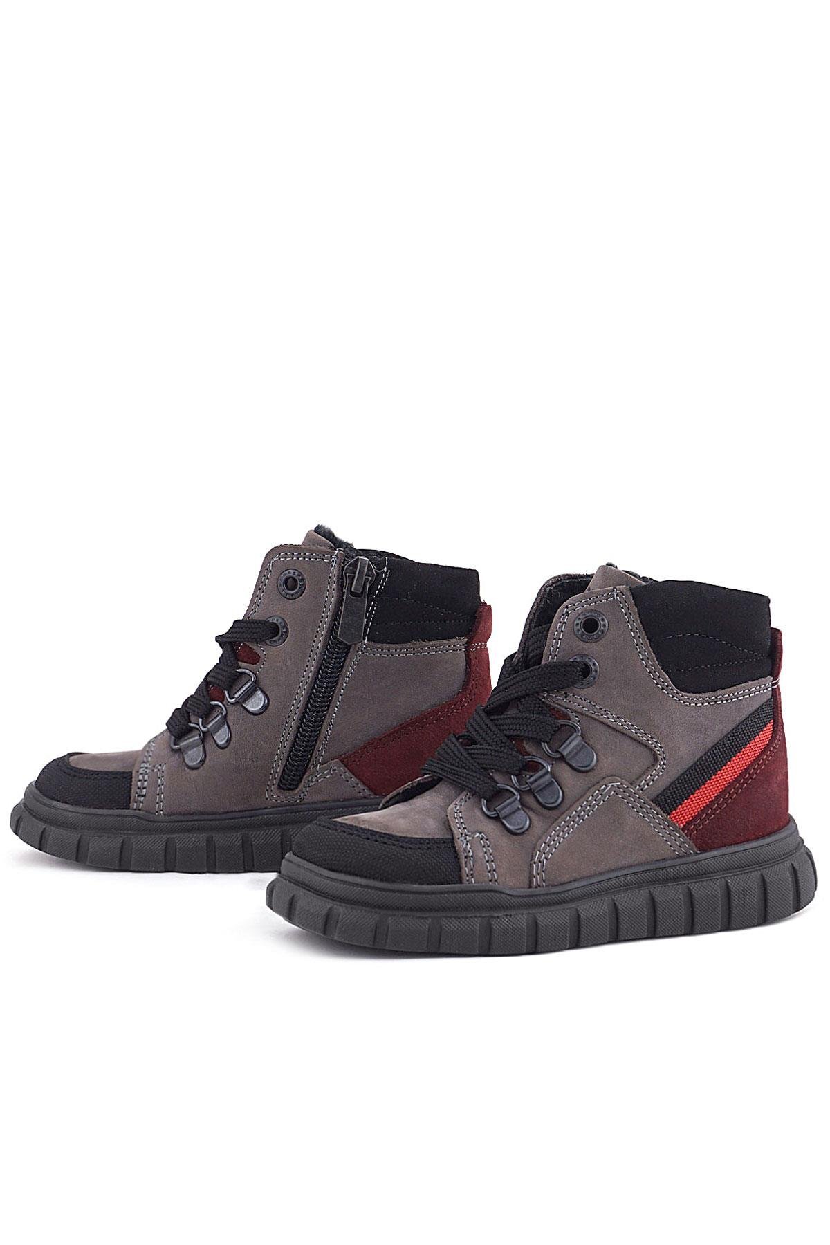 Rakerplus Hakiki Deri Gri Siyah Fermuarlı Erkek Bebek Bot