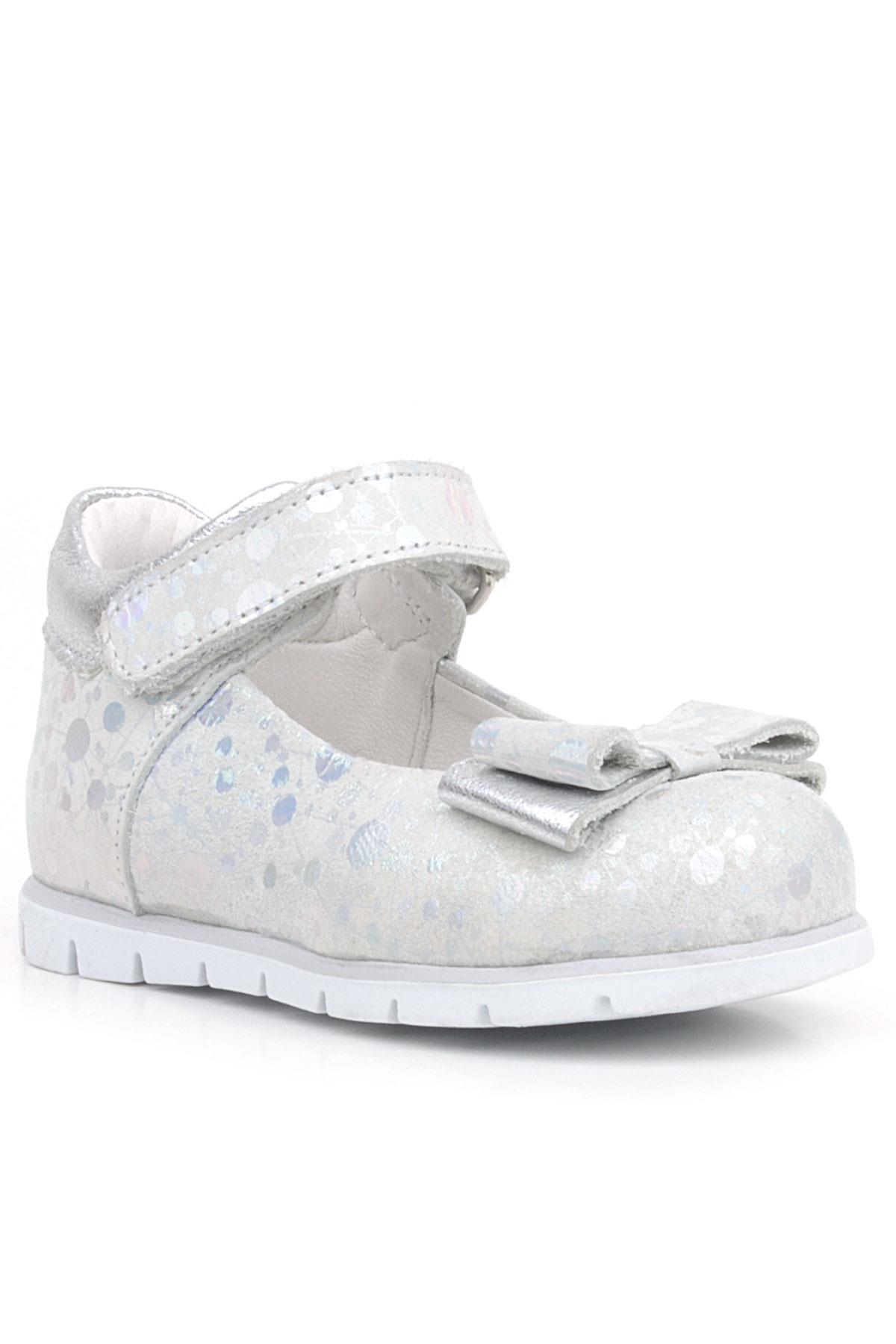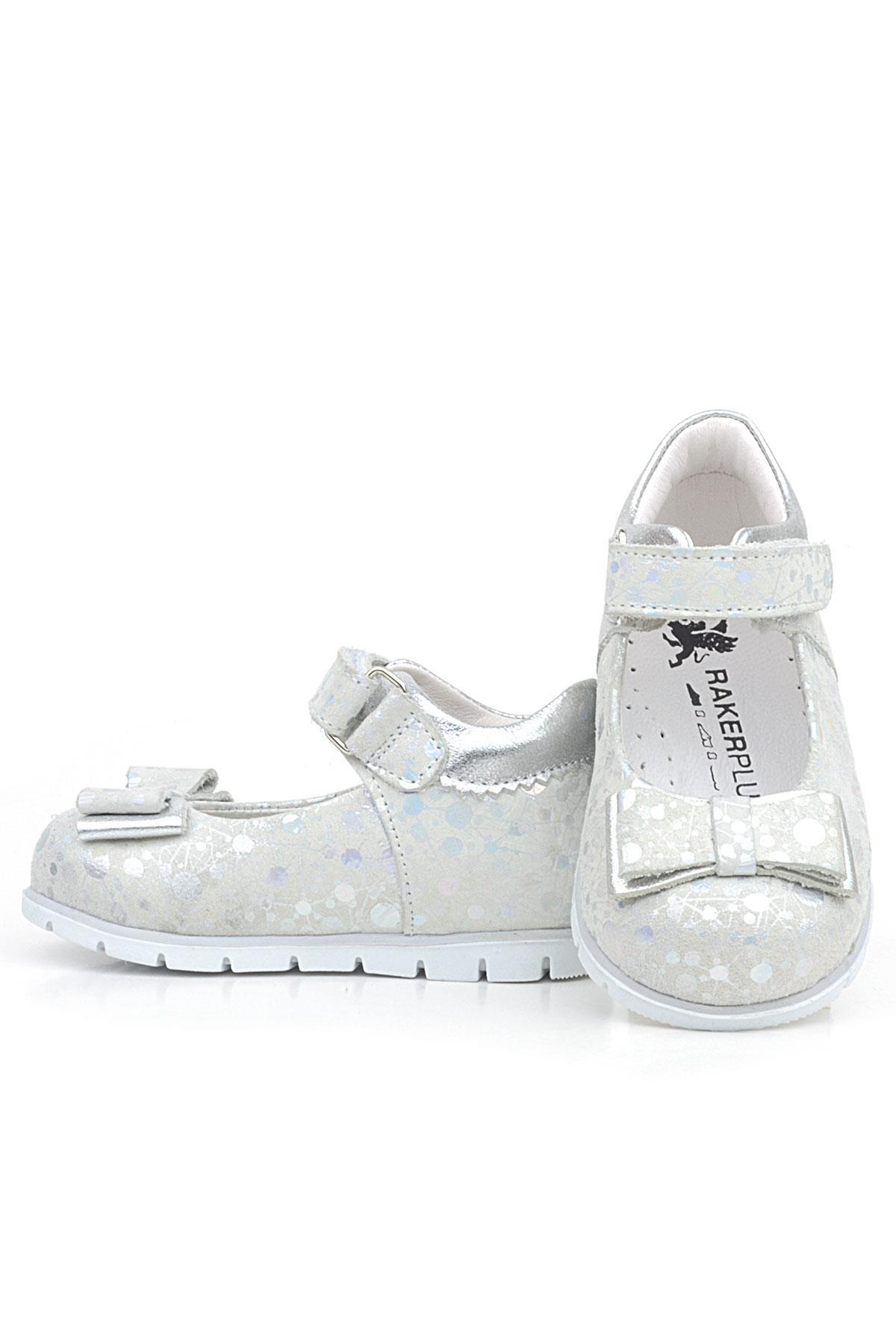 Rakerplus Hakiki Deri Gümüş Desenli Kız Bebek Babet Ayakkabı