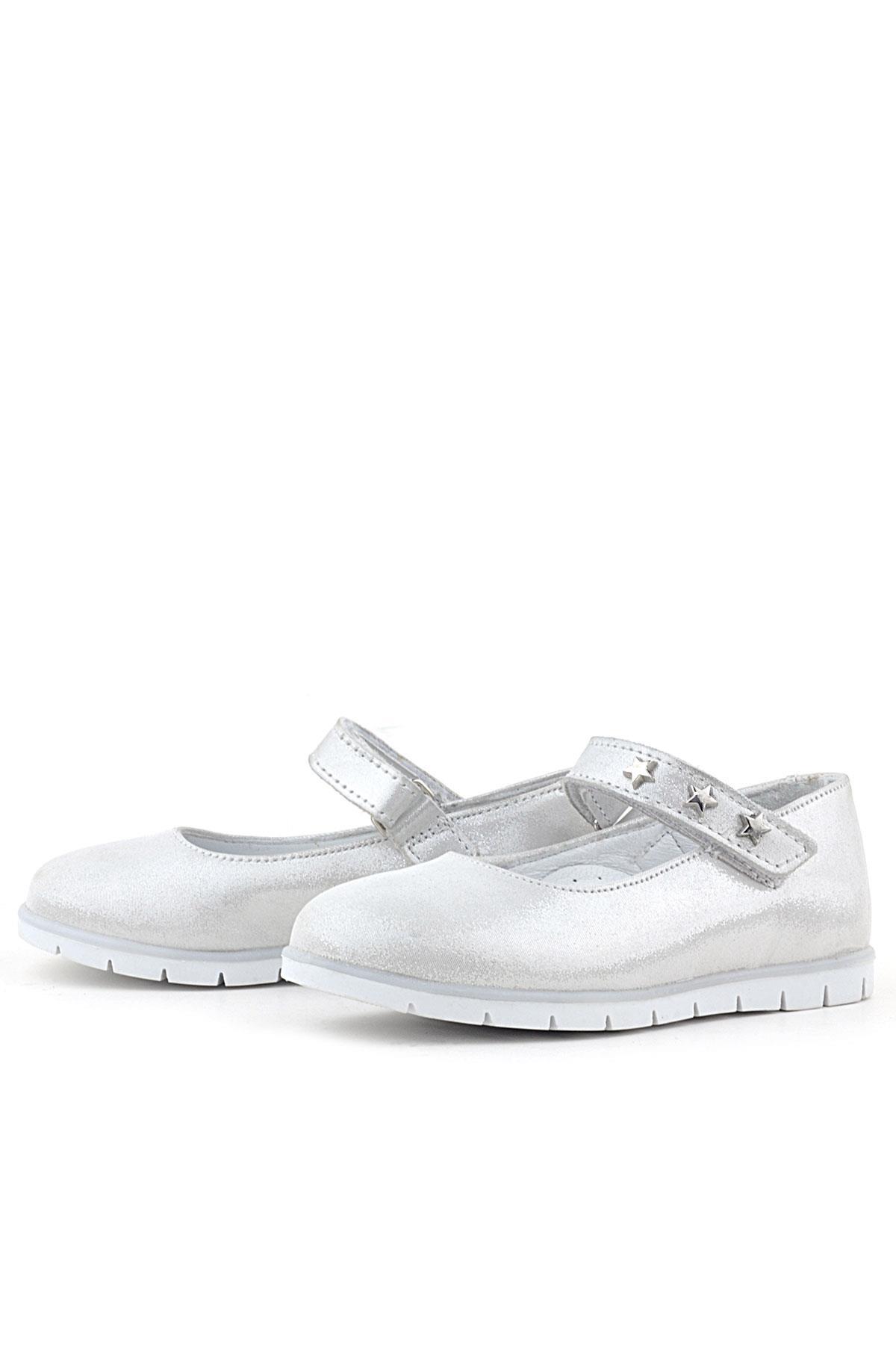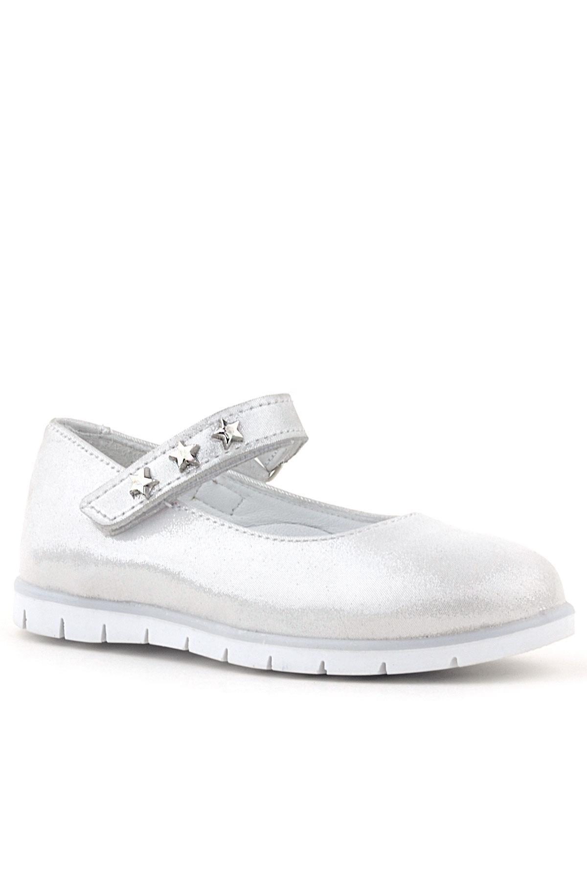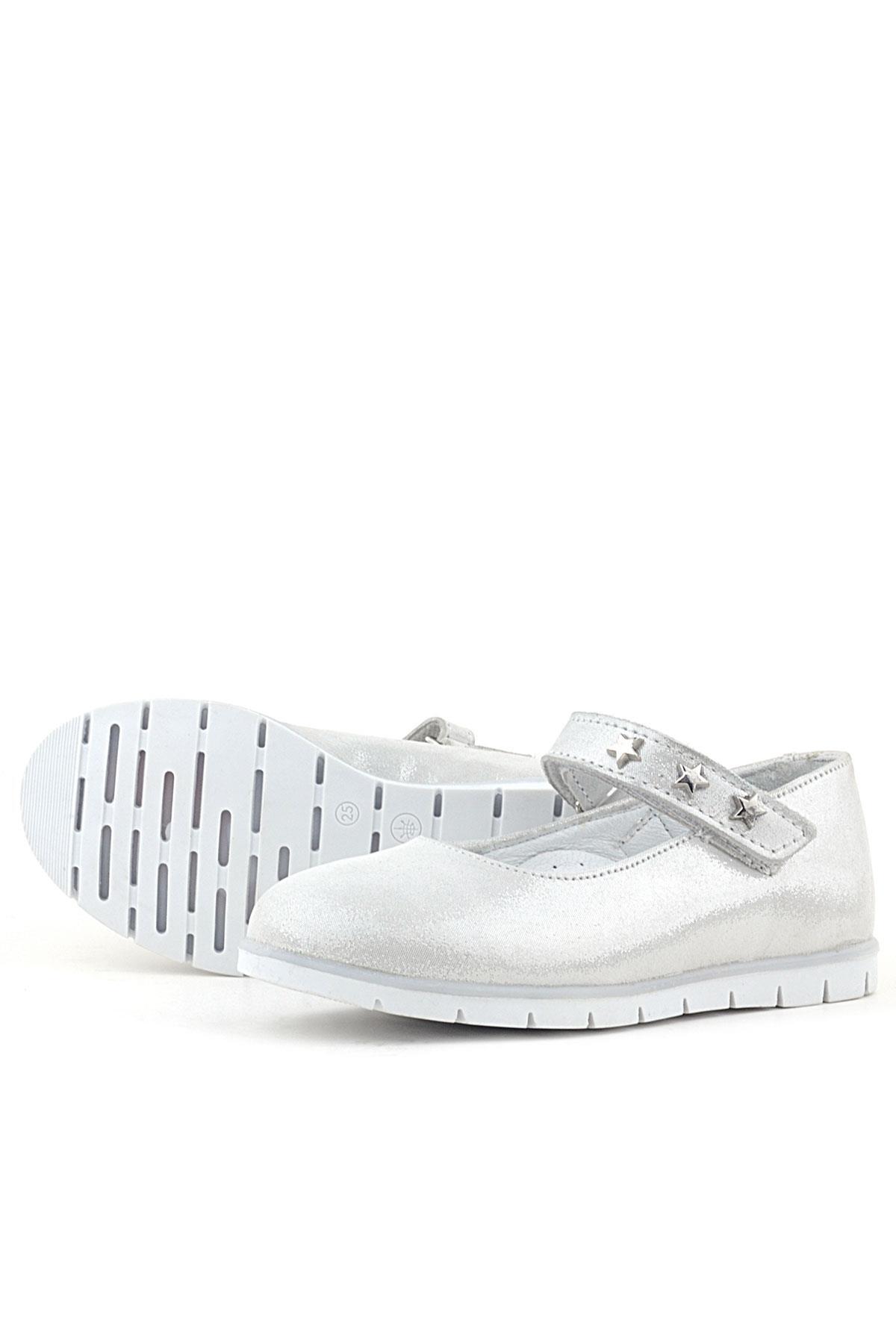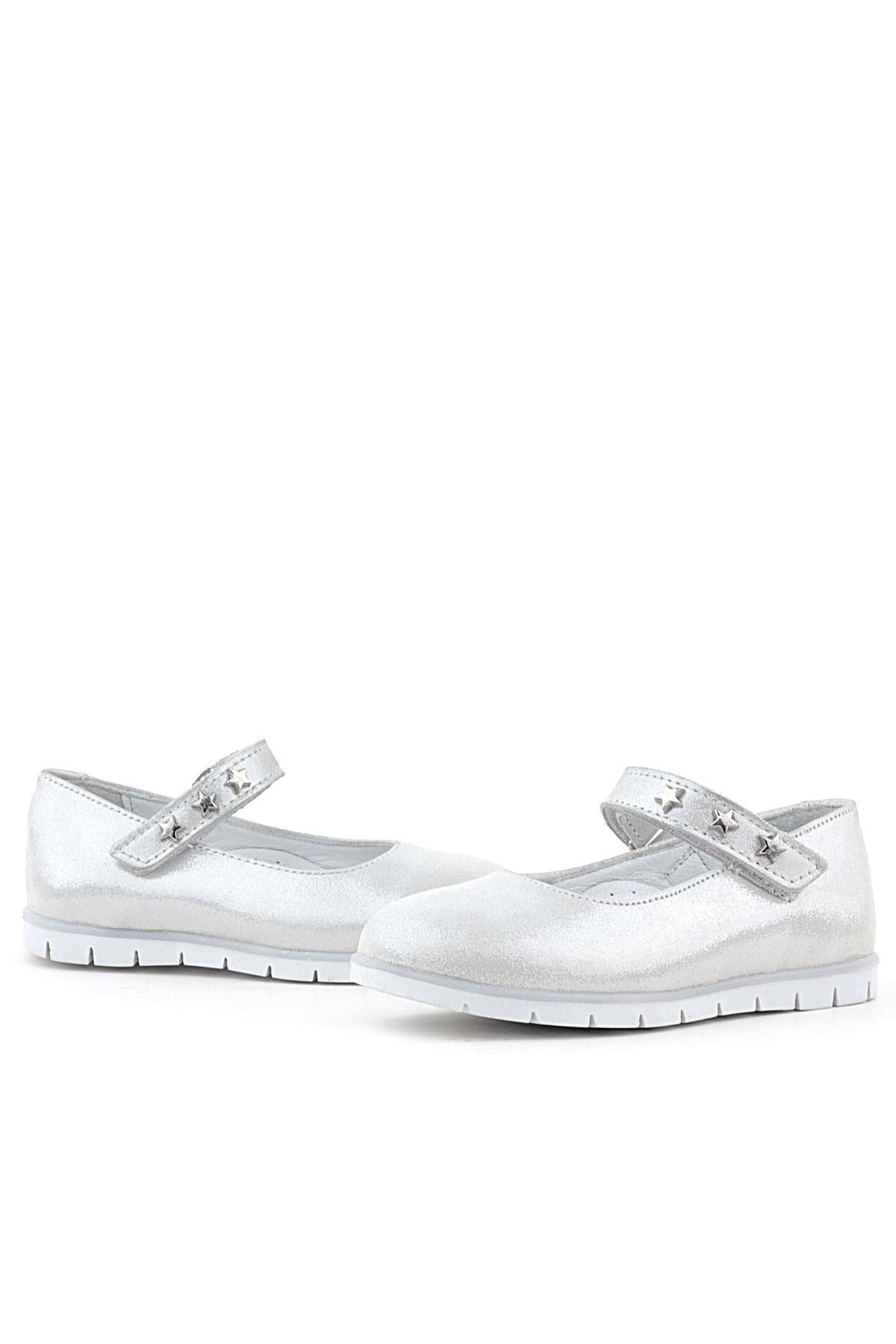 حذاء باليرينا للبنات من الجلد الطبيعي بنجمة فضية مع فيلكرو من راكر بلاس