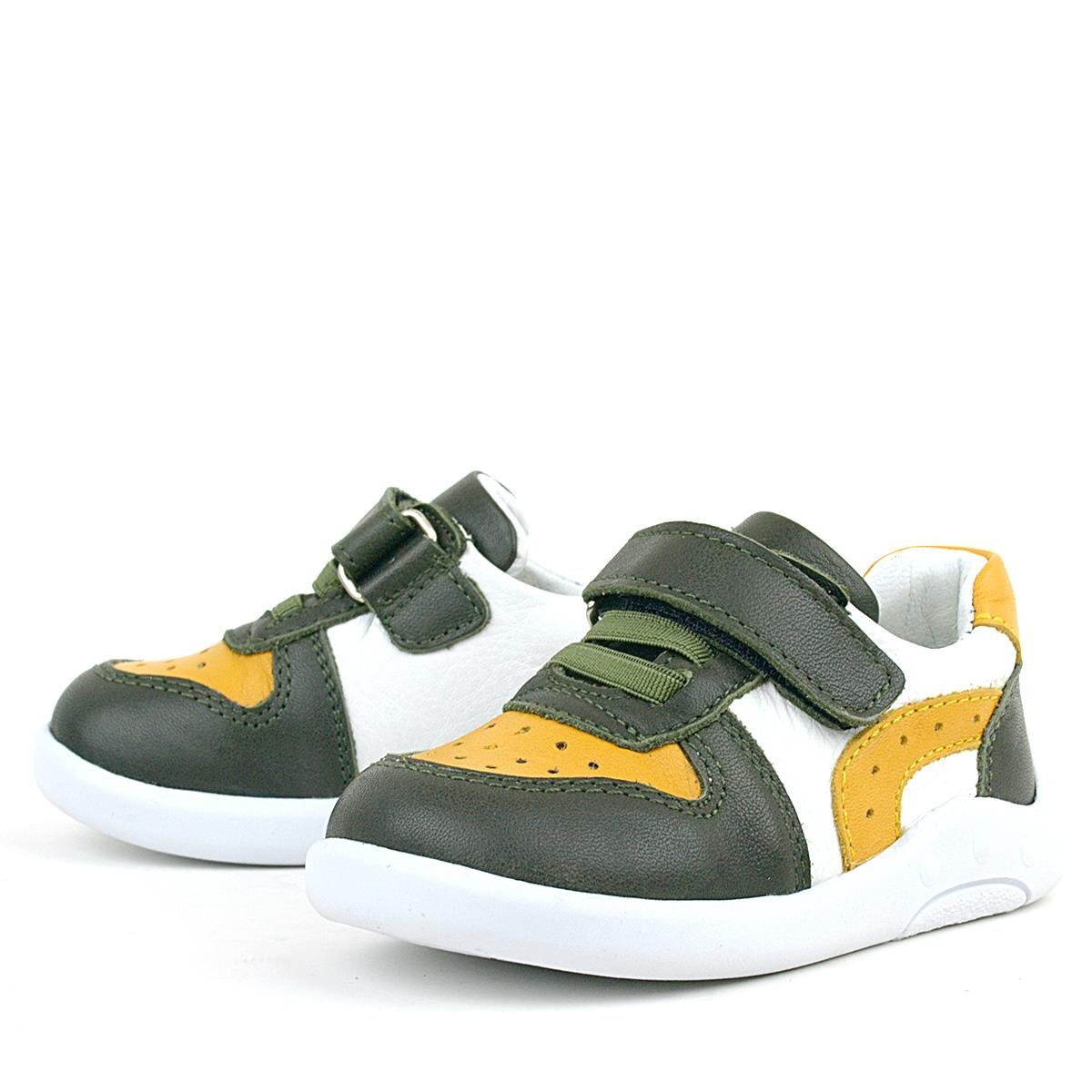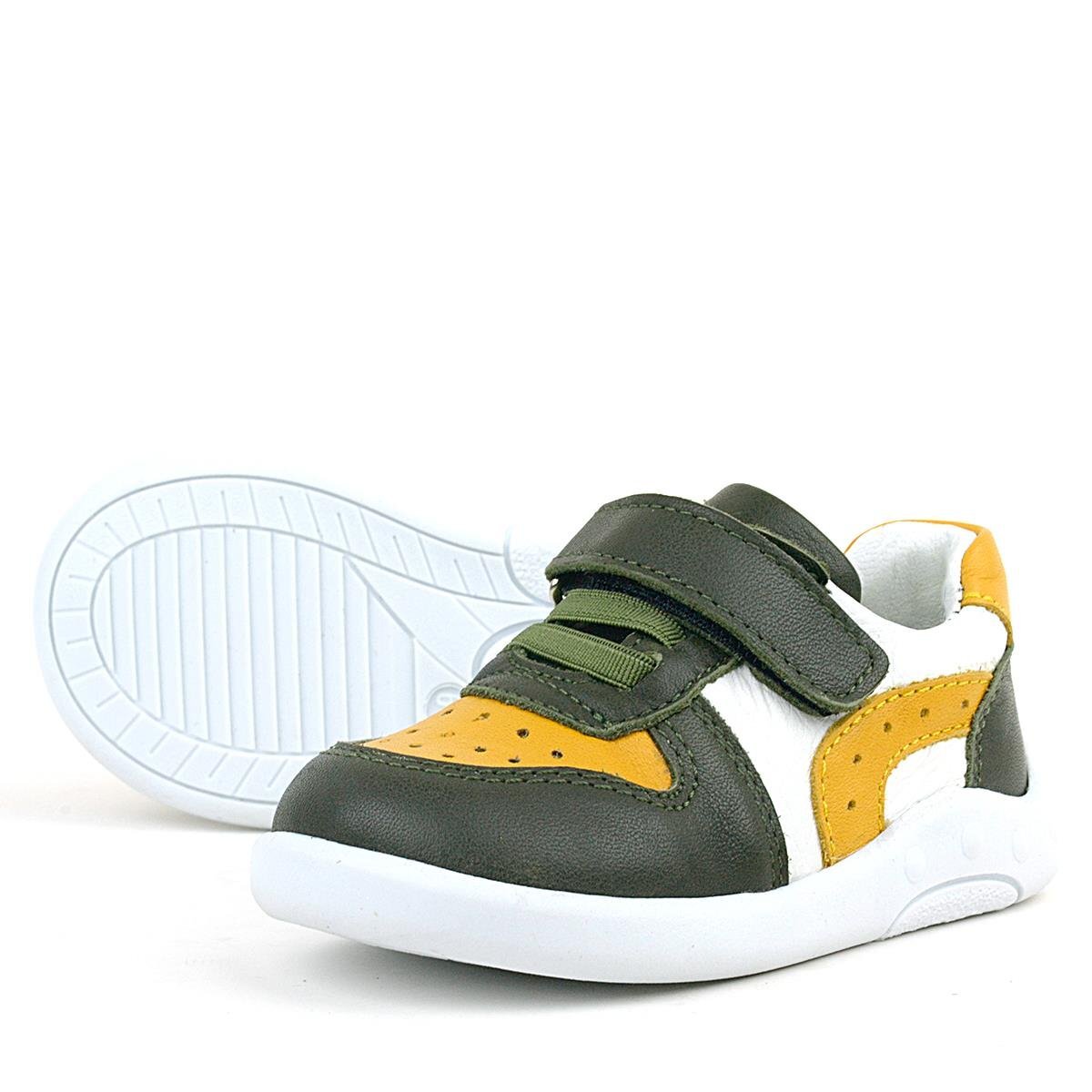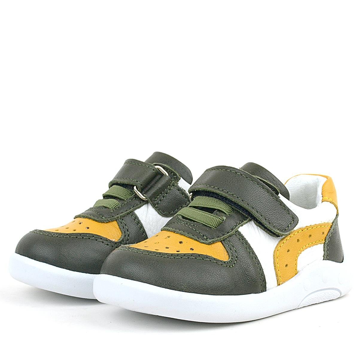 حذاء رياضي تشريحي للأطفال من راكر بلاس، مصنوع من الجلد الطبيعي، لون أصفر كاكي