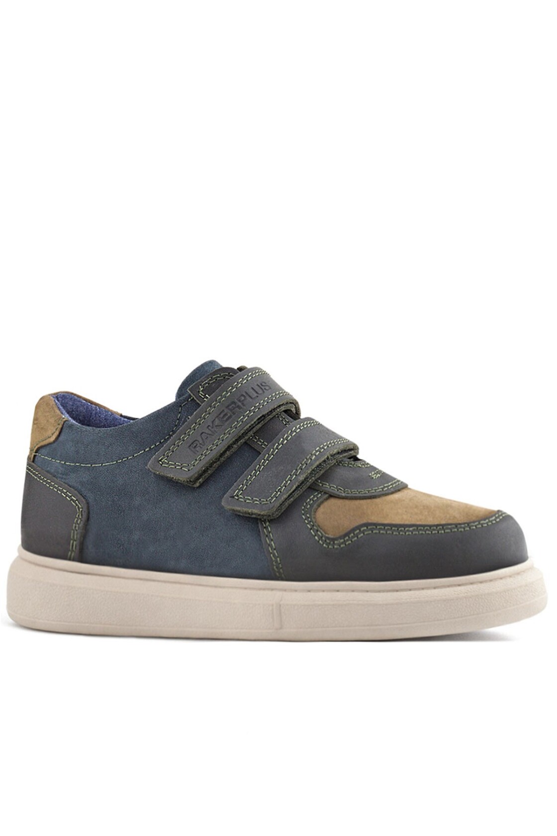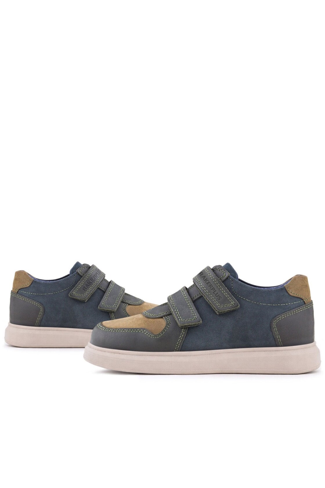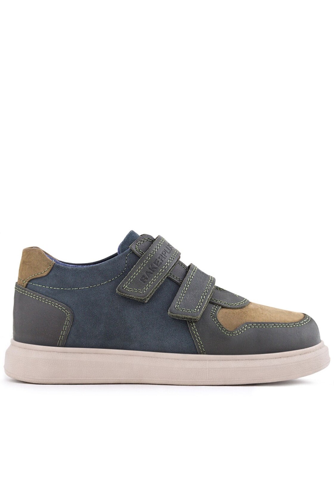 Rakerplus Hakiki Deri Haki Yeşil Lacivert Cırtlı Hafif Tabanlı Erkek Çocuk Spor Ayakkabı