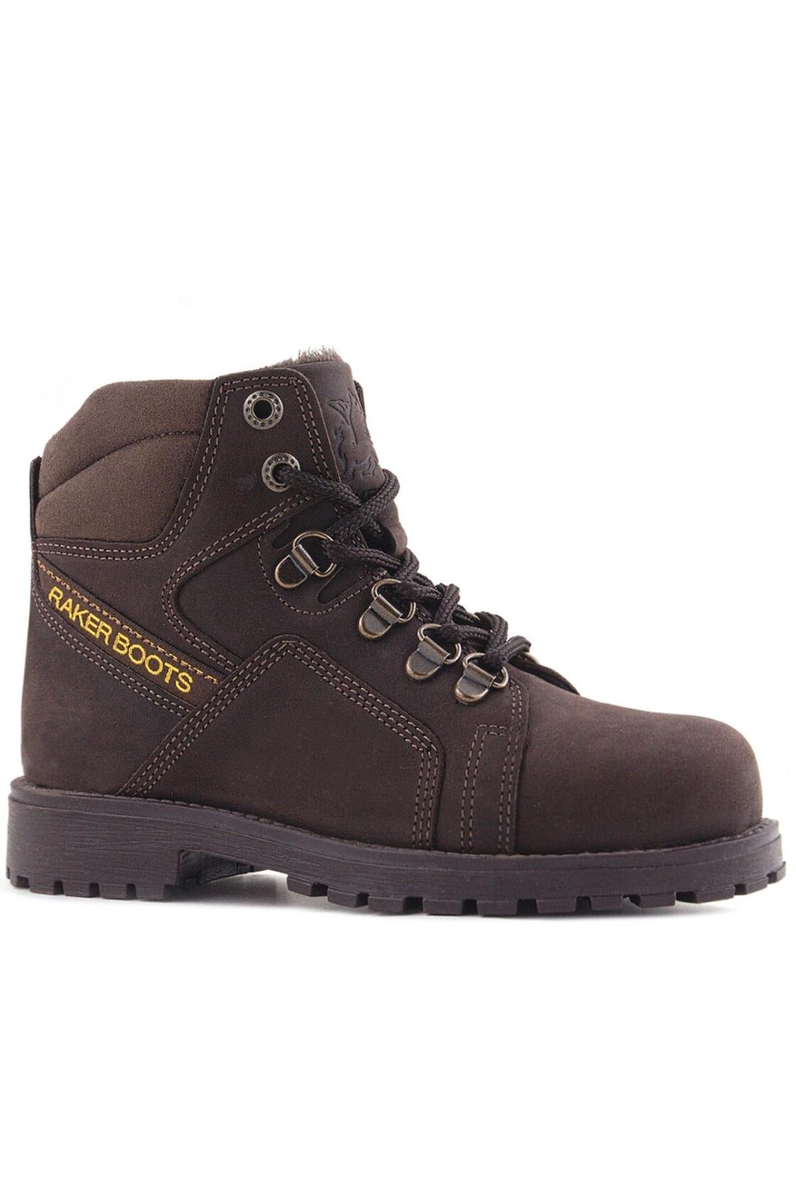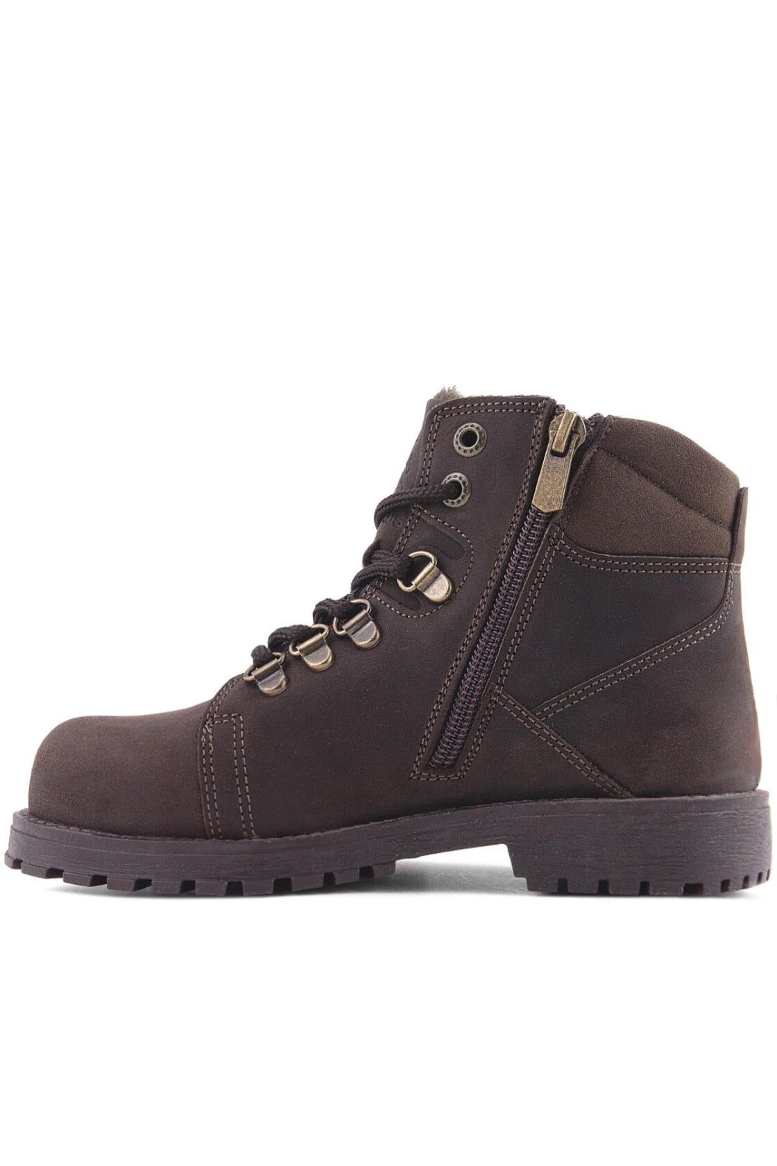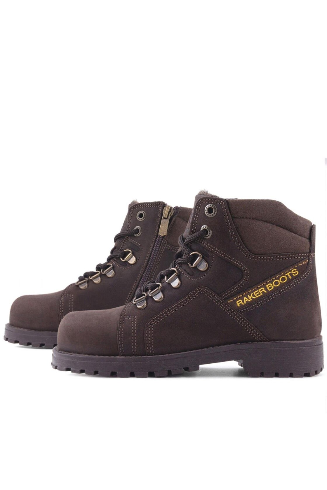 Rakerplus Hakiki Deri Kahve Nubuk Fermuarlı Kürklü Çocuk Bot