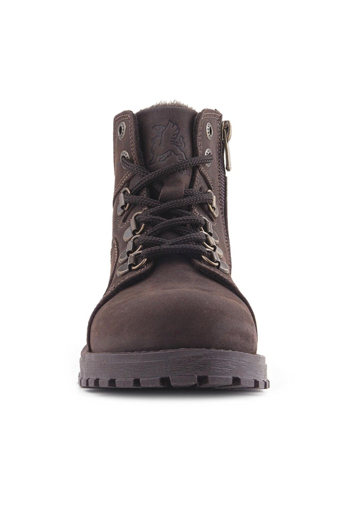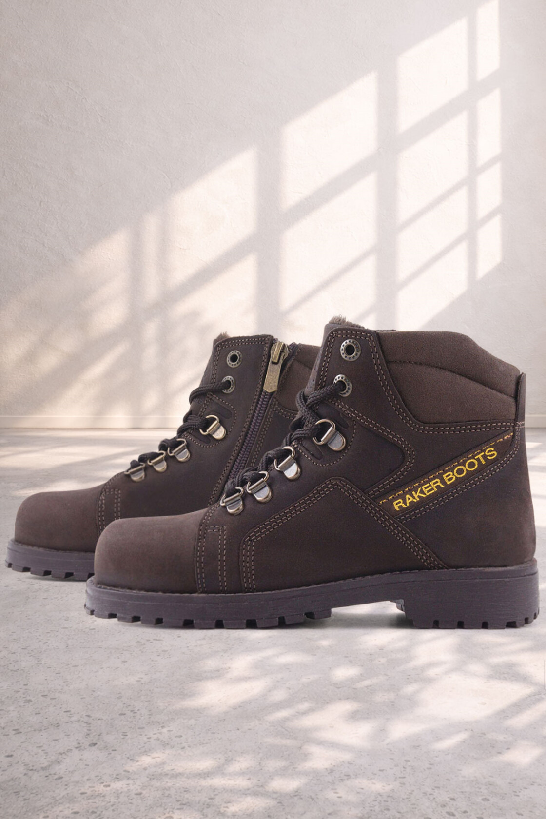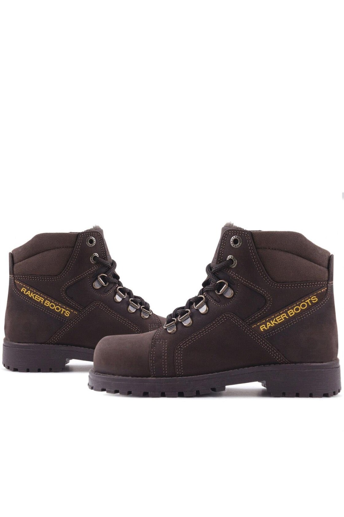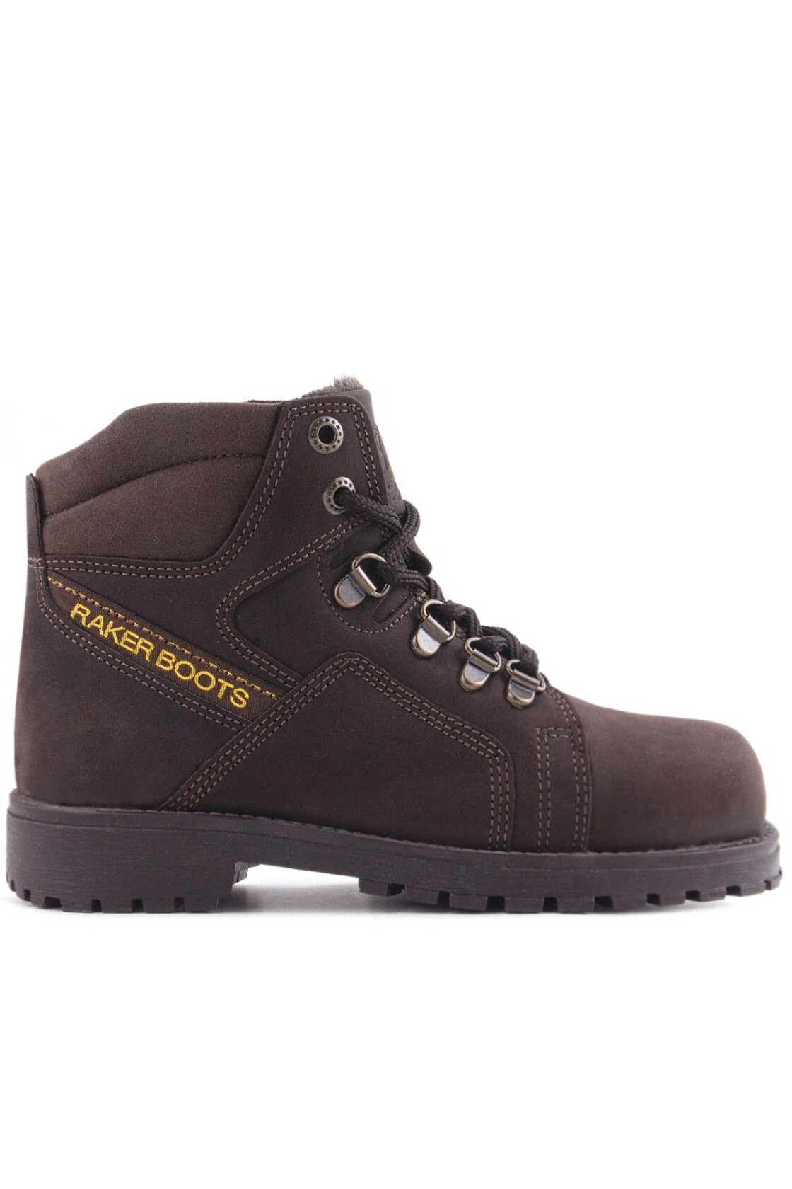 Rakerplus Hakiki Deri Kahve Nubuk Fermuarlı Kürklü Çocuk Bot