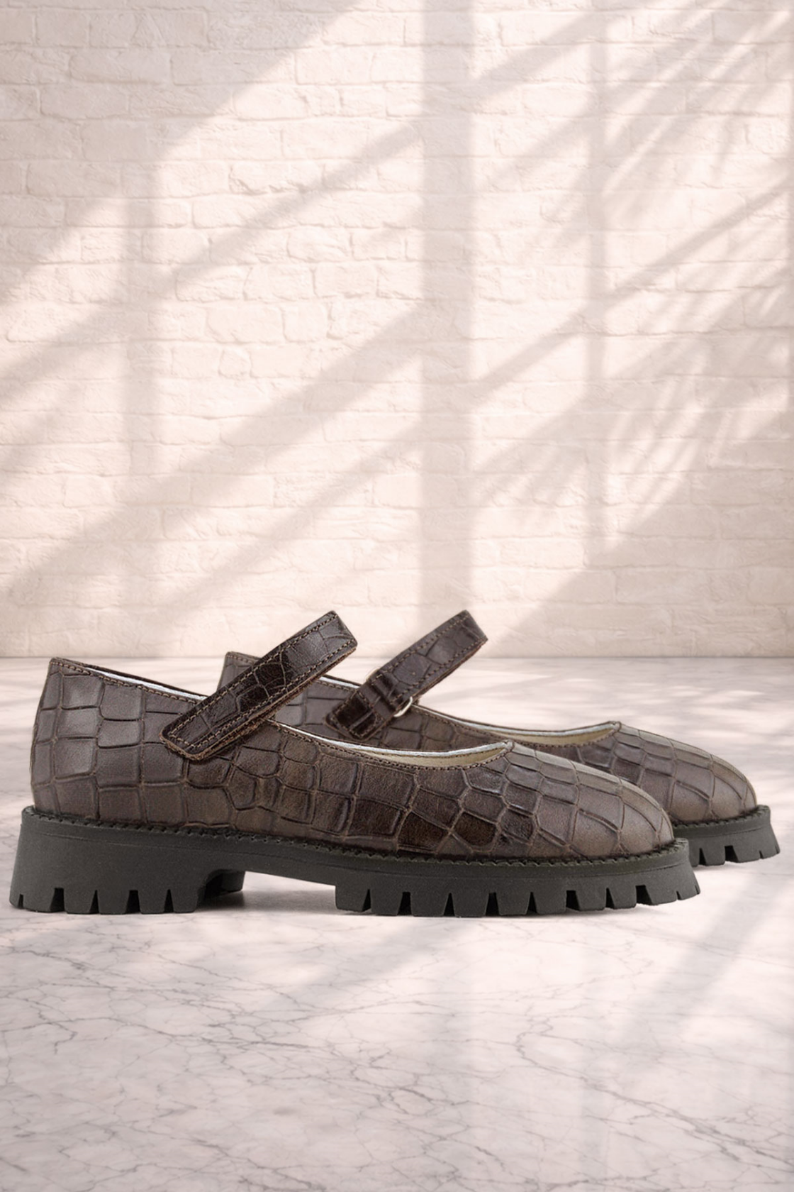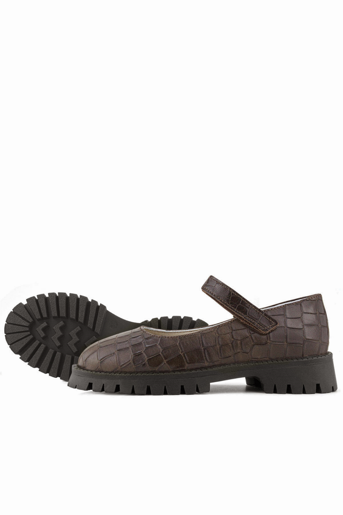 Rakerplus Hakiki Deri Kahverengi Desenli Cırtlı Kalın Tabanlı Kız Çocuk Ayakkabısı