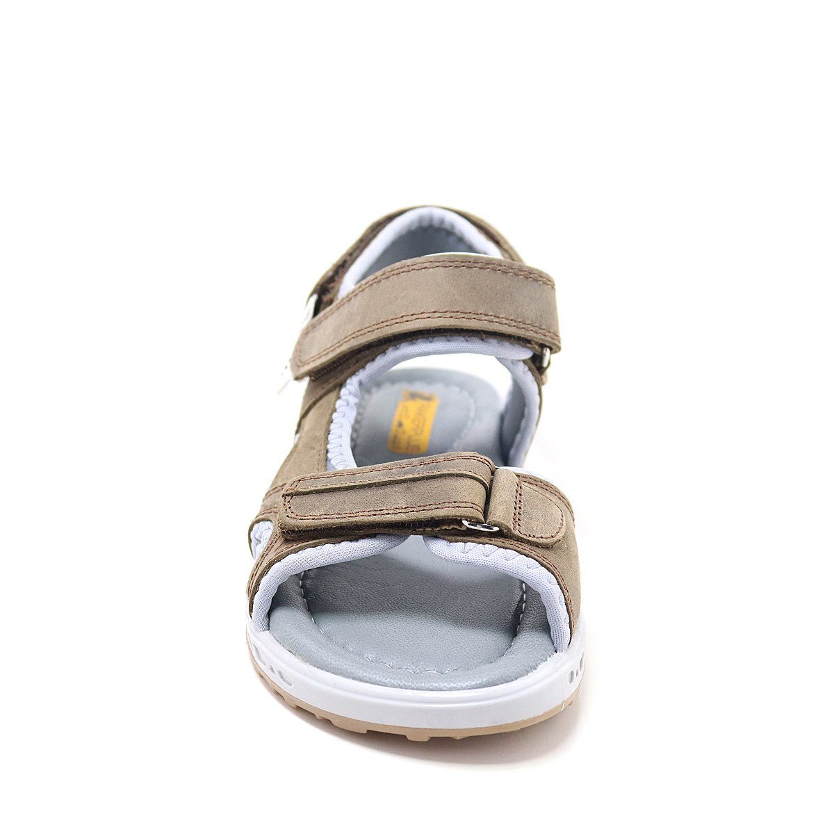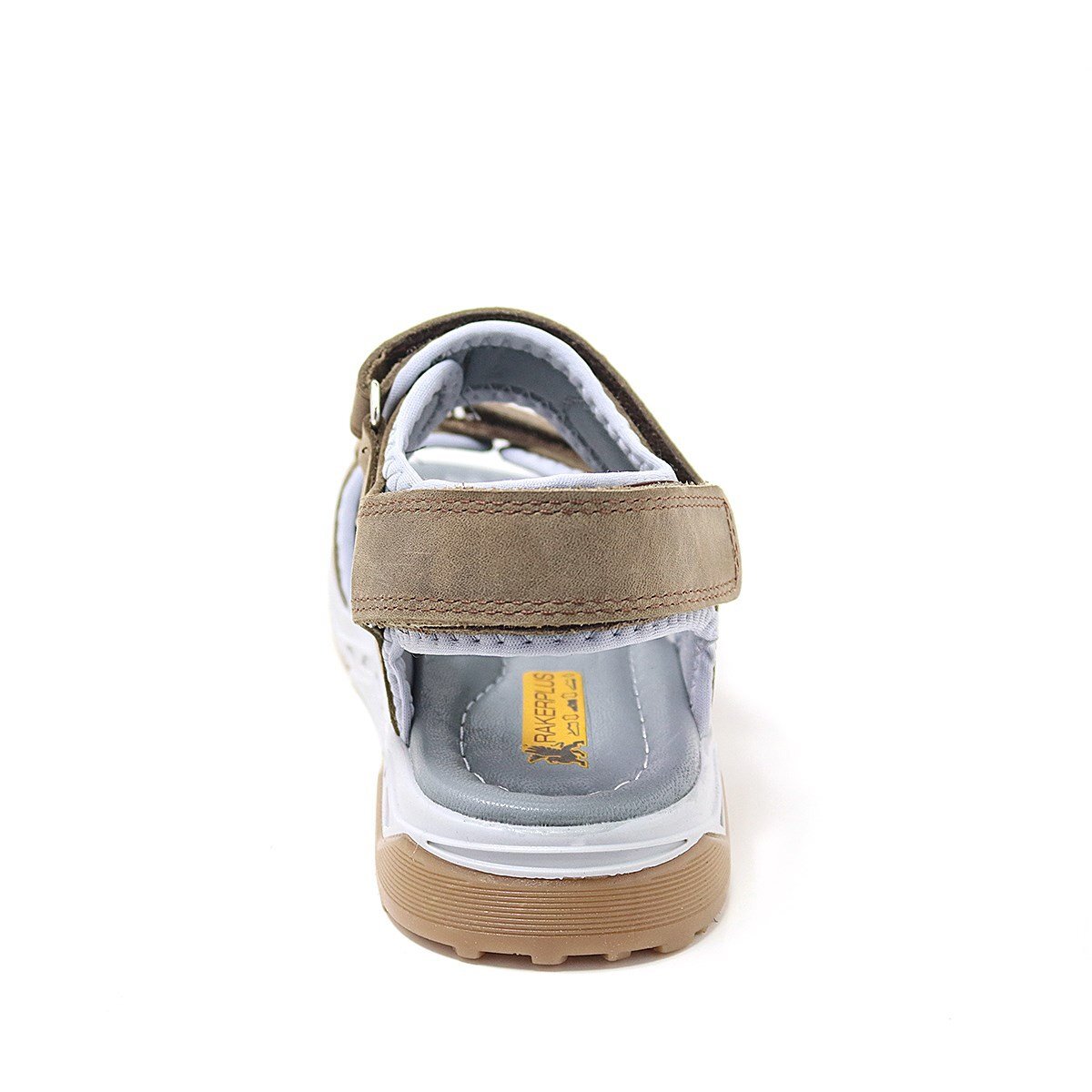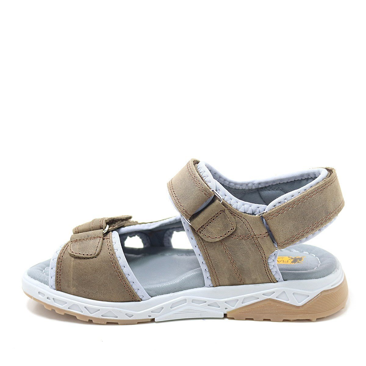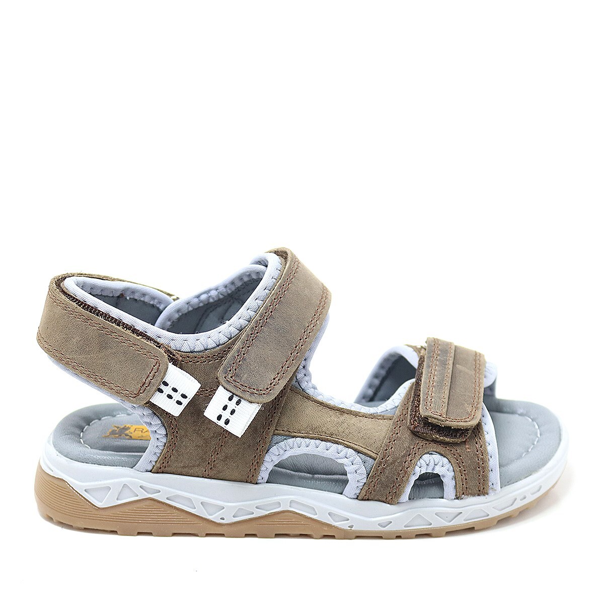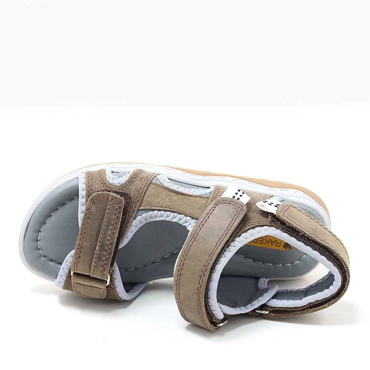 صندل راكر بلاس للأطفال مصنوع من الجلد الطبيعي باللون البني مع نعل مريح وشريط فيلكرو