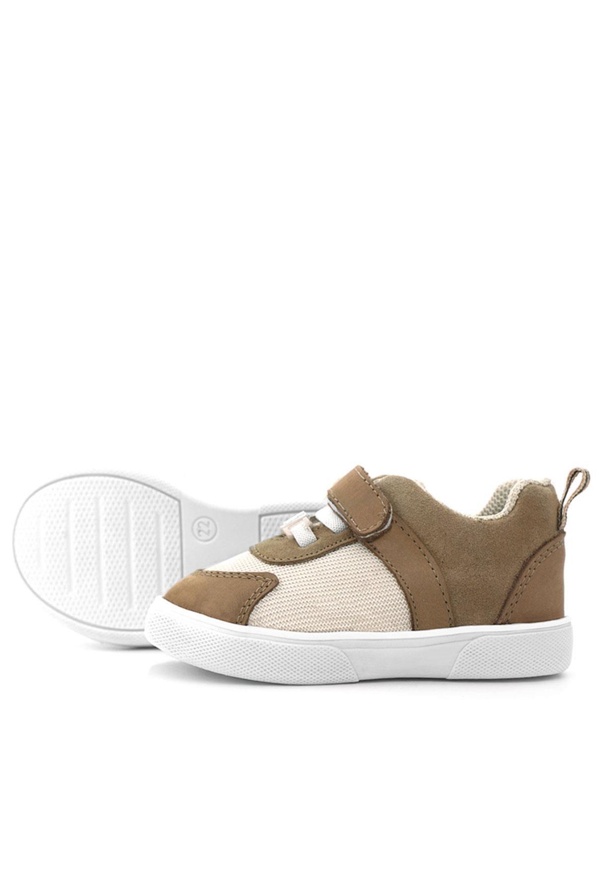 حذاء أطفال من الجلد الطبيعي من راكر بلاس، لون كريمي رملي، مزود بشريط فيلكرو