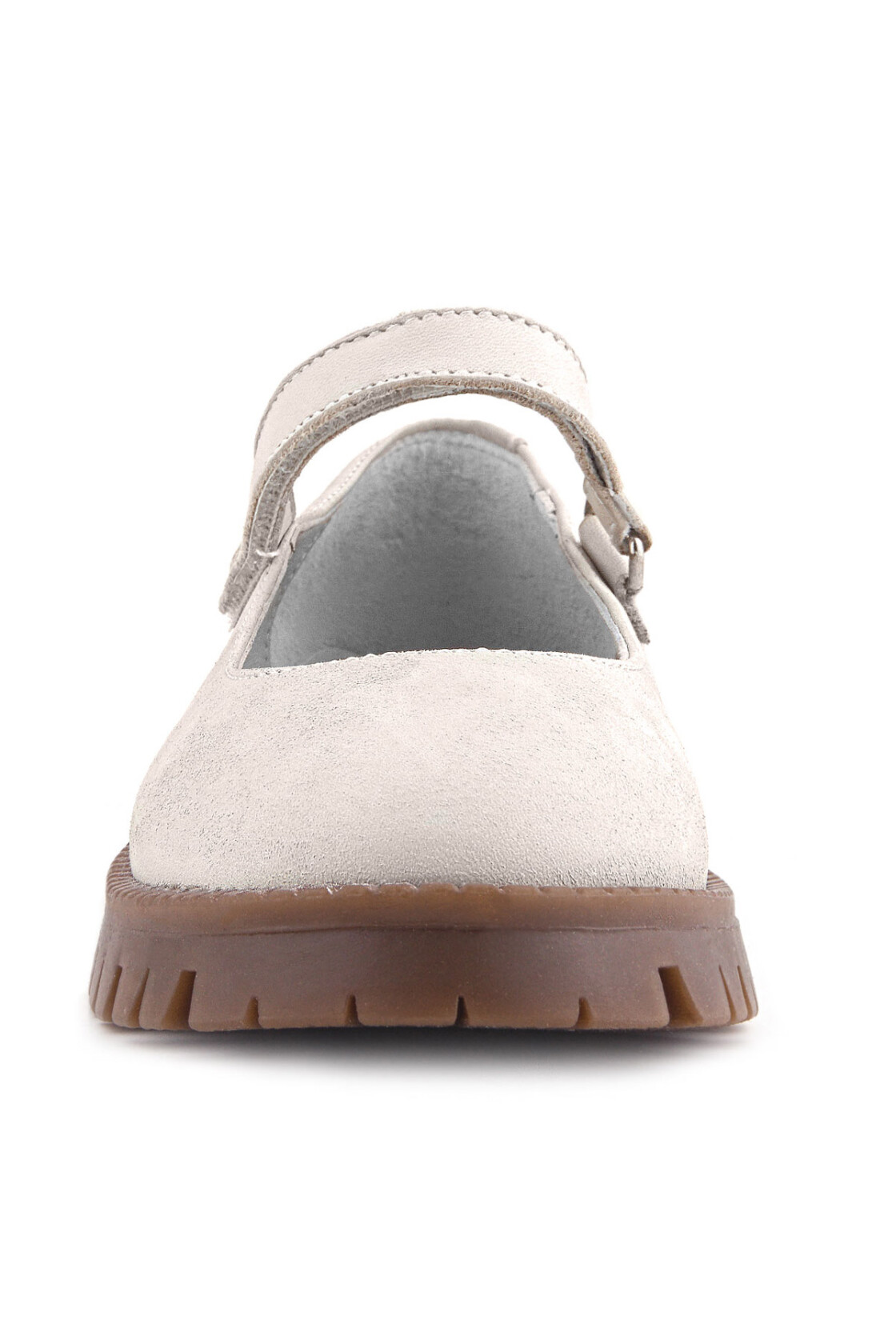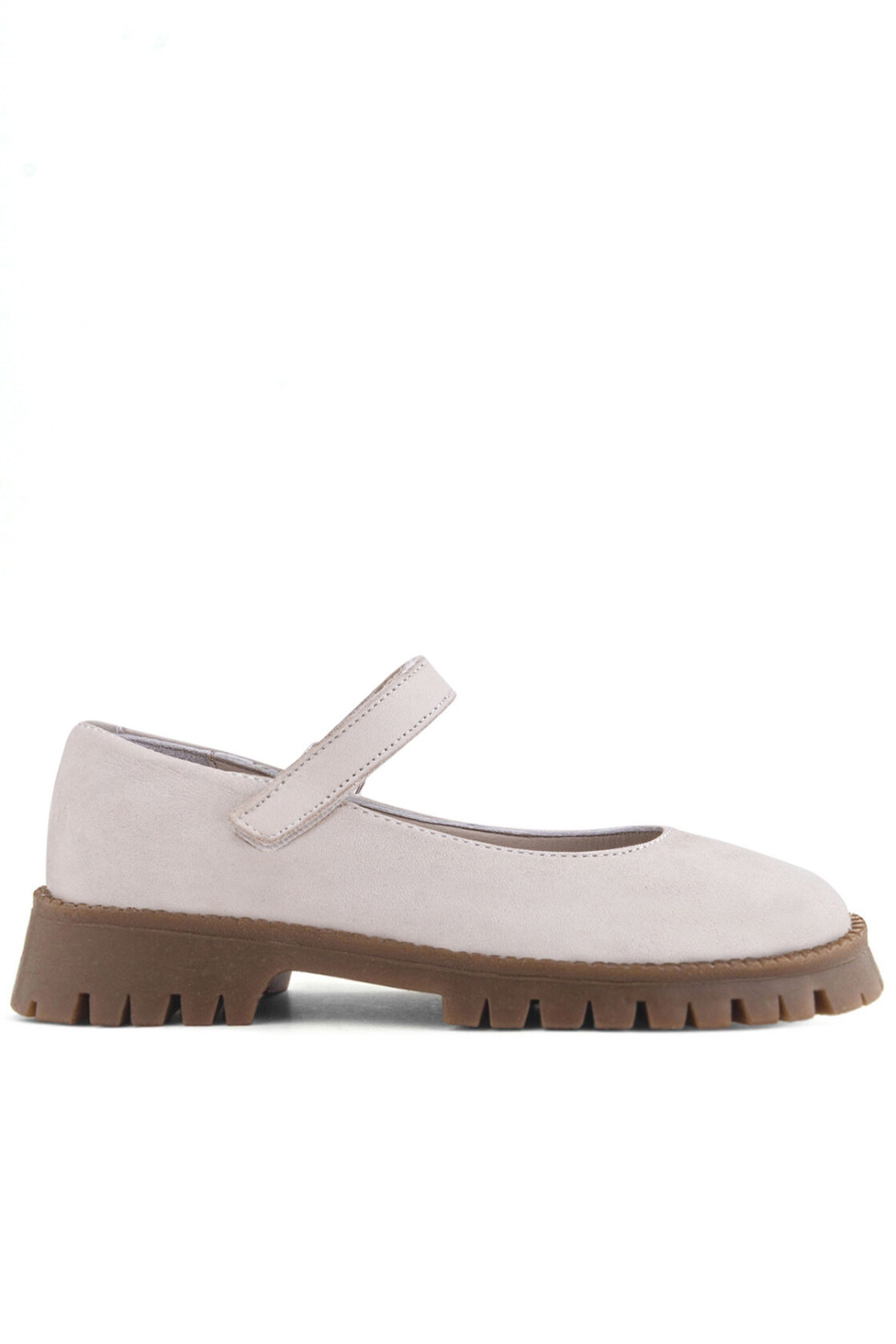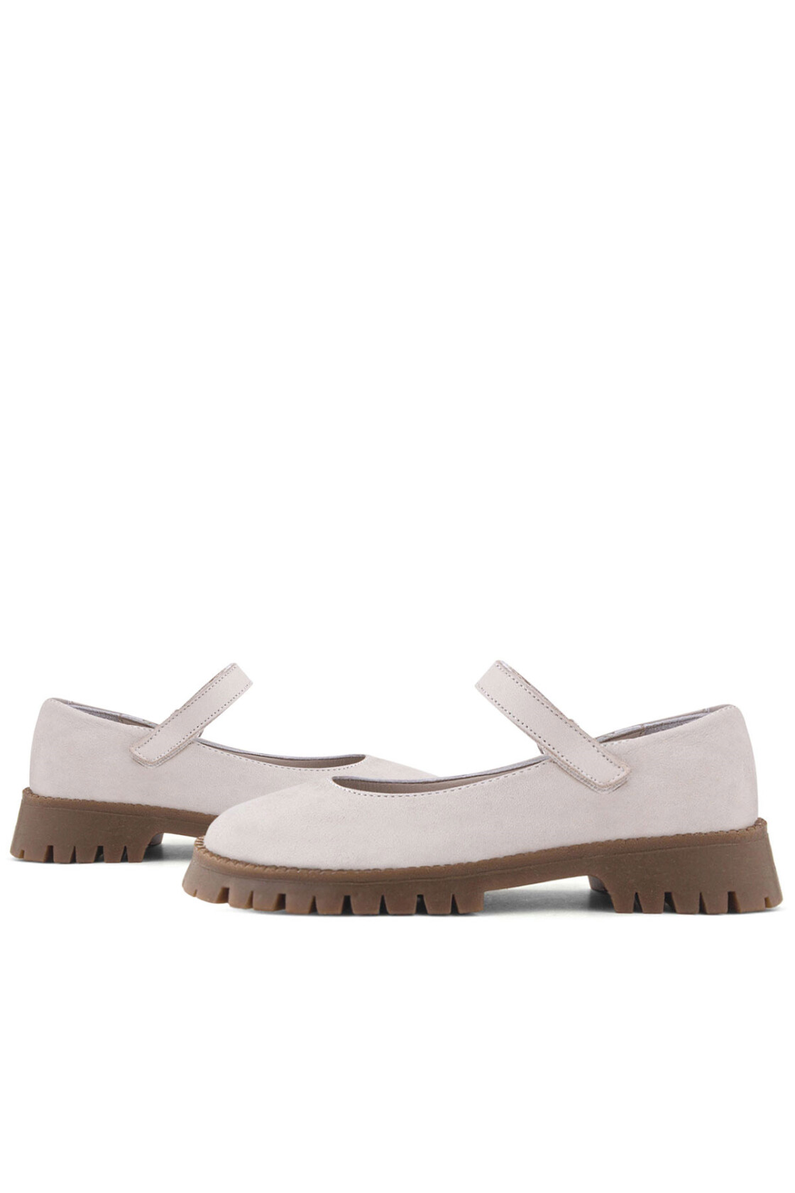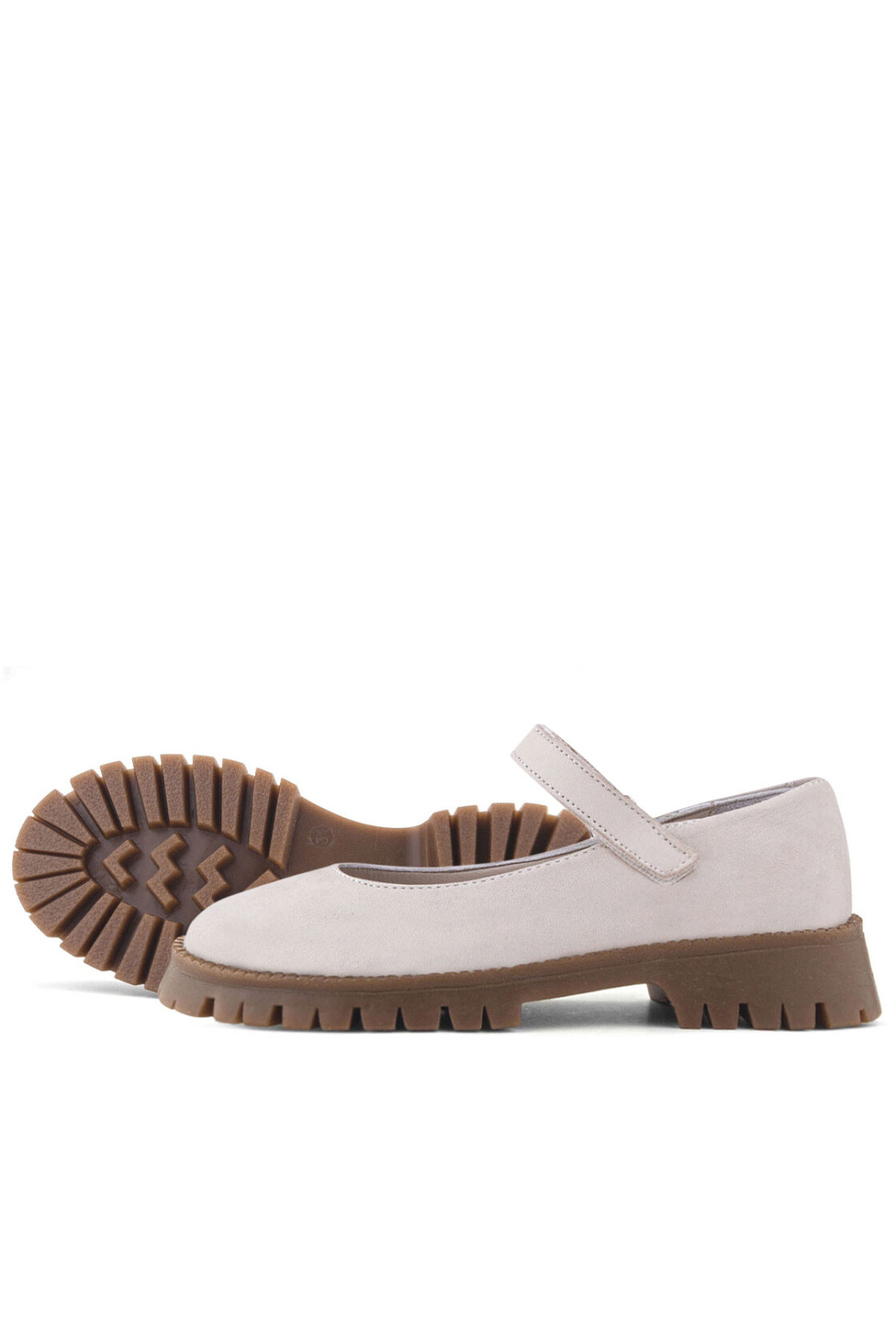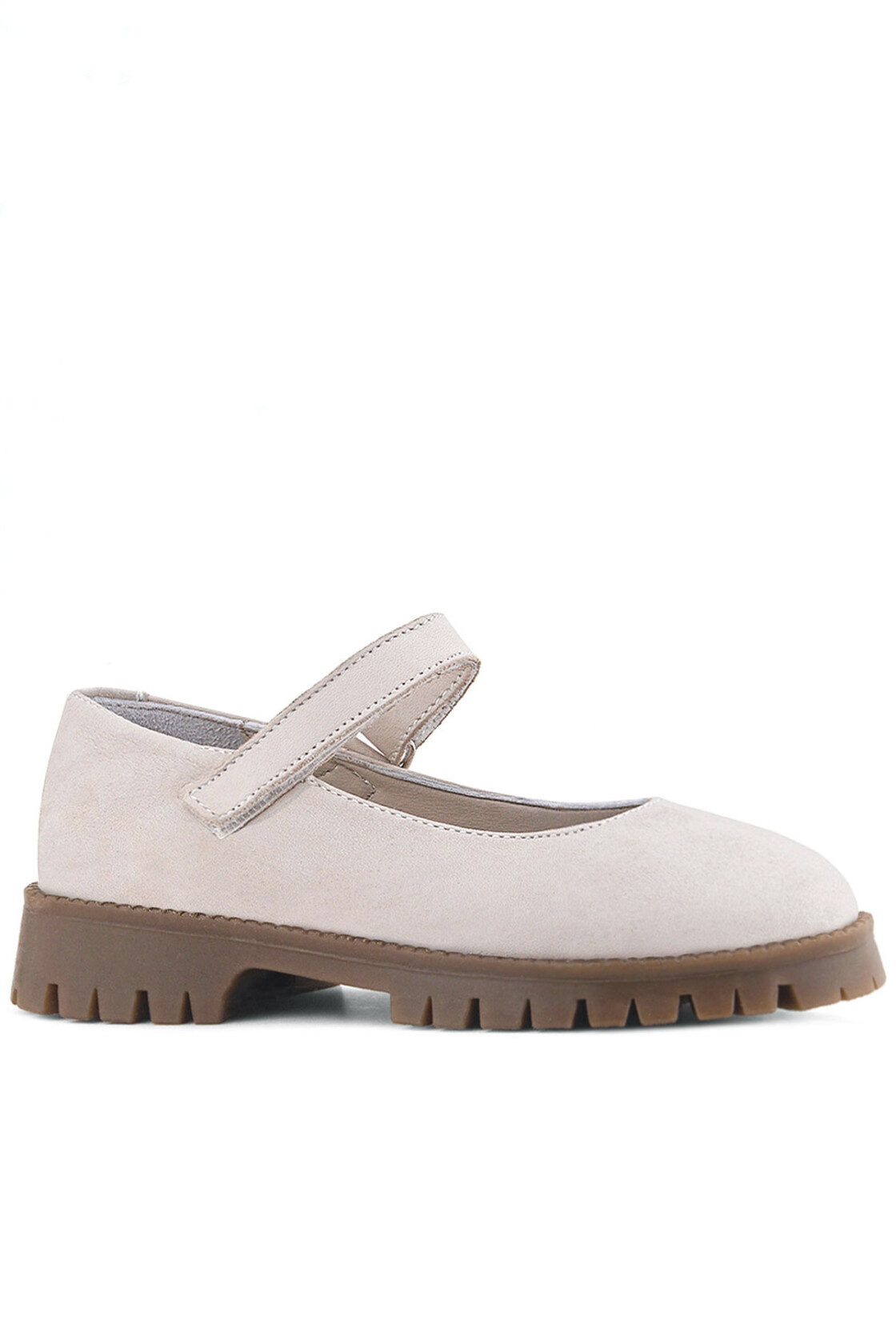 Rakerplus Hakiki Deri Krem Nubuk Cırtlı Kalın Tabanlı Kız Çocuk Okul Ayakkabısı