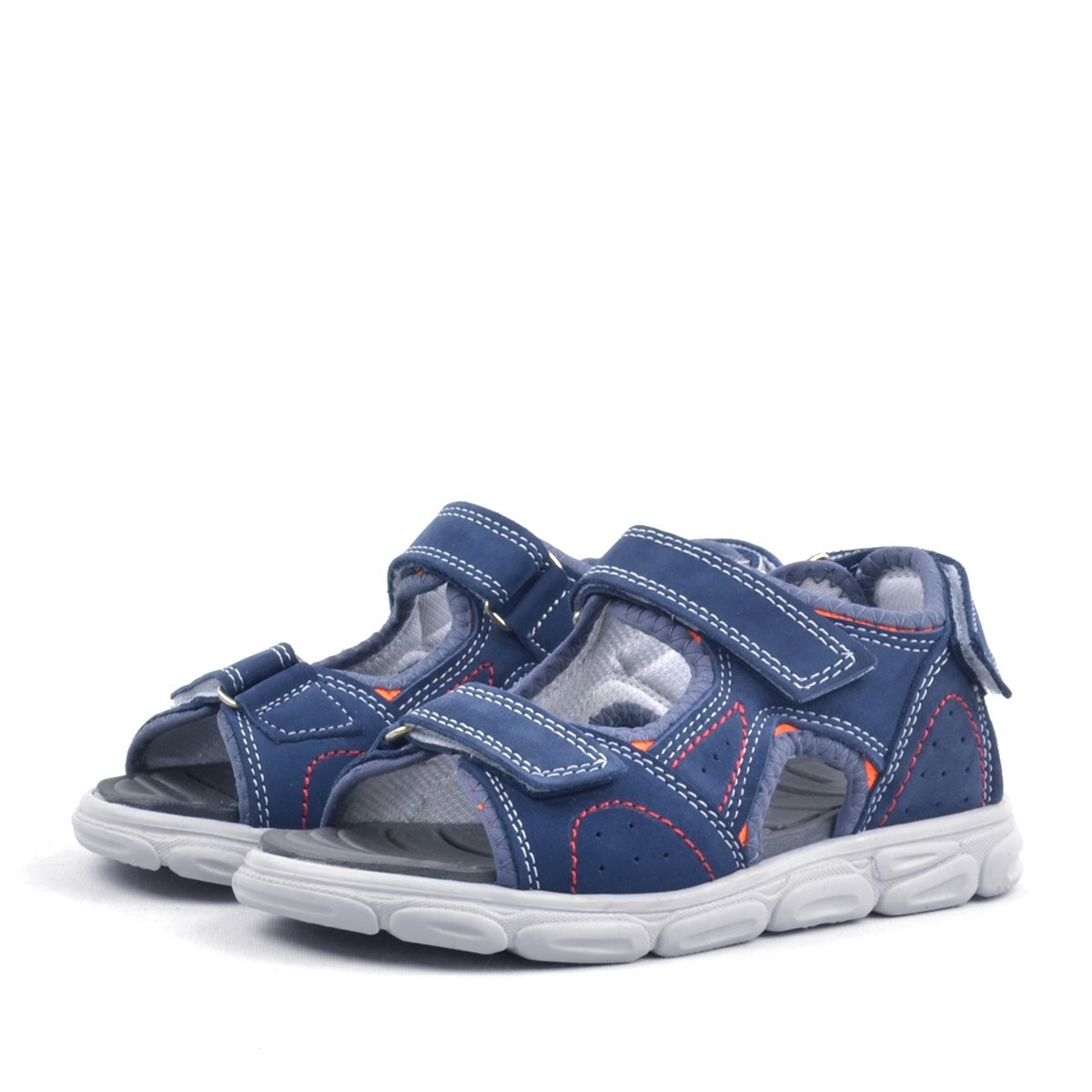 صندل أطفال من الجلد الطبيعي من راكر بلس، أزرق داكن، مزود بشريط فيلكرو