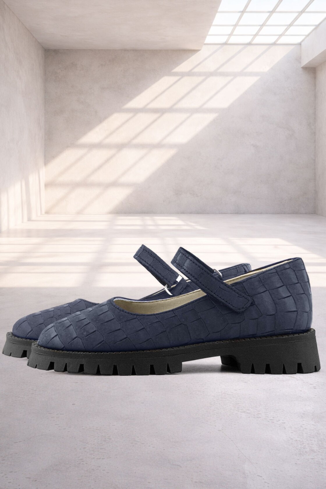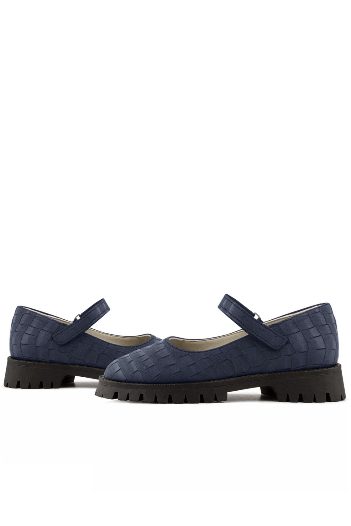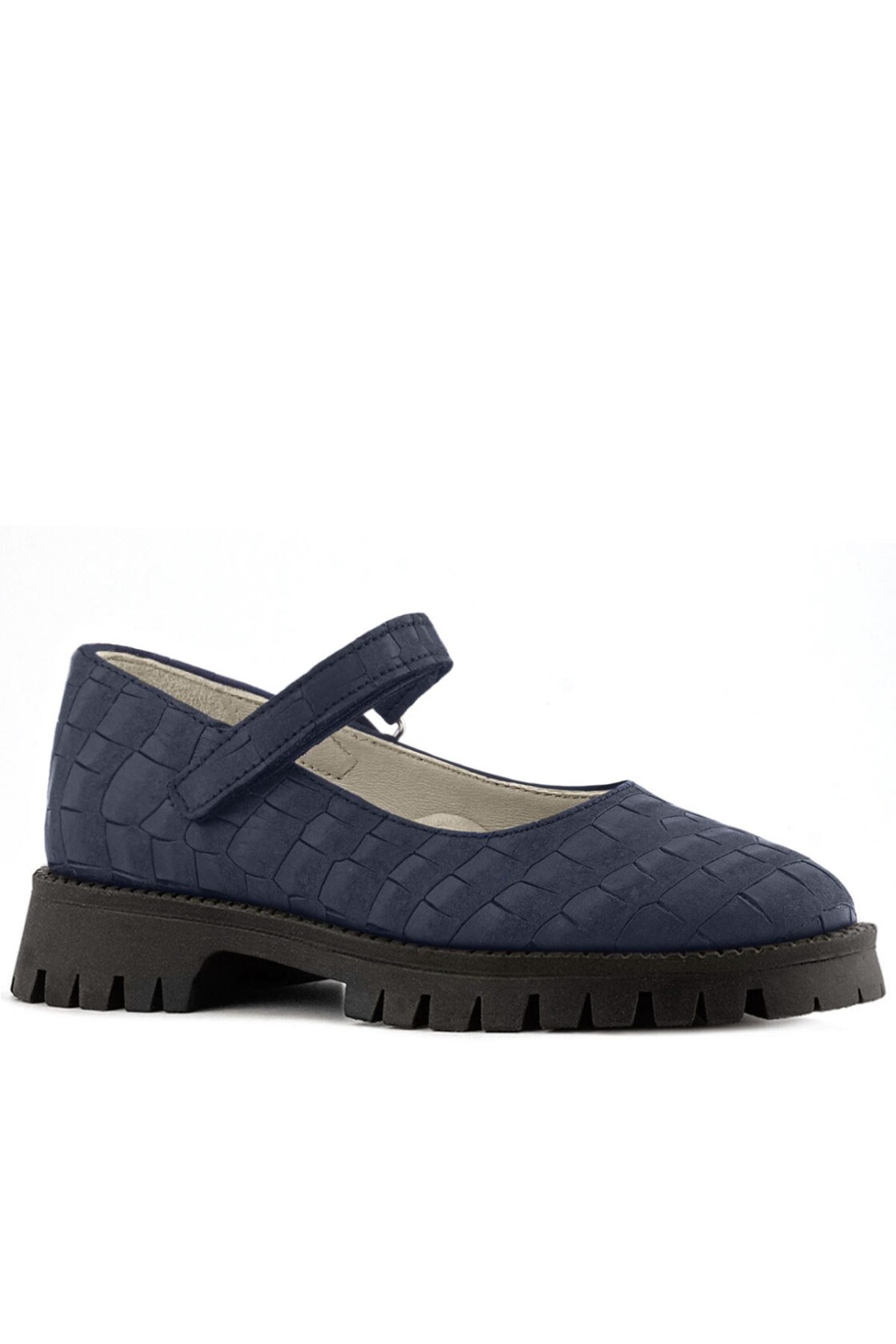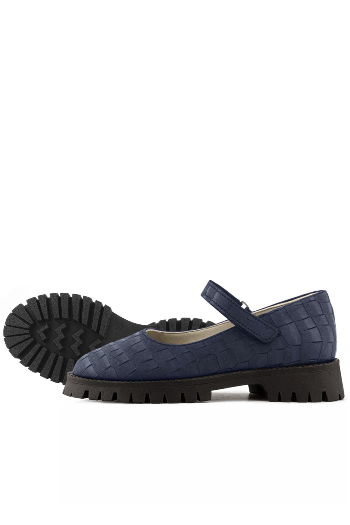Rakerplus Hakiki Deri Lacivert Desenli Cırtlı Kalın Tabanlı Kız Çocuk Ayakkabısı