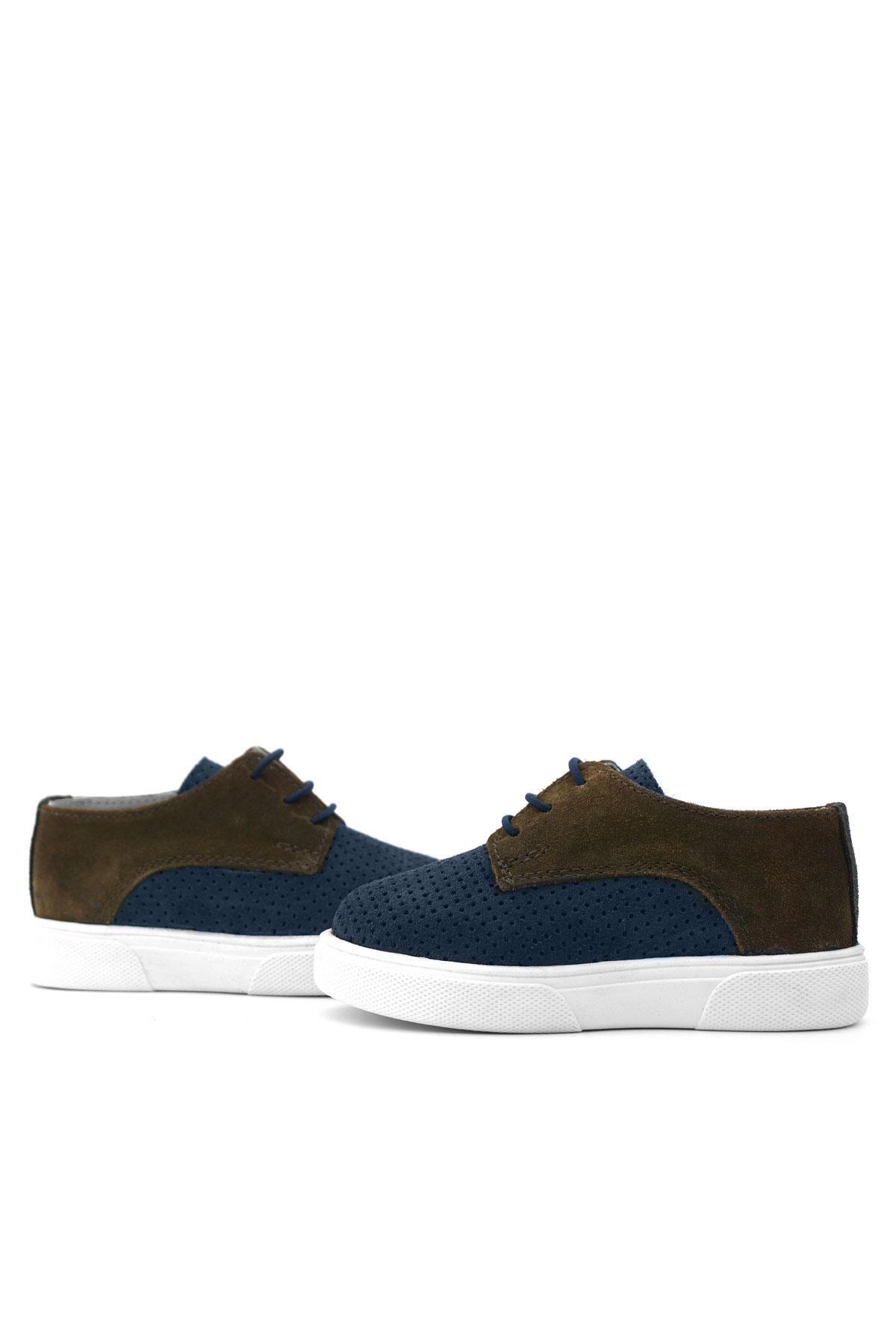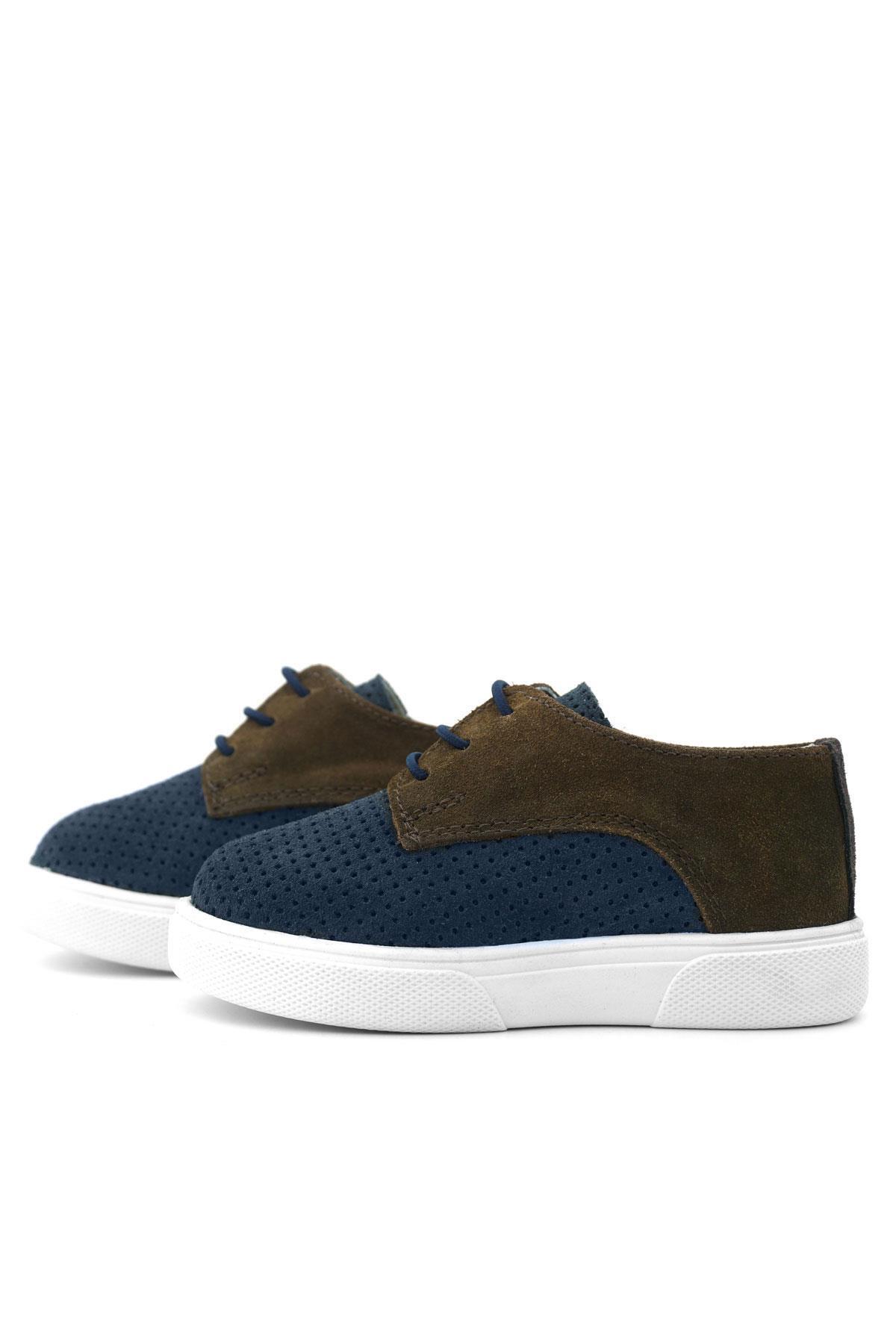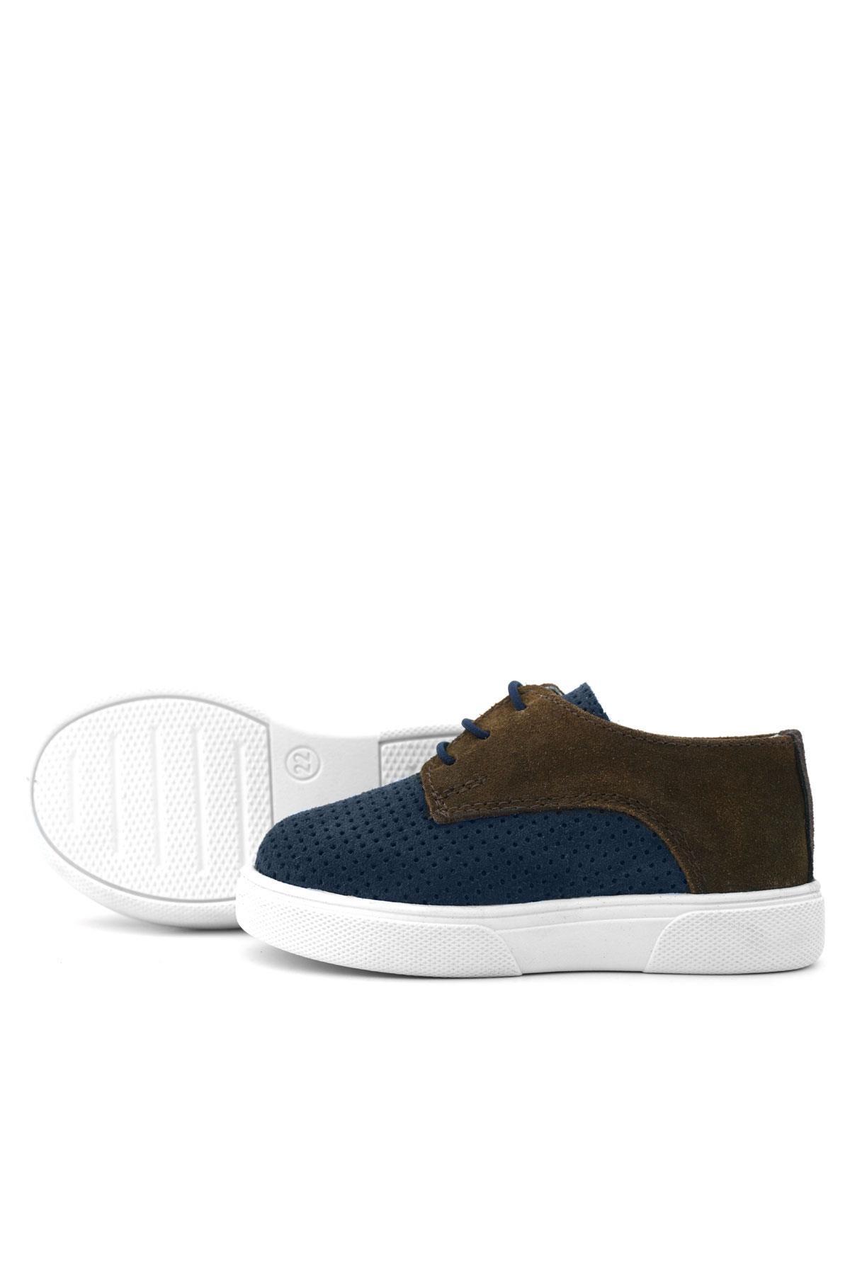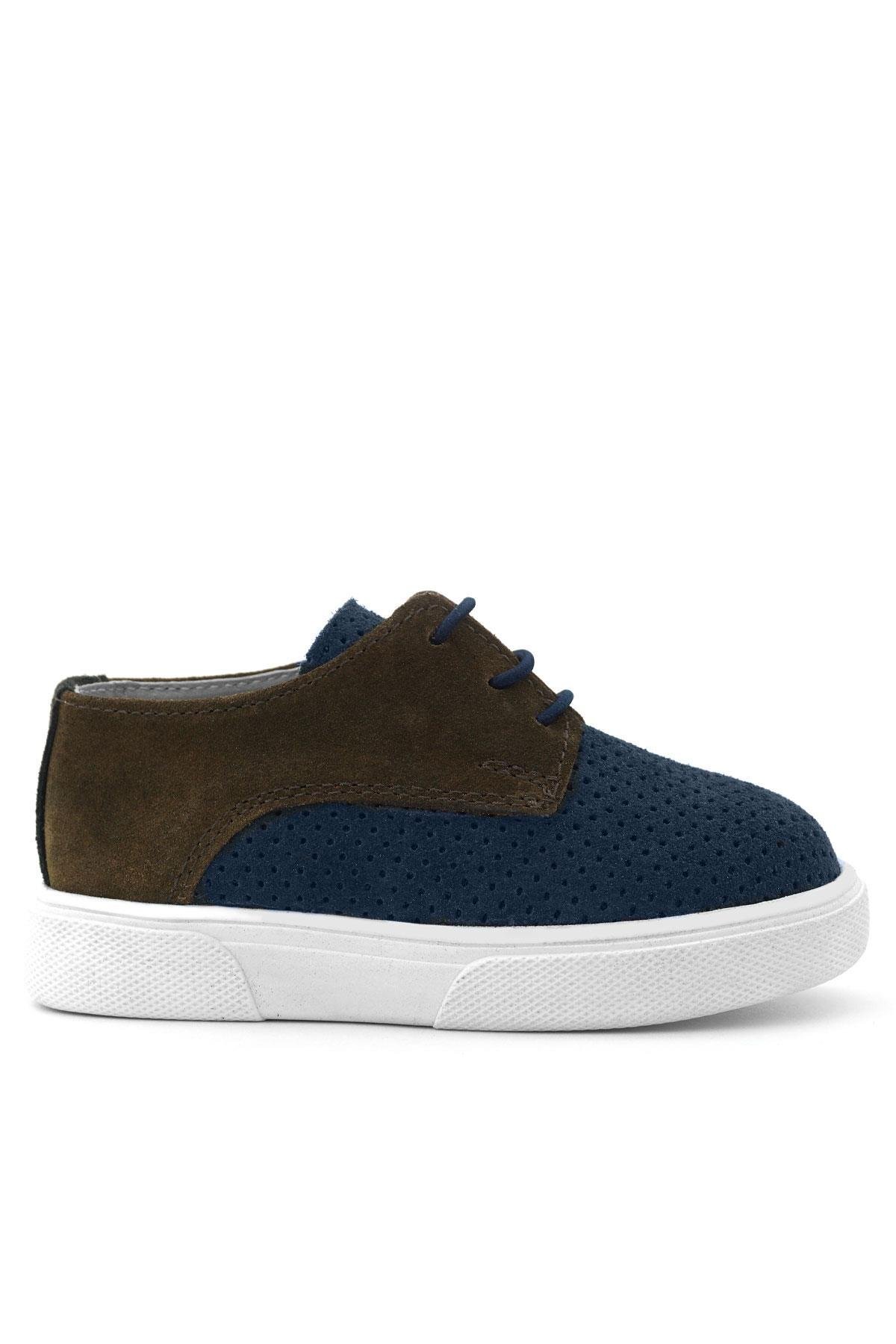 Rakerplus Hakiki Deri Lacivert Kahve Lastikli Erkek Çocuk Günlük Ayakkabı