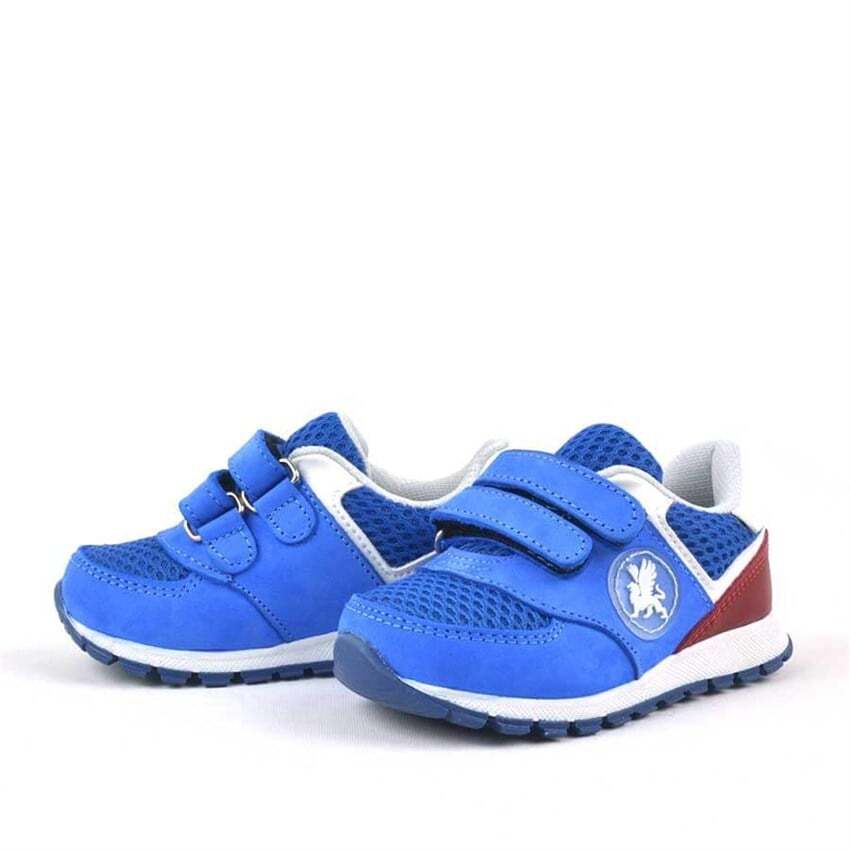 حذاء رياضي للأطفال من جلد طبيعي من راكر بلاس، أزرق، بشريط فيلكرو