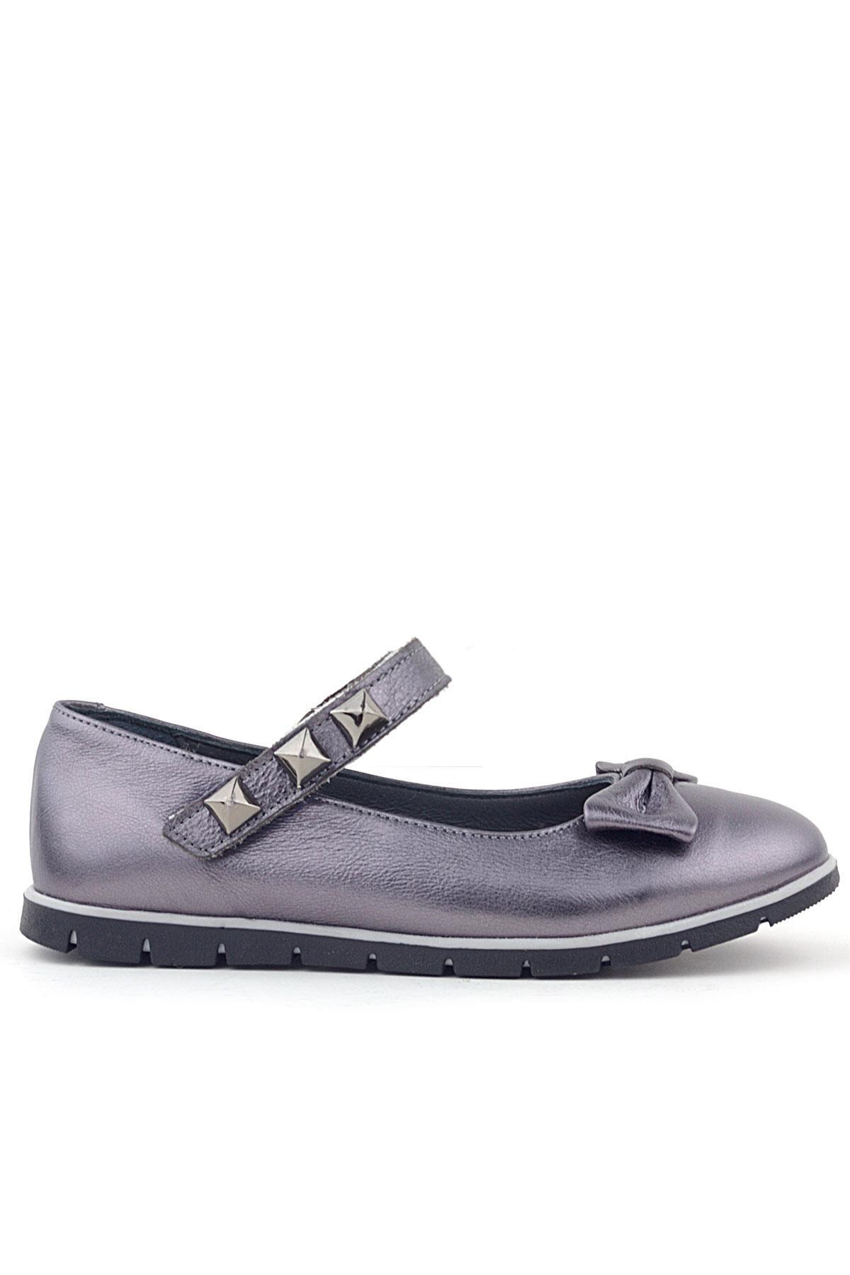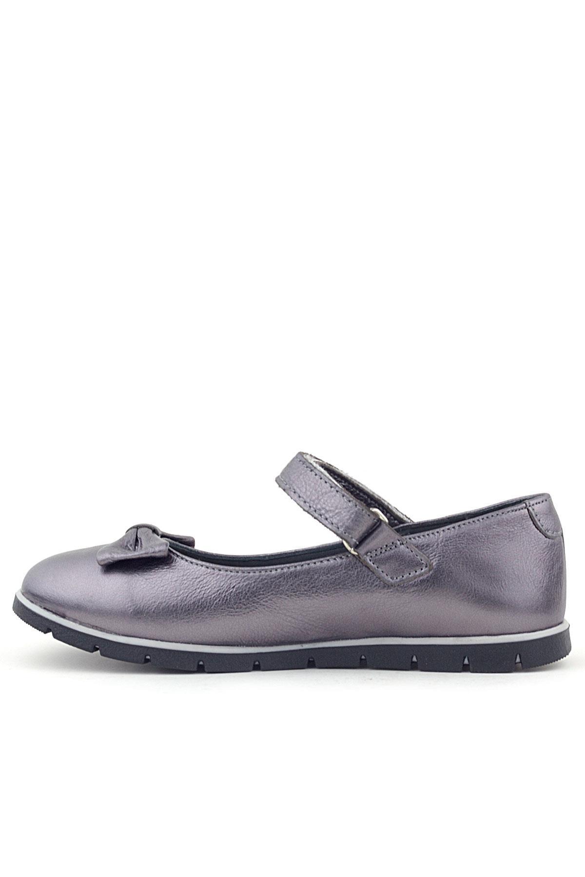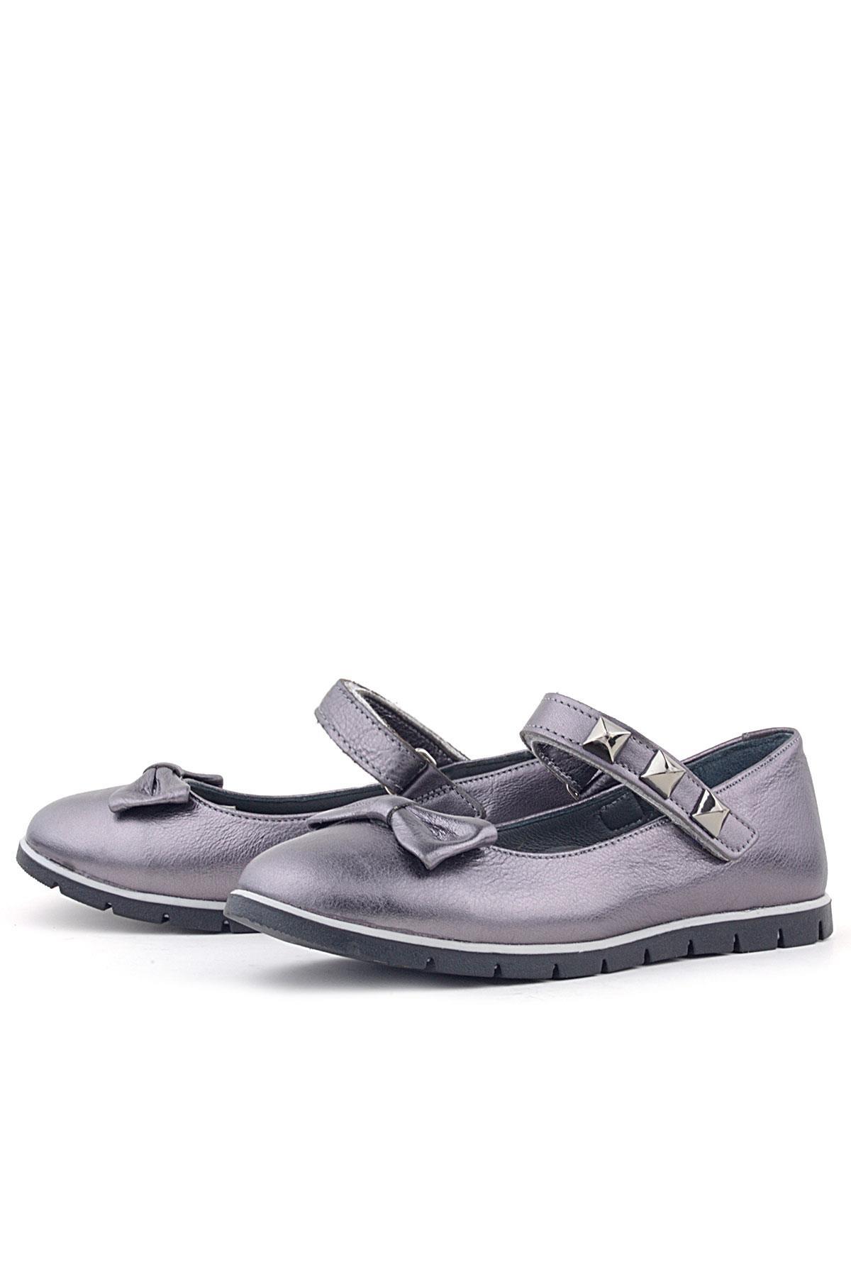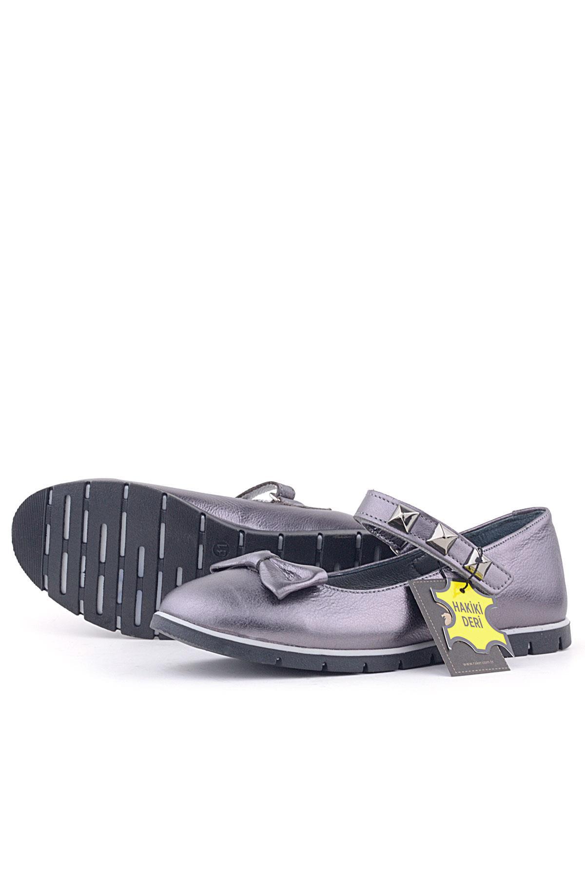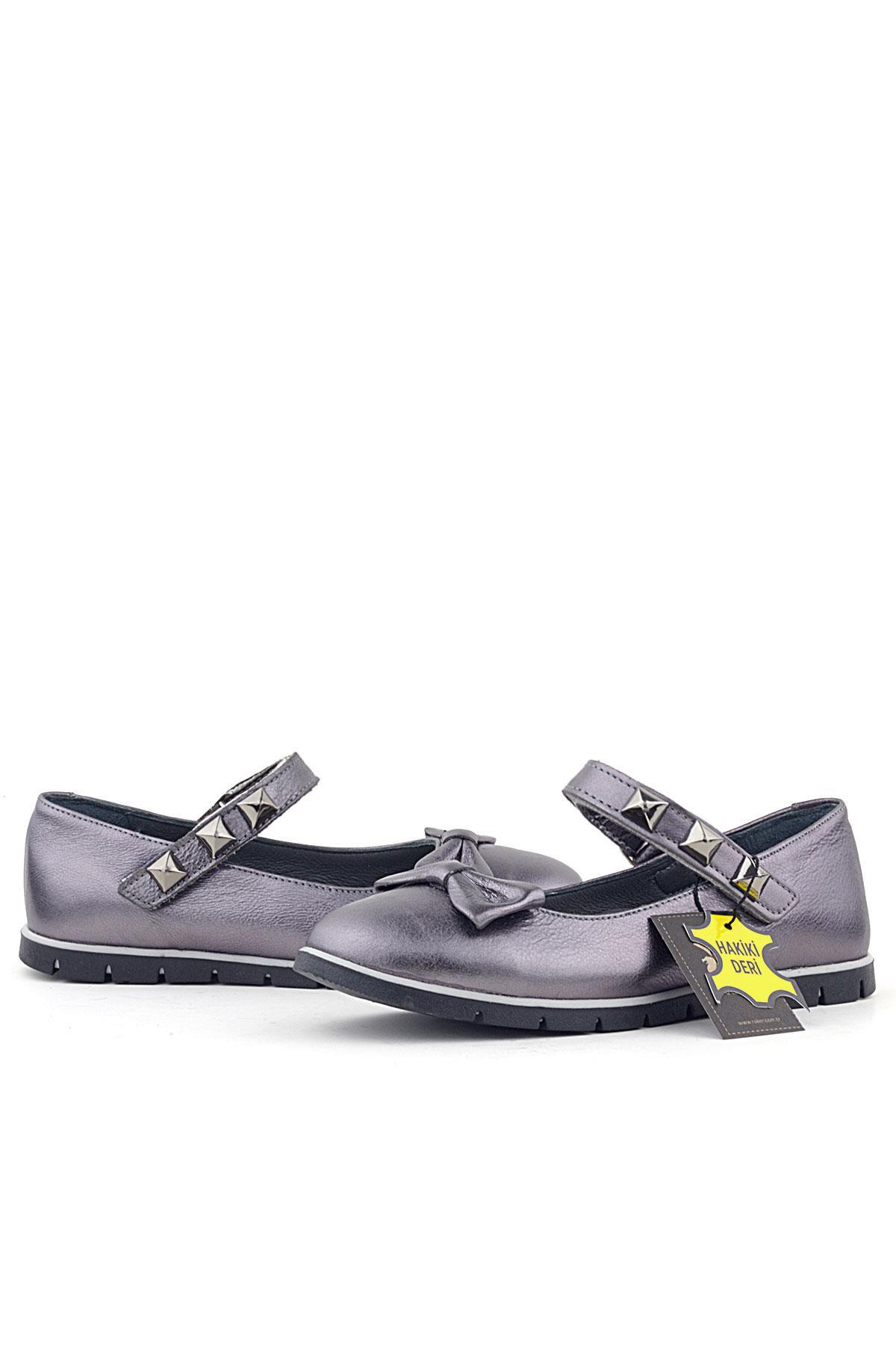 Rakerplus Hakiki Deri Platin Gri Cırtlı Kız Çocuk Babet Ayakkabı