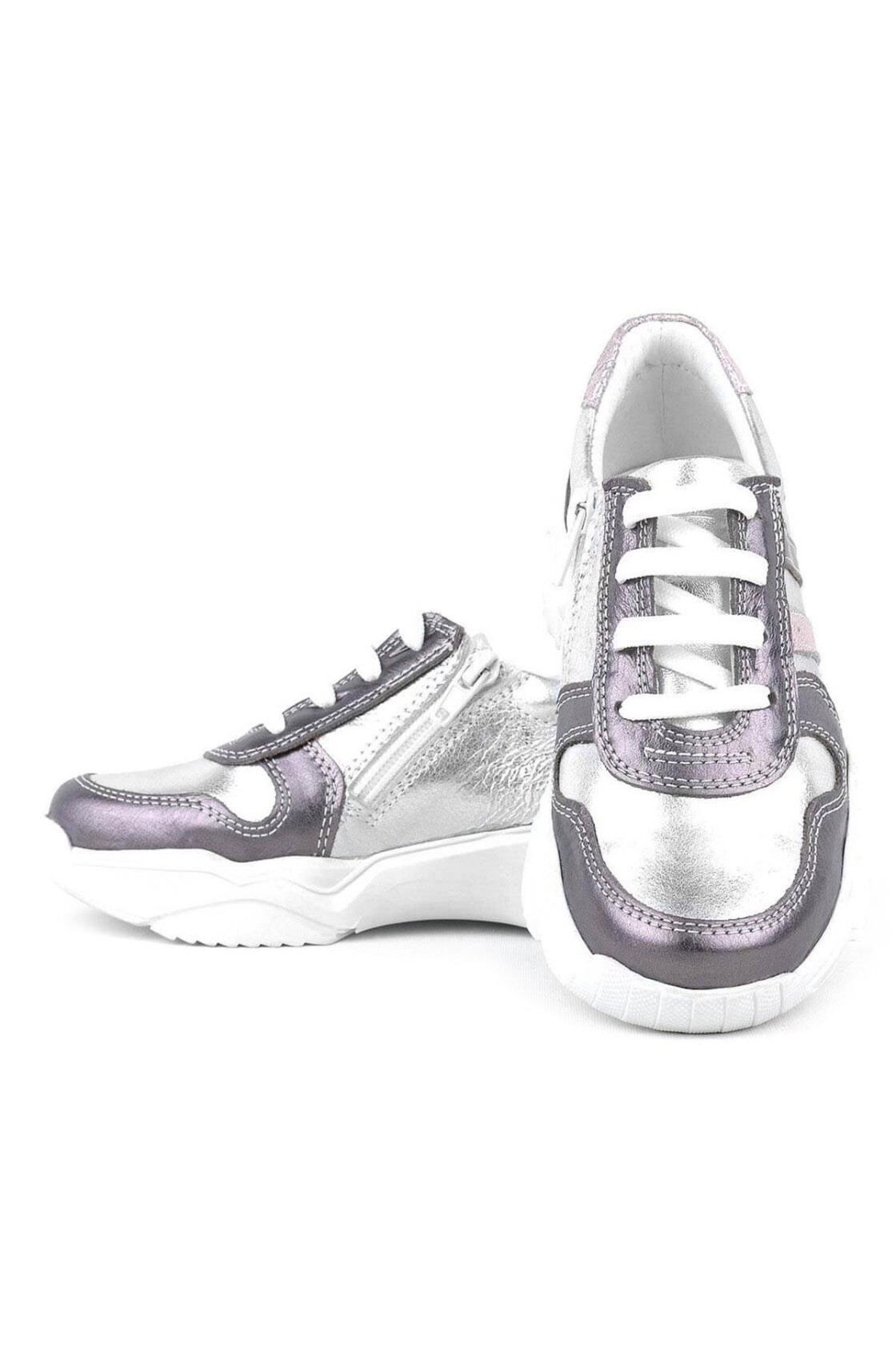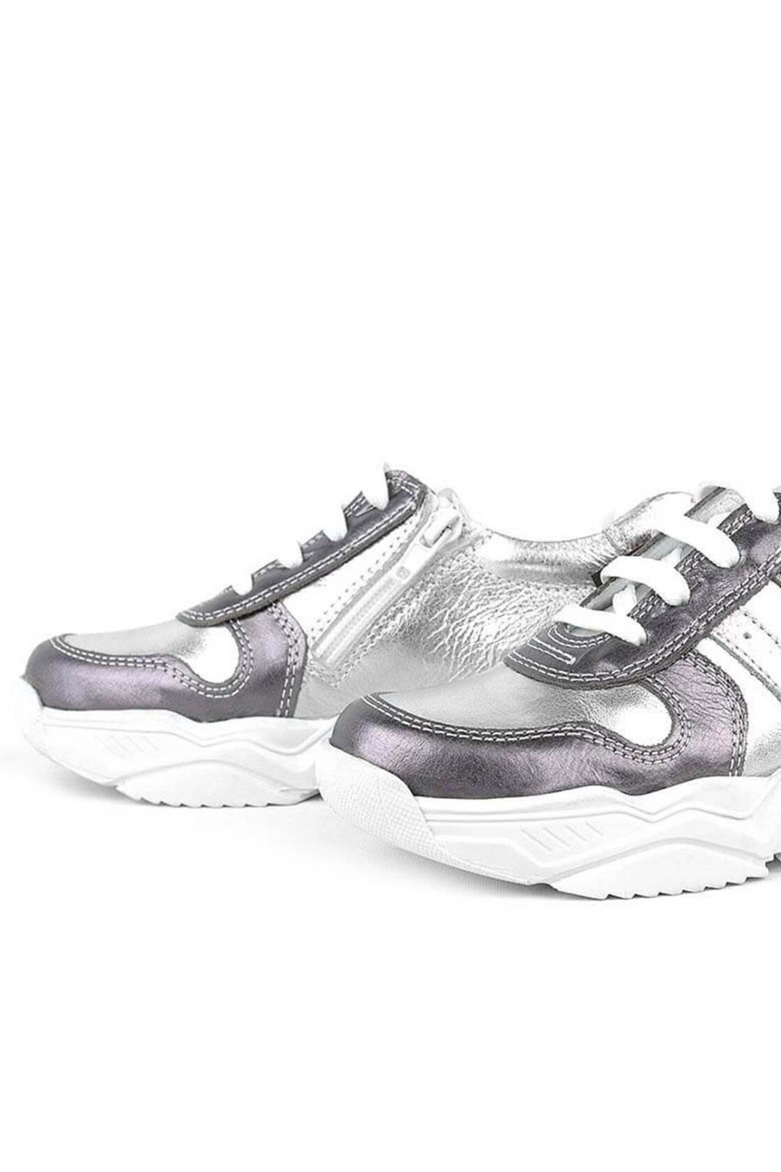 Rakerplus Hakiki Deri Gümüş Cırtlı Kız Çocuk Spor Ayakkabı