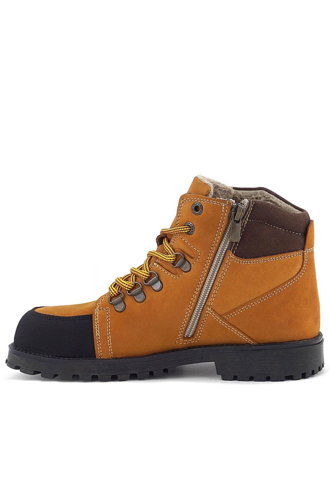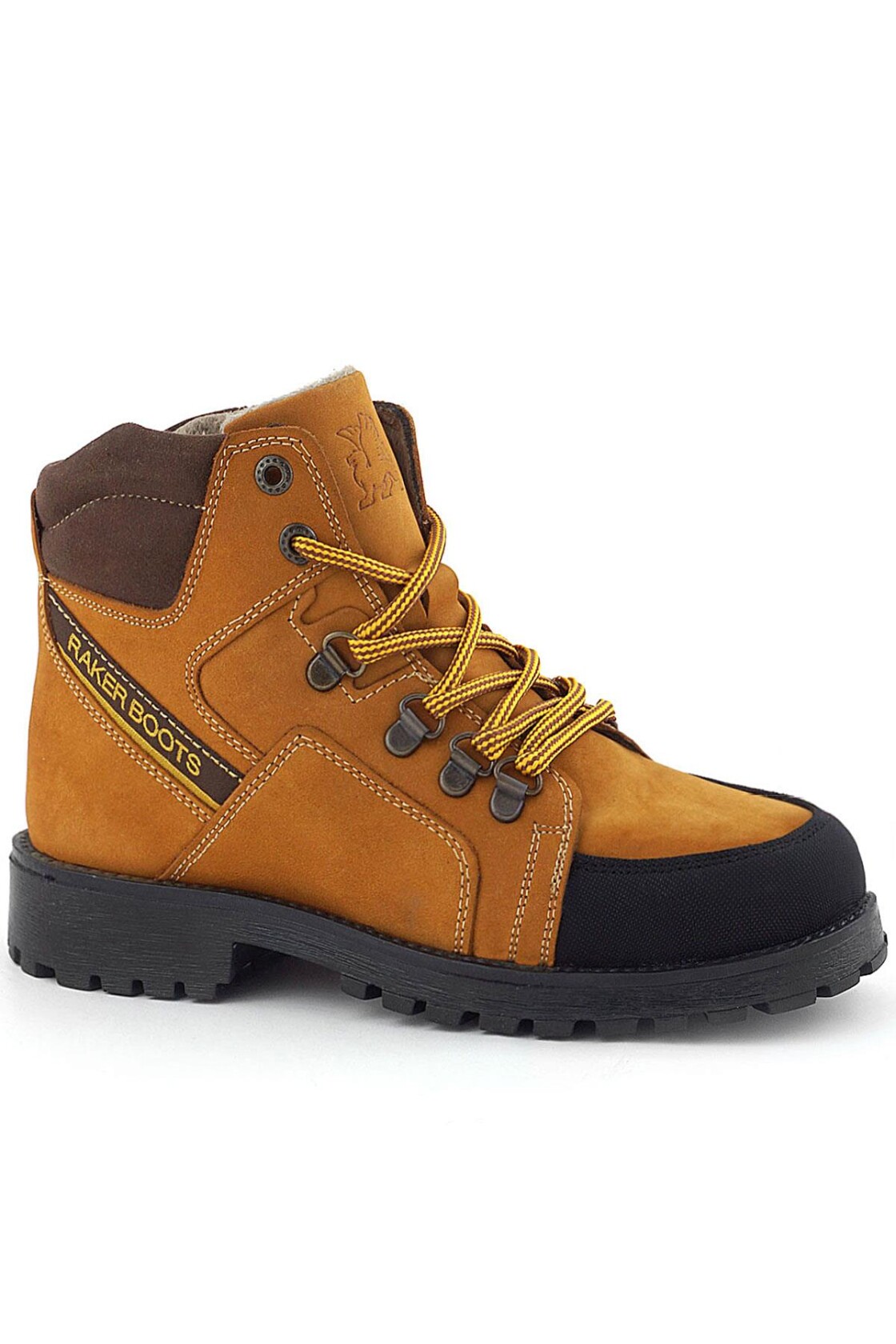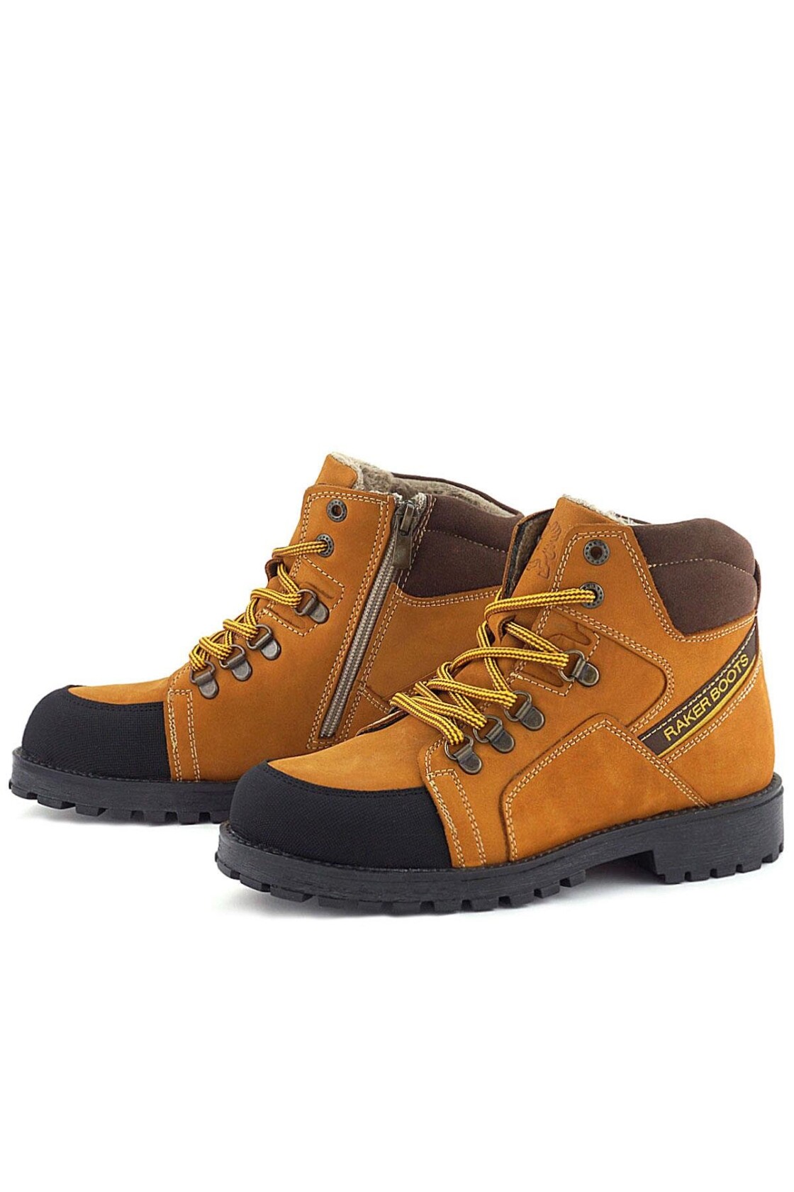 Rakerplus Hakiki Deri Sarı Kahve Bağcıklı Fermuarlı Çocuk Bot