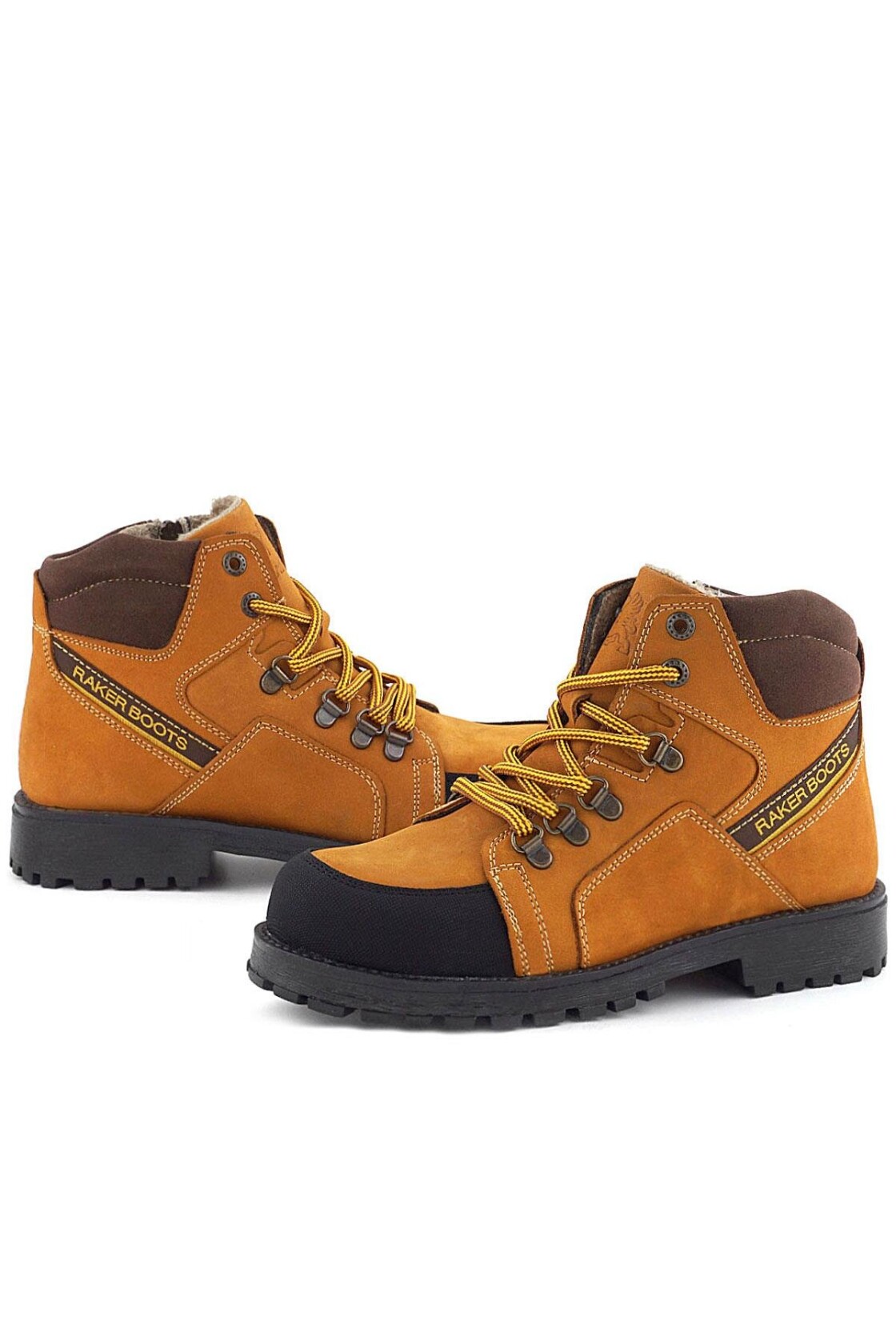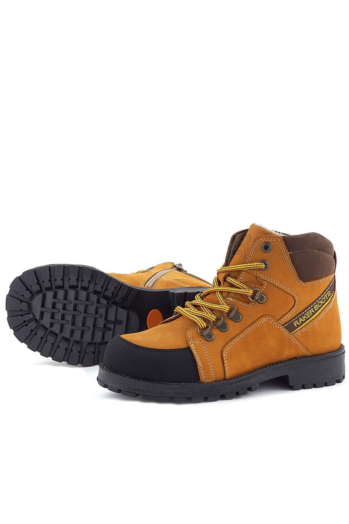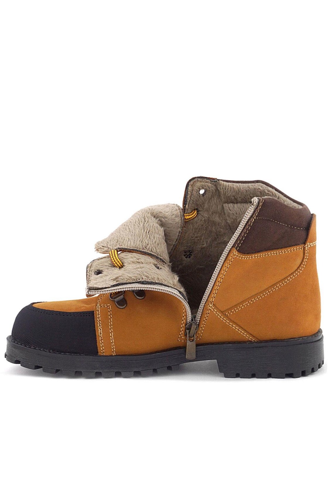 Rakerplus Hakiki Deri Sarı Kahve Bağcıklı Fermuarlı Çocuk Bot