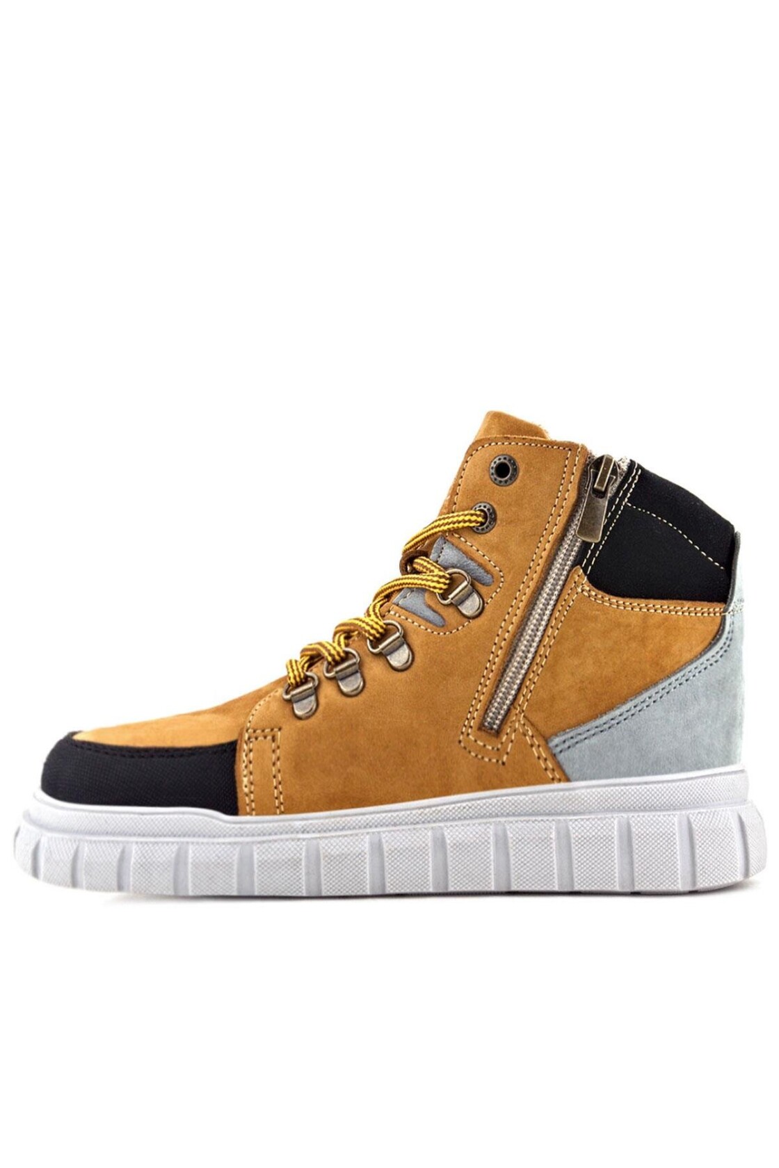 Rakerplus Hakiki Deri Sarı Bağcıklı Fermuarlı Çocuk Bot