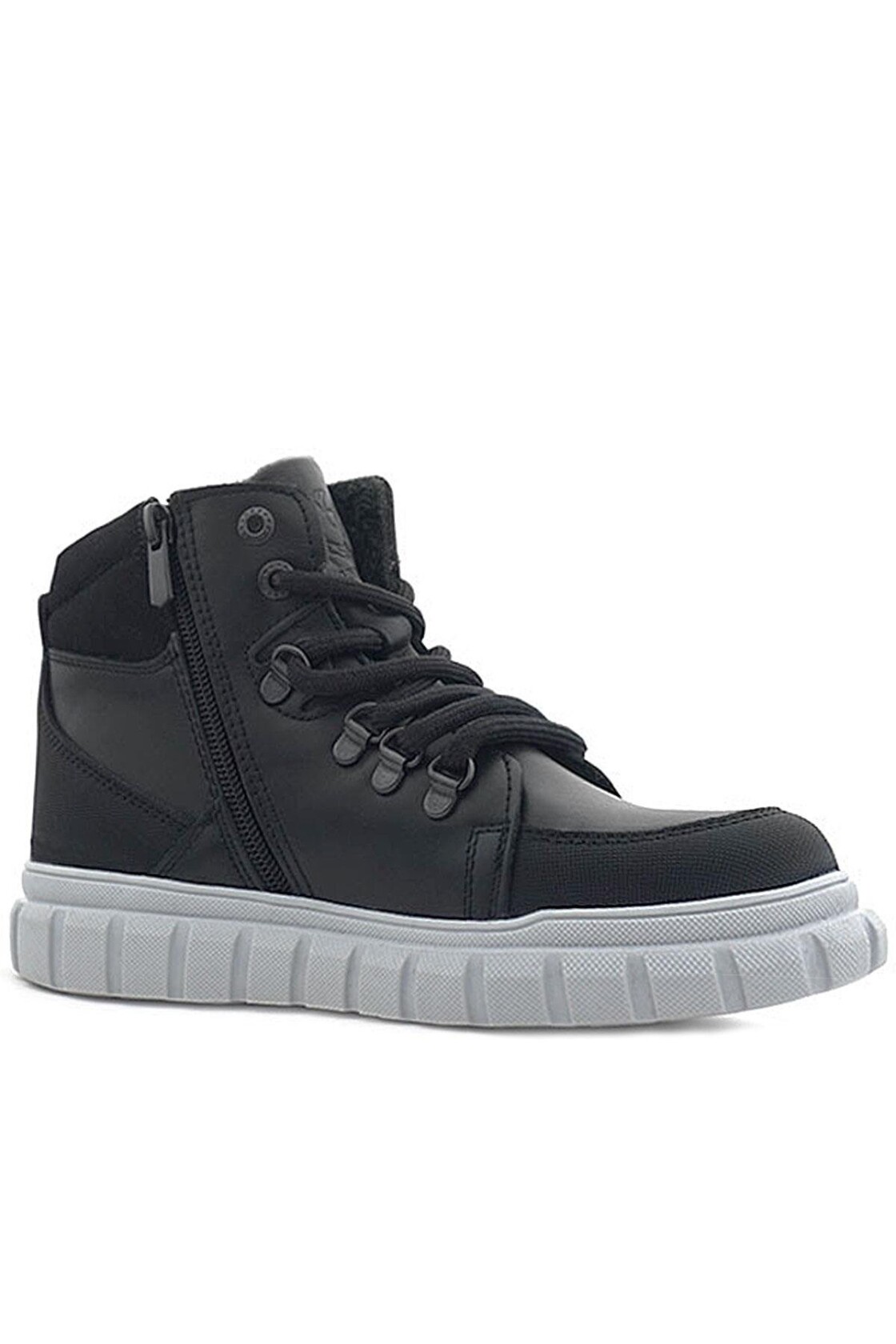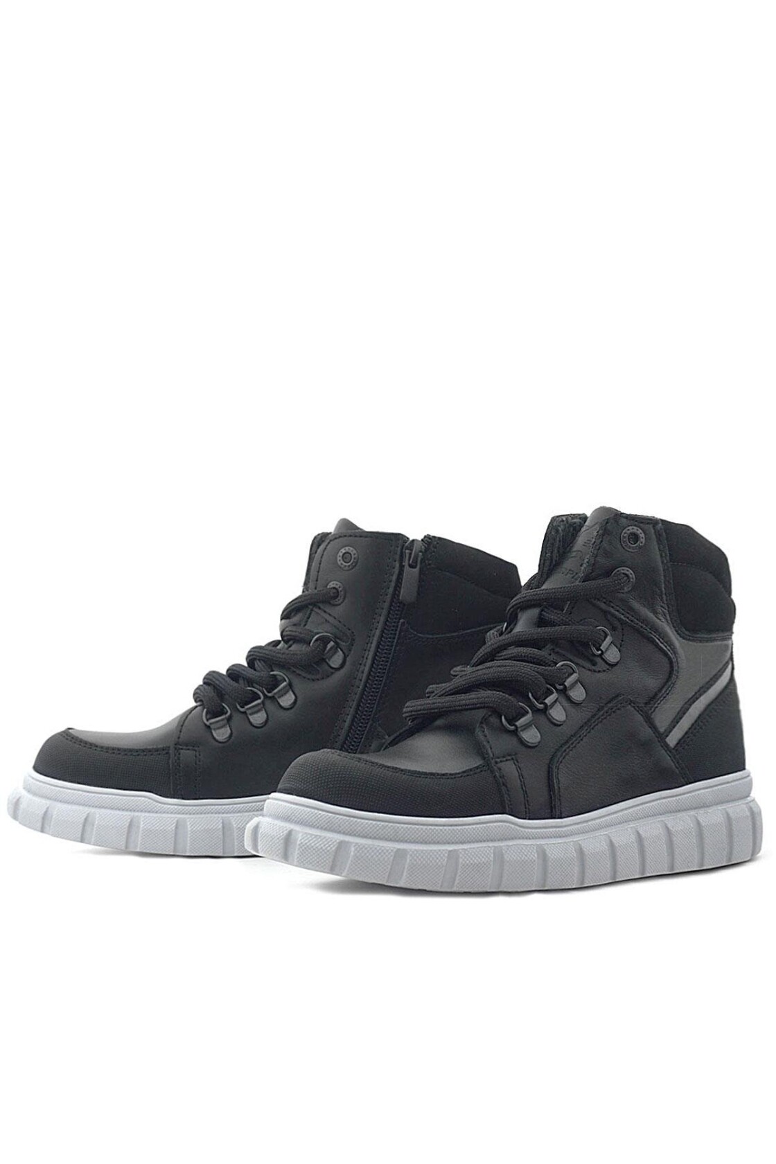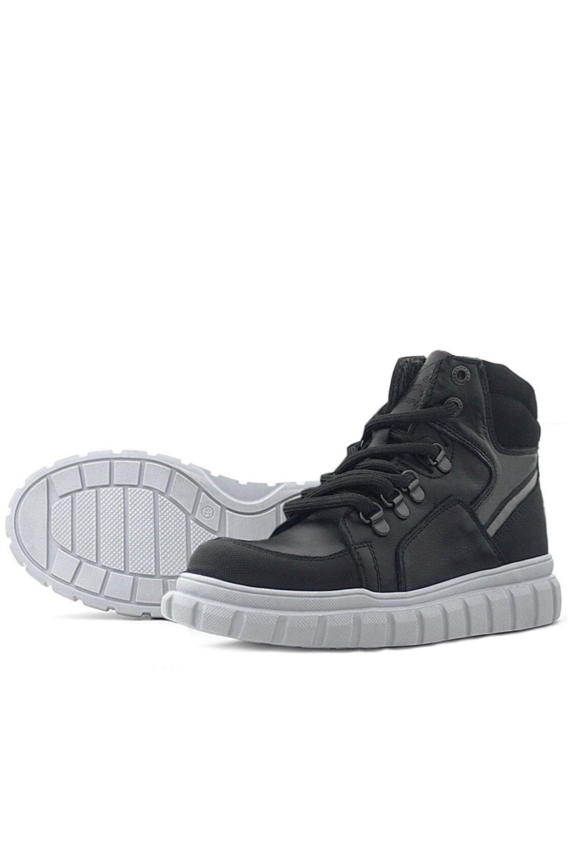 Rakerplus Hakiki Deri Siyah Gri Fermuarlı Erkek Çocuk Bot
