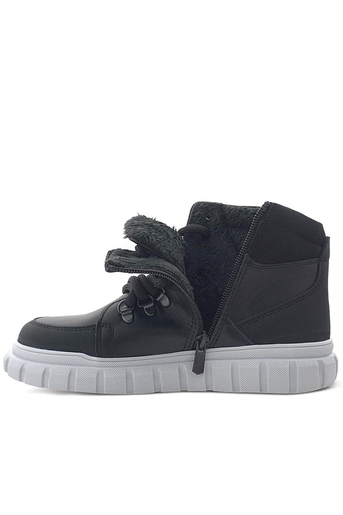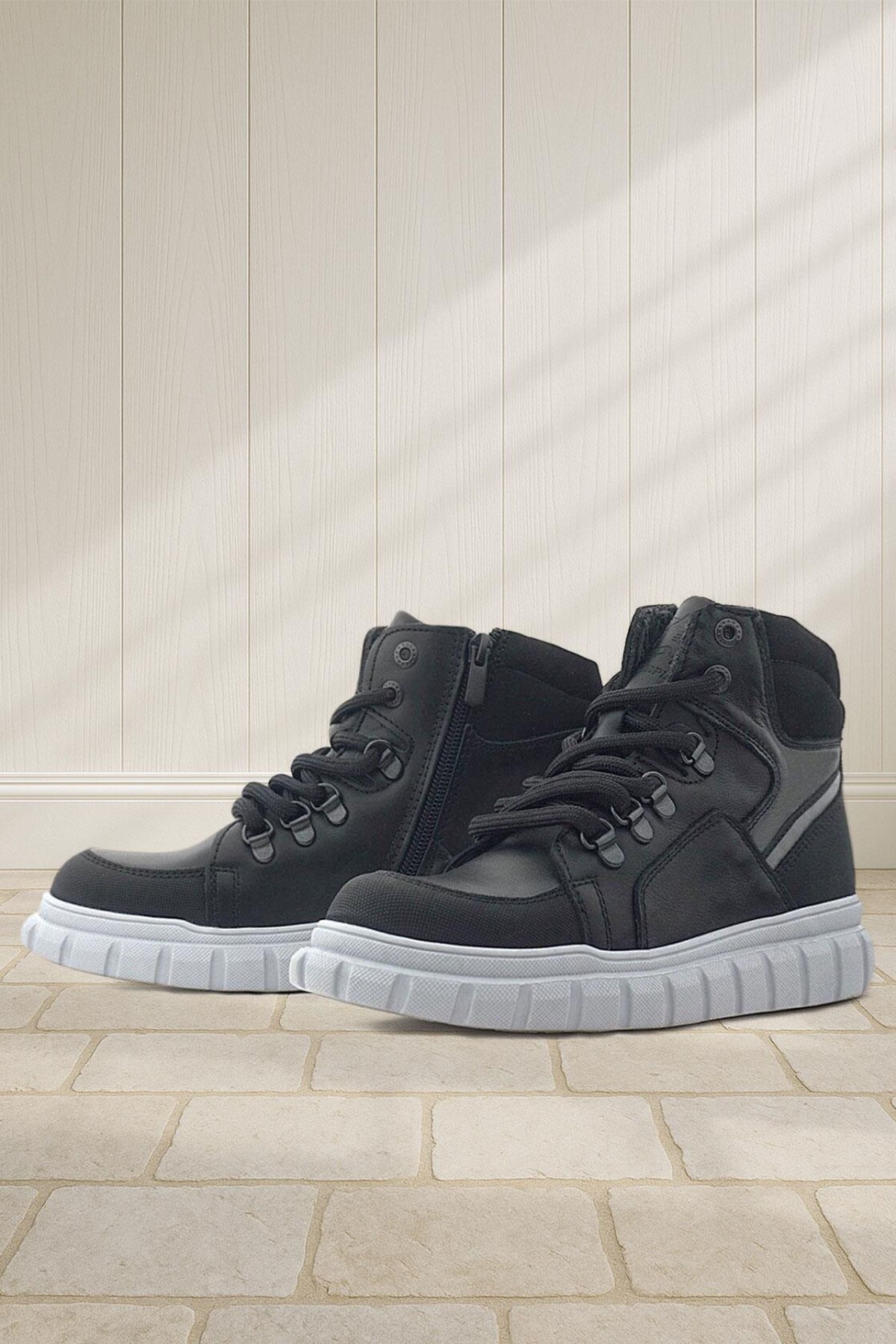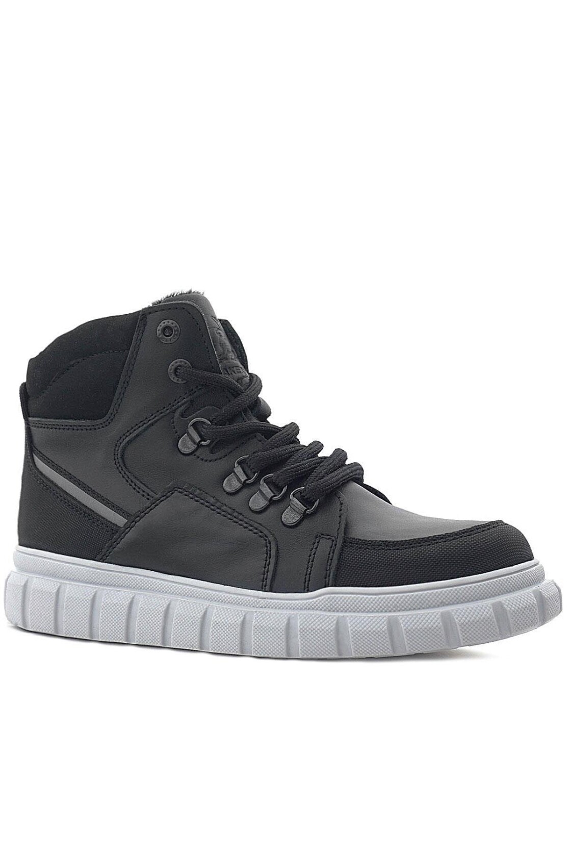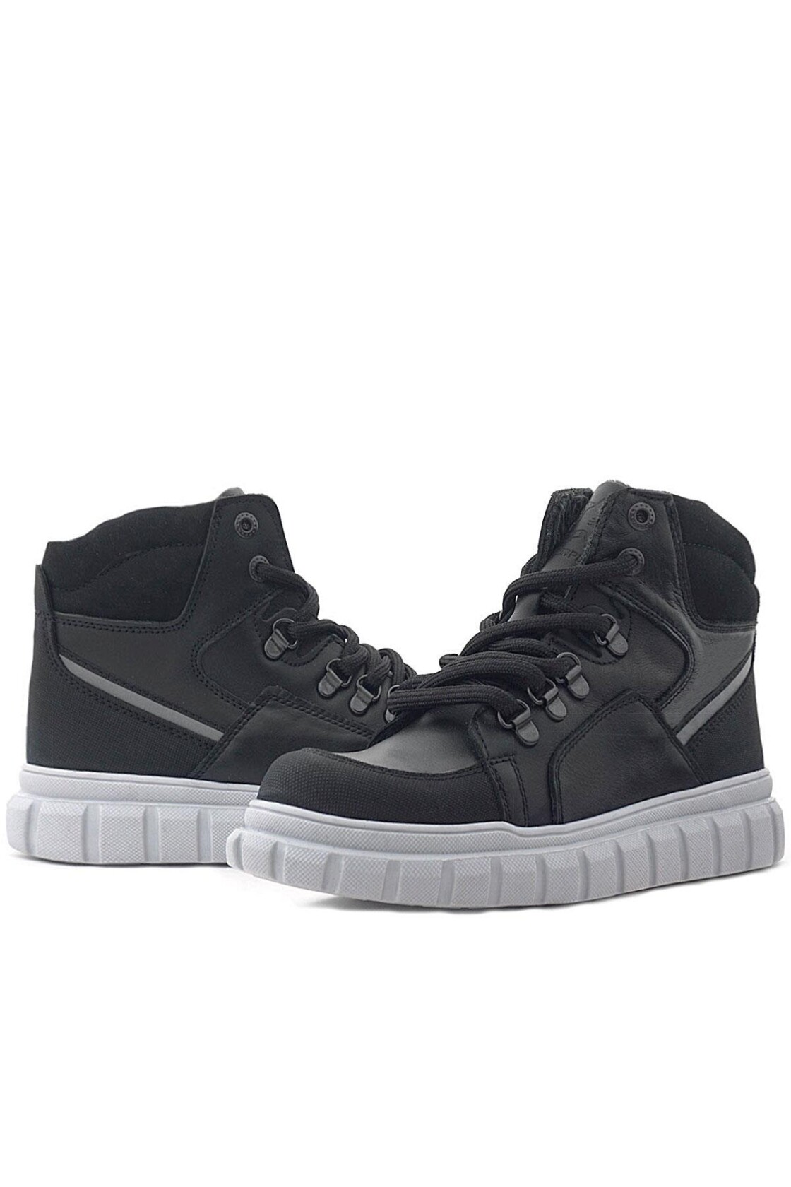 Rakerplus Hakiki Deri Siyah Gri Fermuarlı Erkek Çocuk Bot