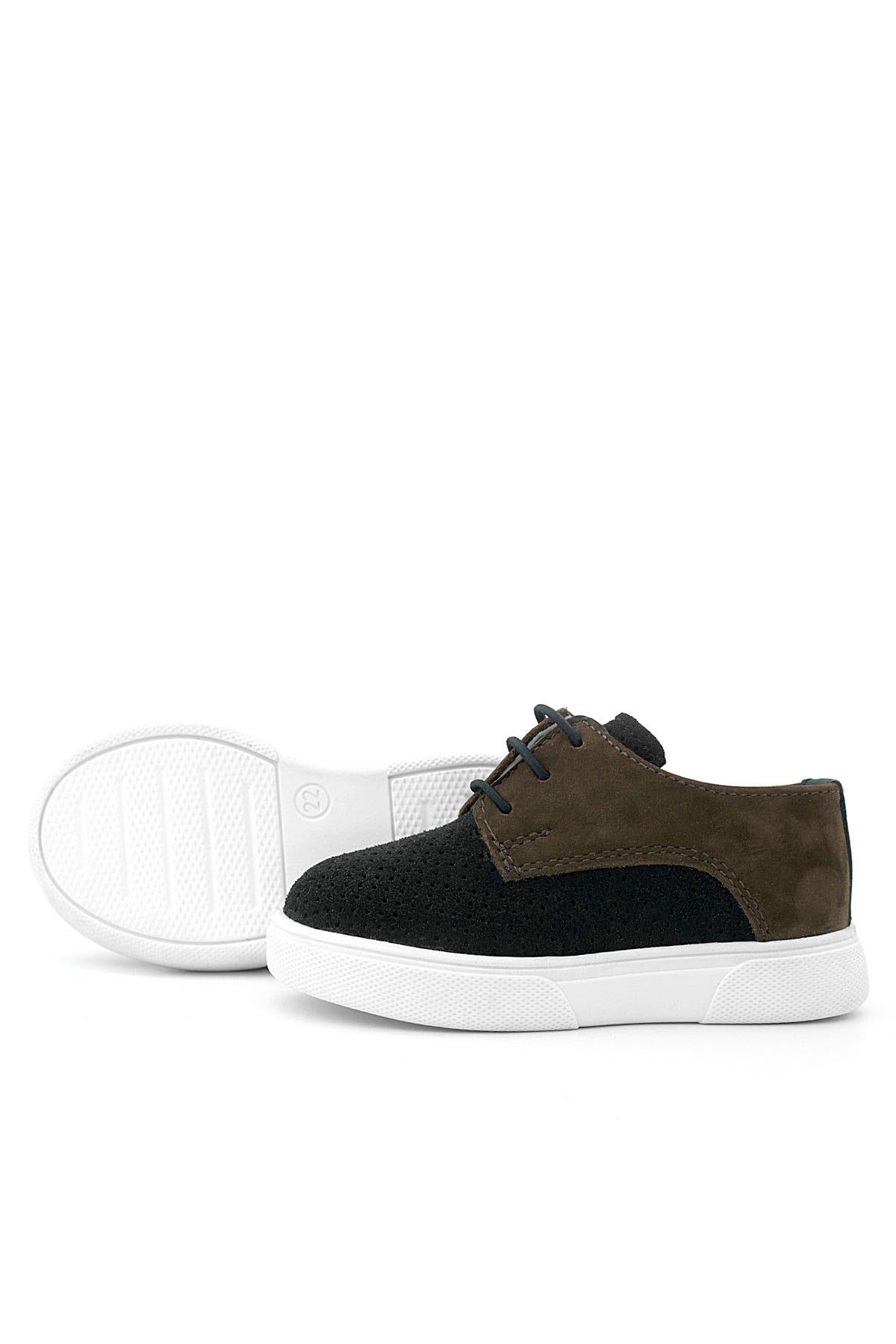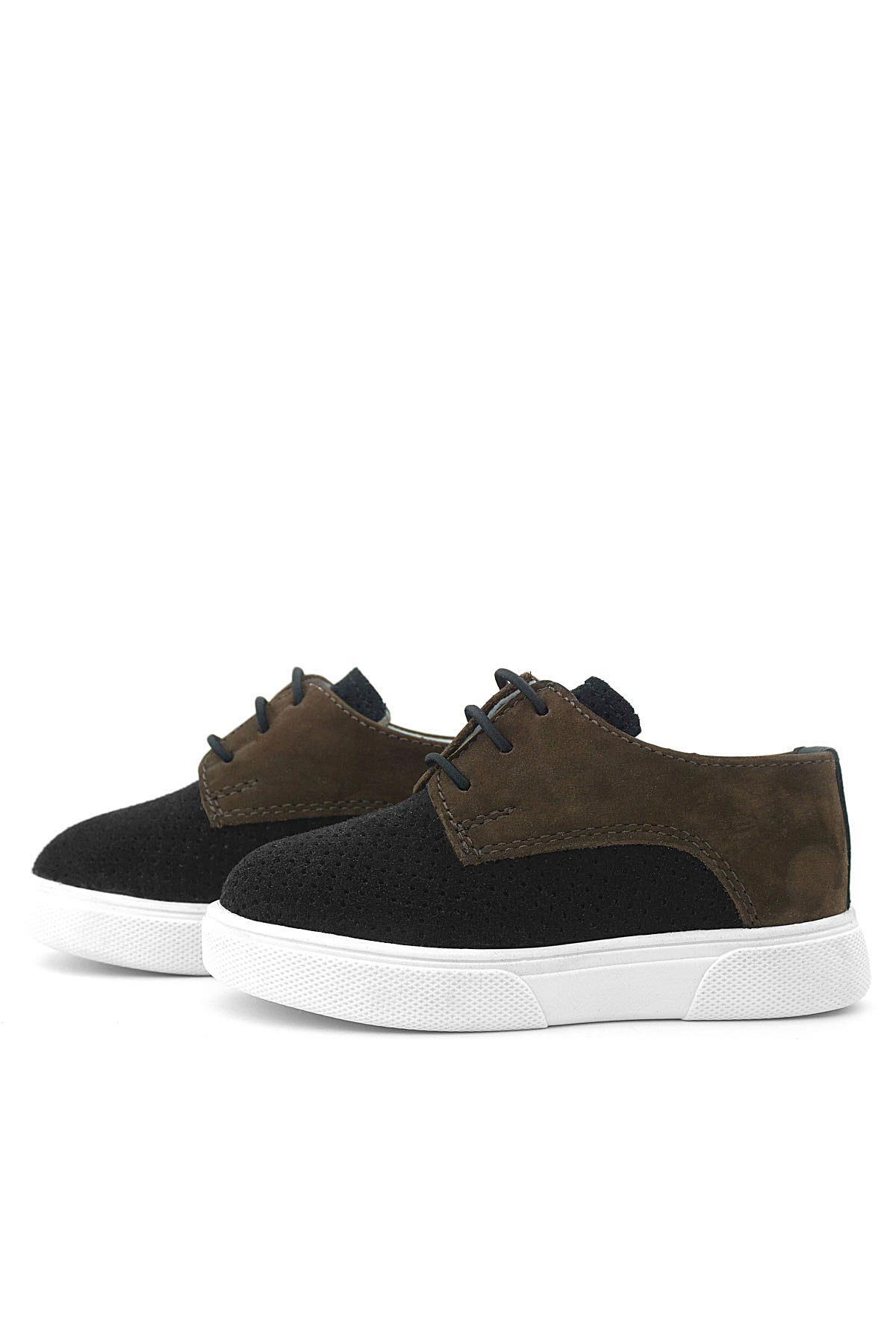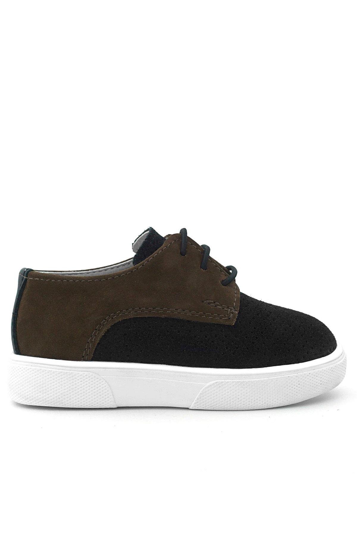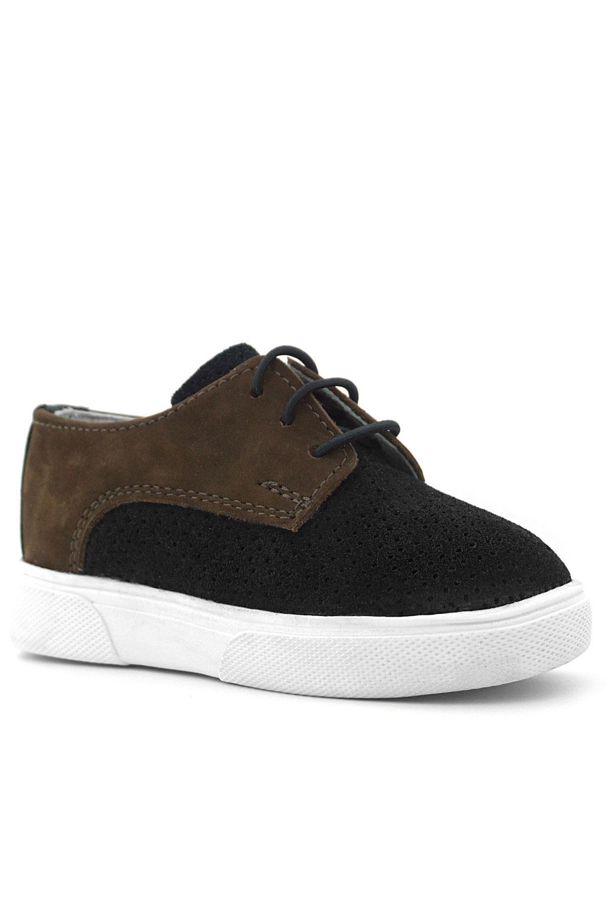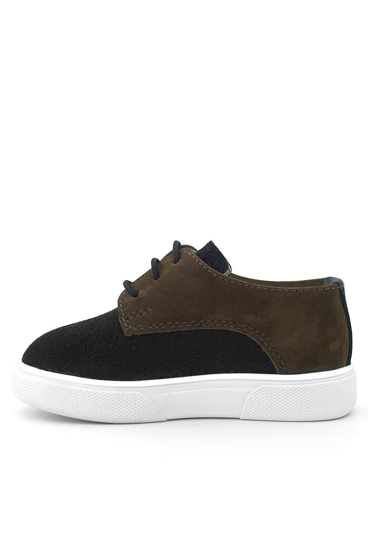 حذاء كاجوال مطاطي أسود بني من الجلد الطبيعي للأولاد من راكر بلاس