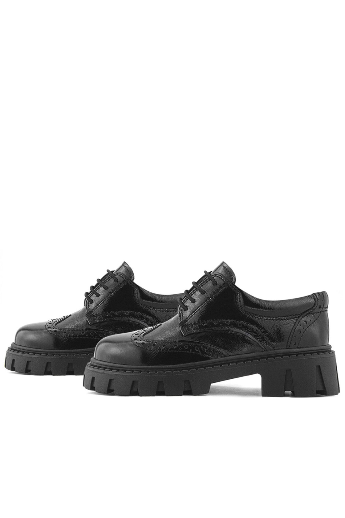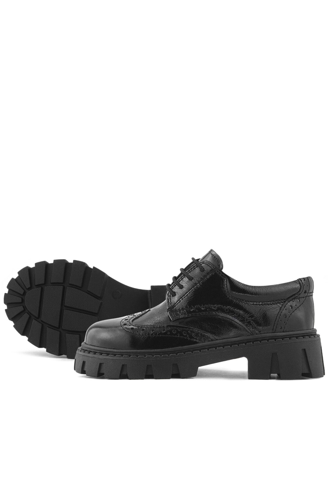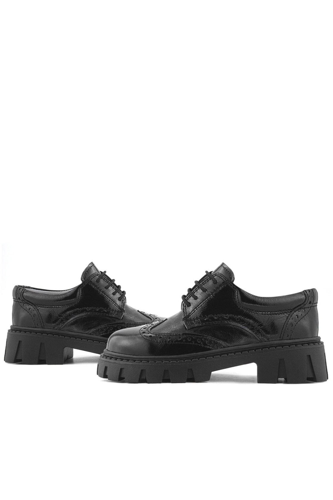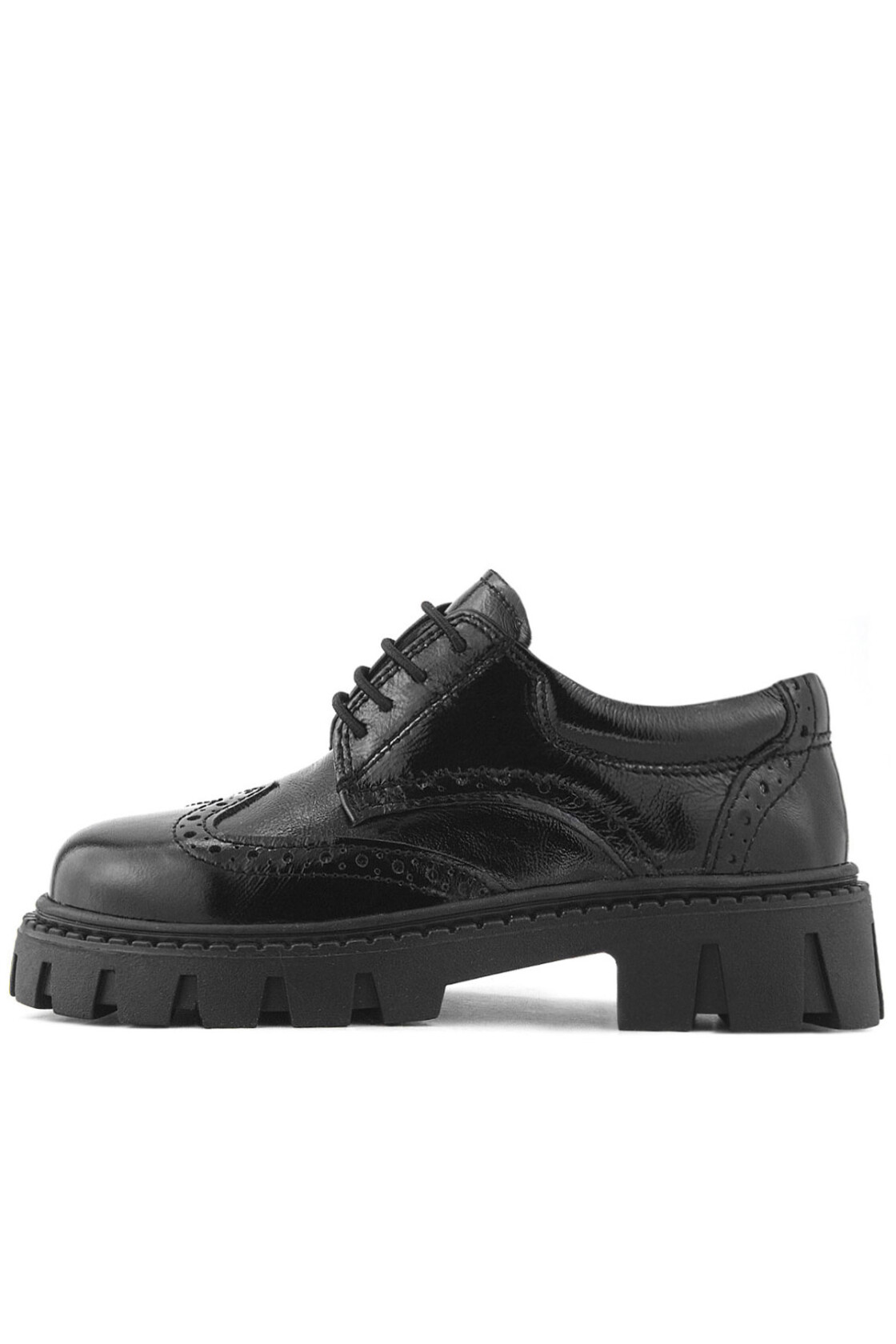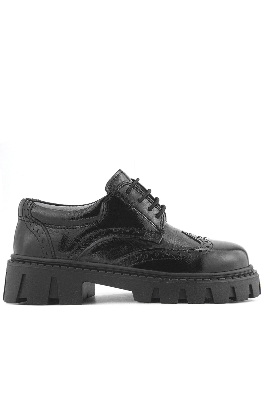 Rakerplus Hakiki Deri Siyah Kırışık Rugan Oxford Çocuk Günlük Ayakkabı