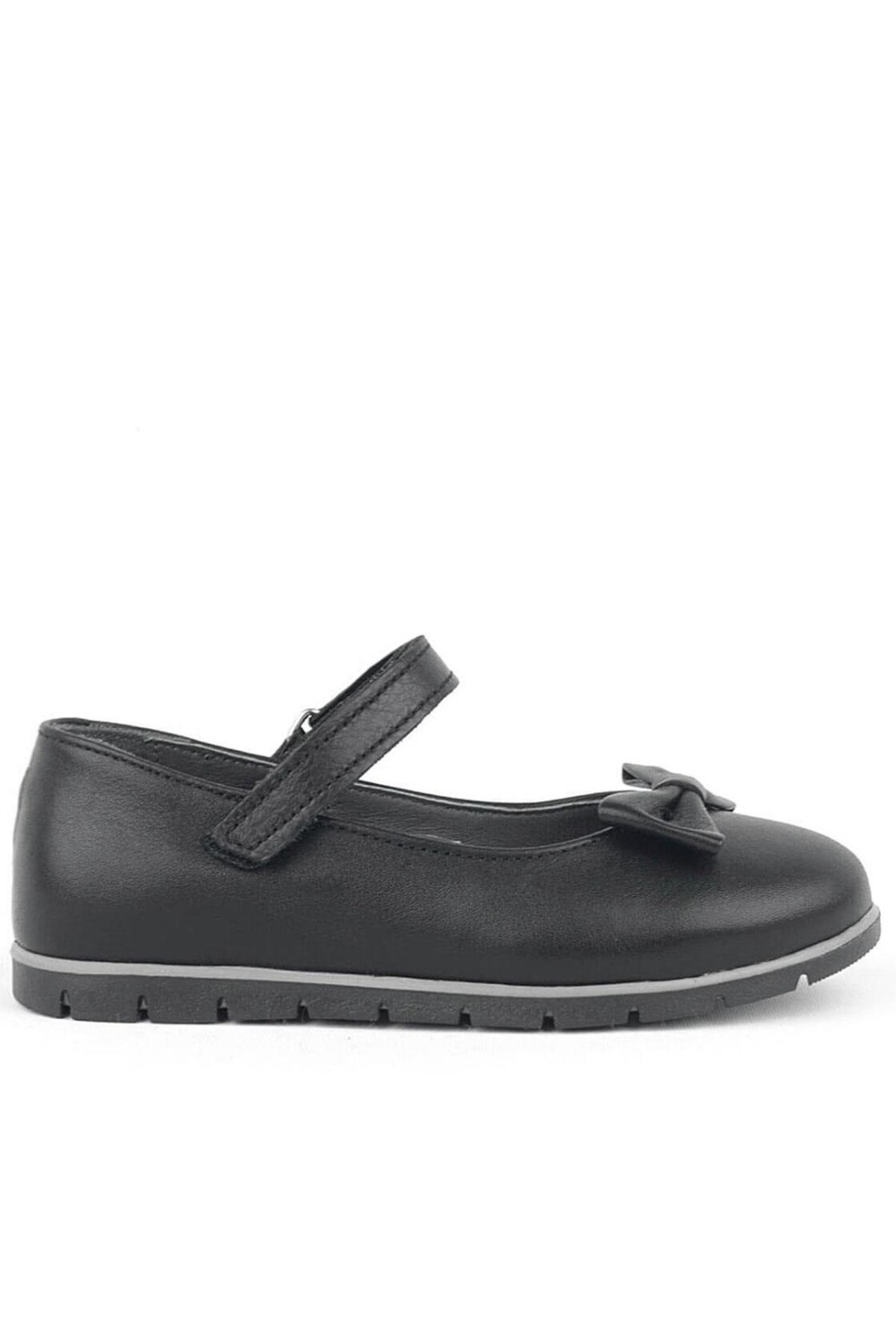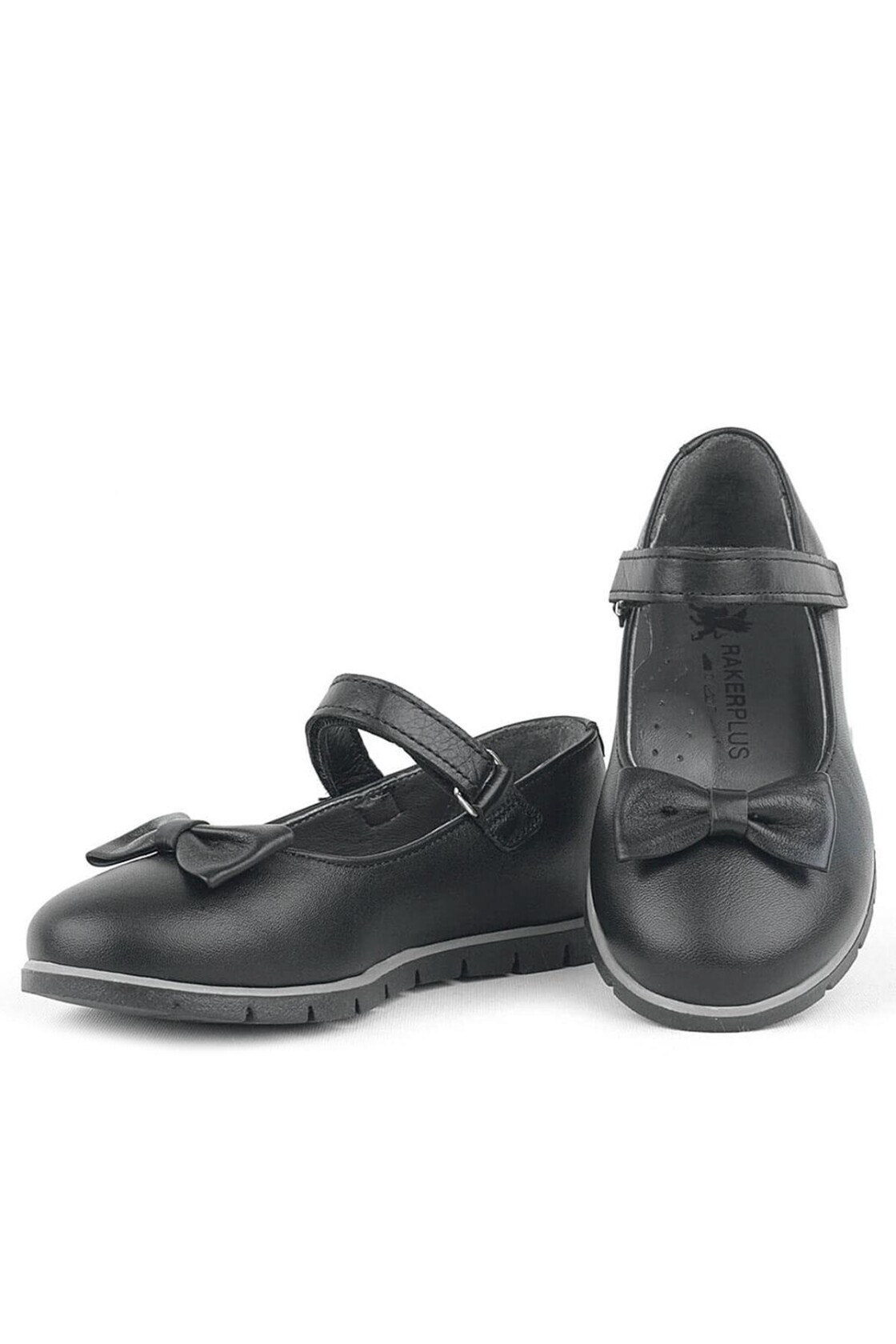 Rakerplus Hakiki Deri Siyah Kurdele Detaylı Kız Çocuk Babet