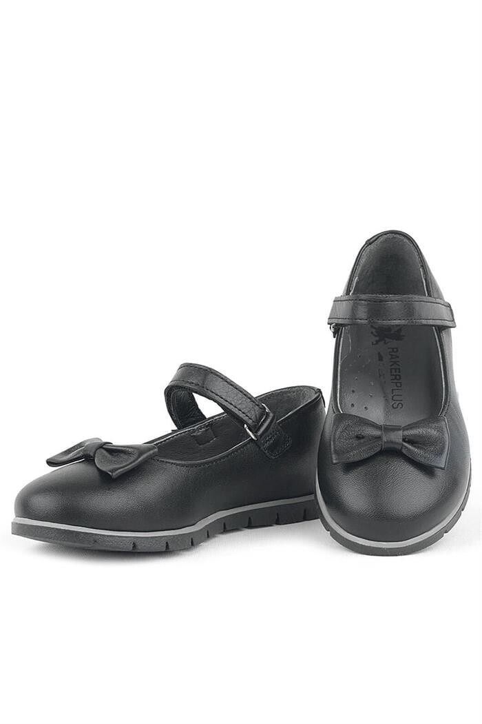 Rakerplus Hakiki Deri Siyah Rugan Kız Çocuk Babet