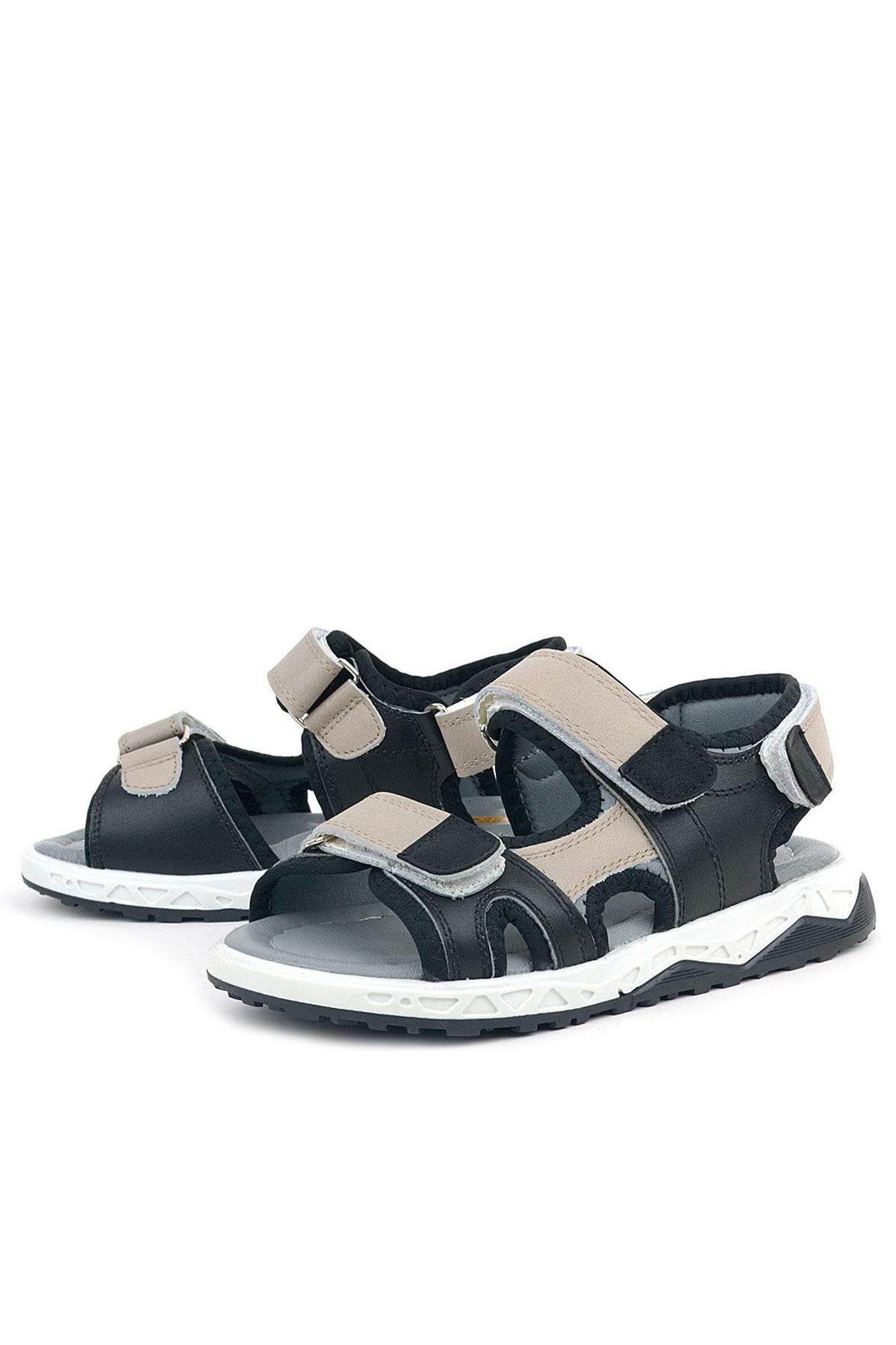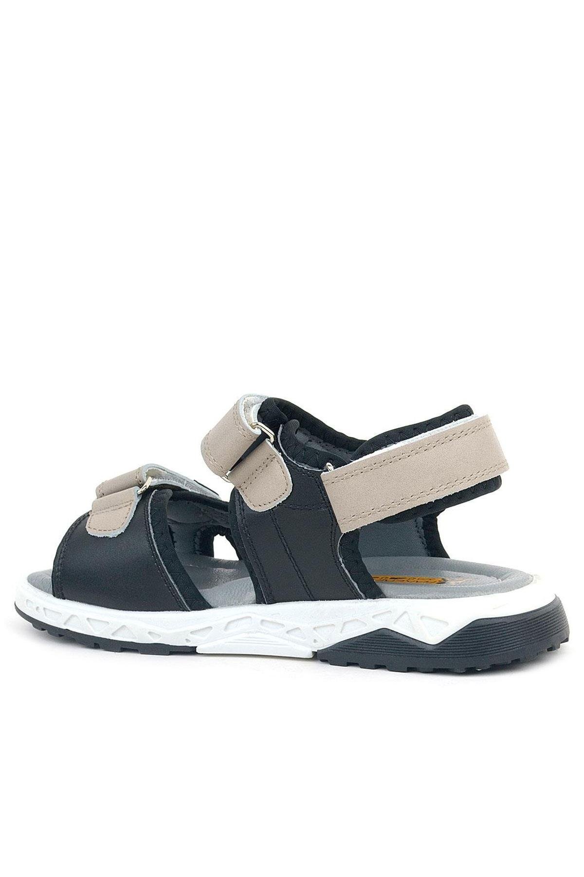 صندل أطفال من جلد طبيعي من راكر بلس، لون أسود رملي، بشريط فيلكرو