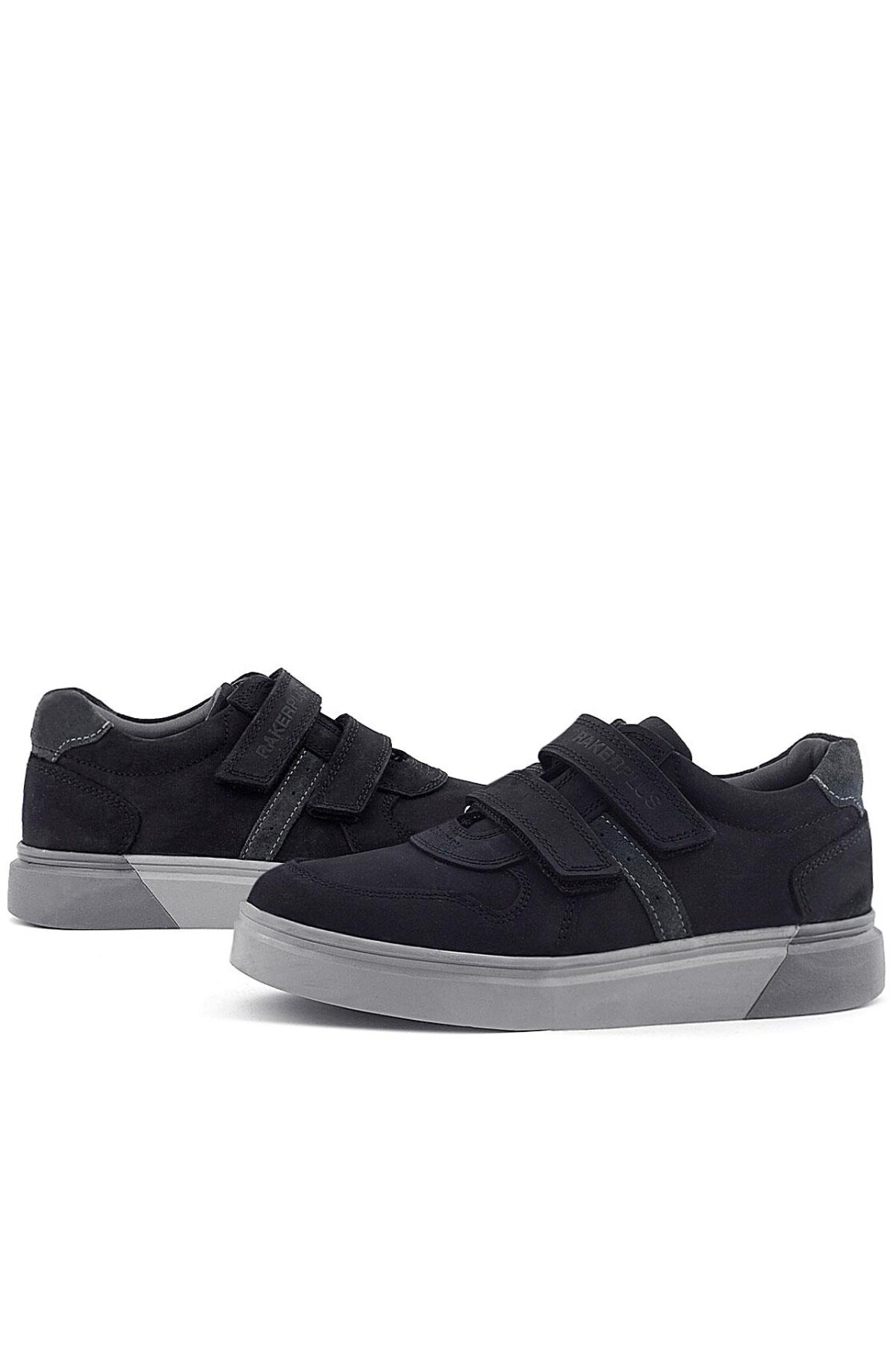 Rakerplus Hakiki Deri Siyah Nubuk Gri Cırtlı Erkek Çocuk Sneaker, Spor ve Günlük Ayakkabı