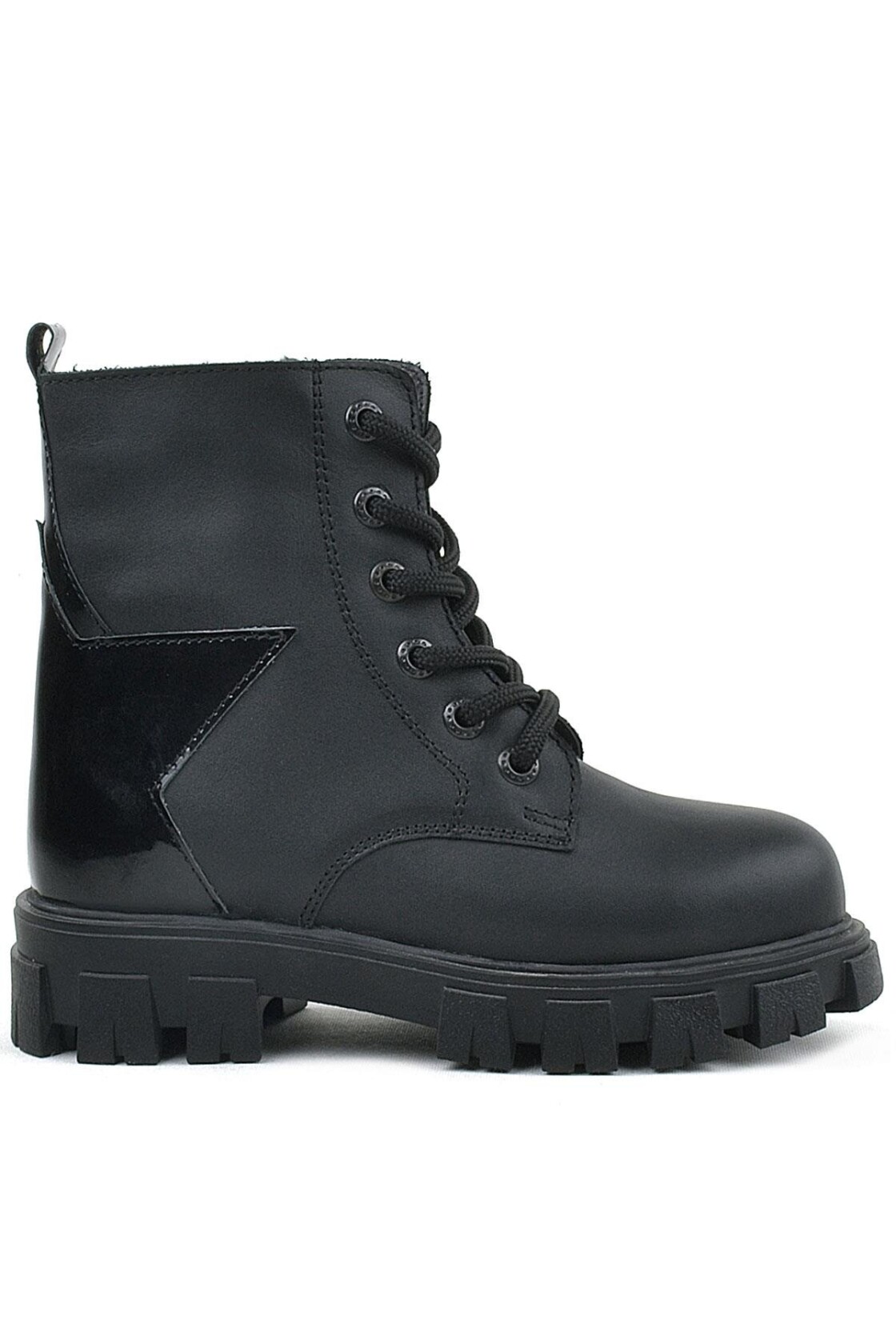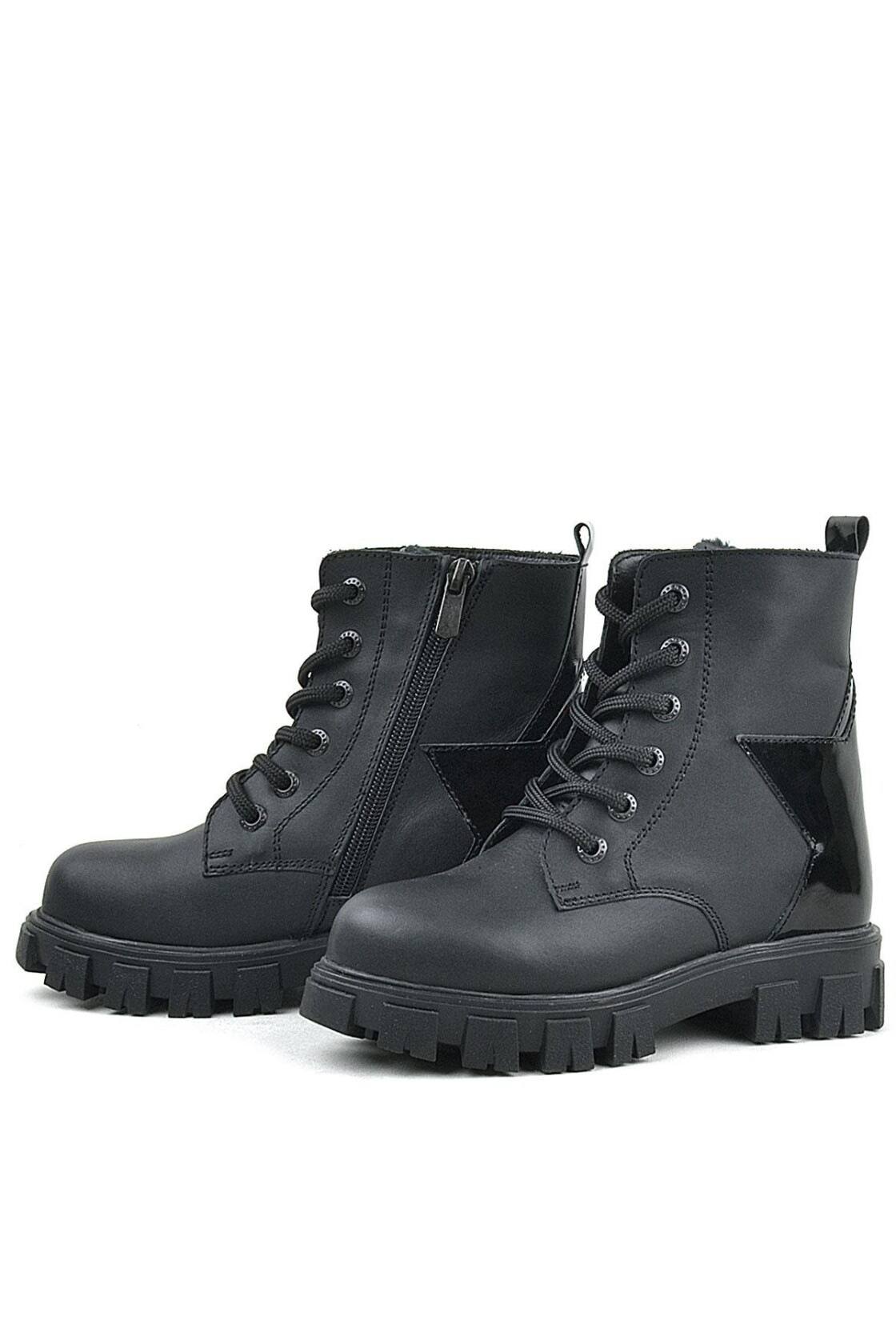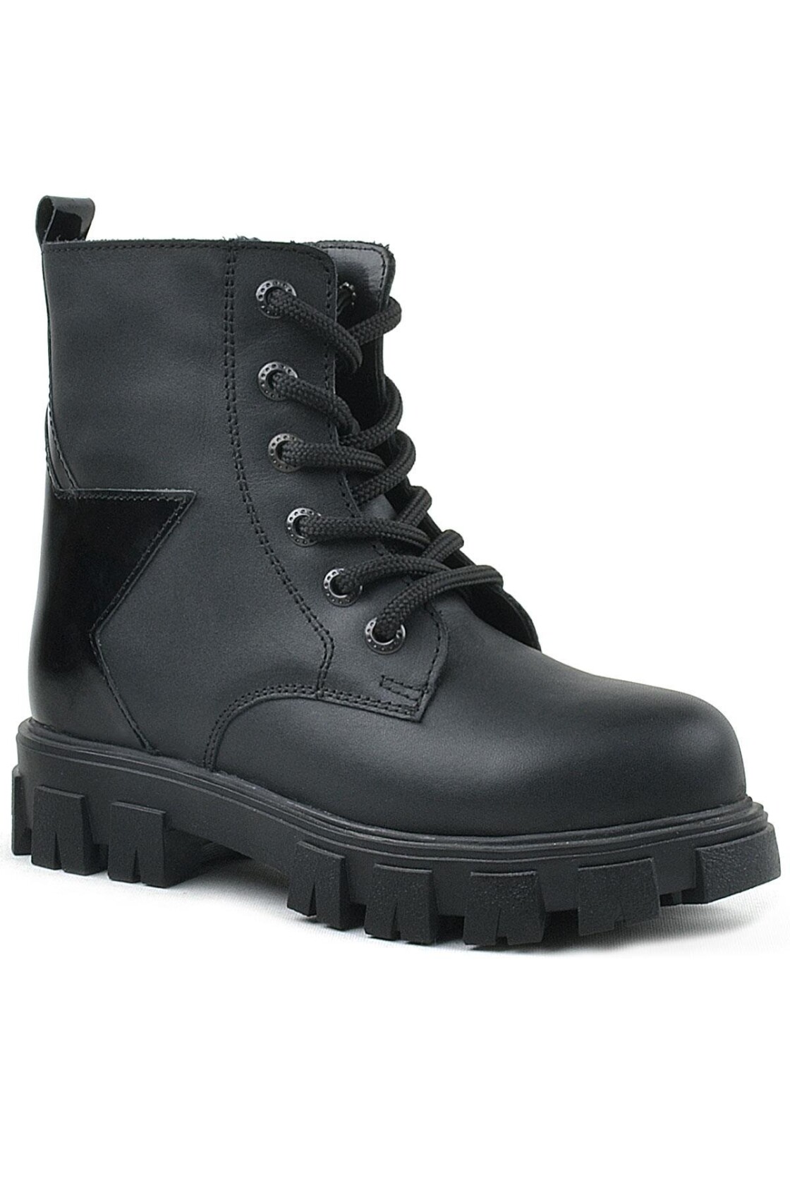 Rakerplus Hakiki Deri Siyah Yıldız Detaylı Kız Çocuk Bot