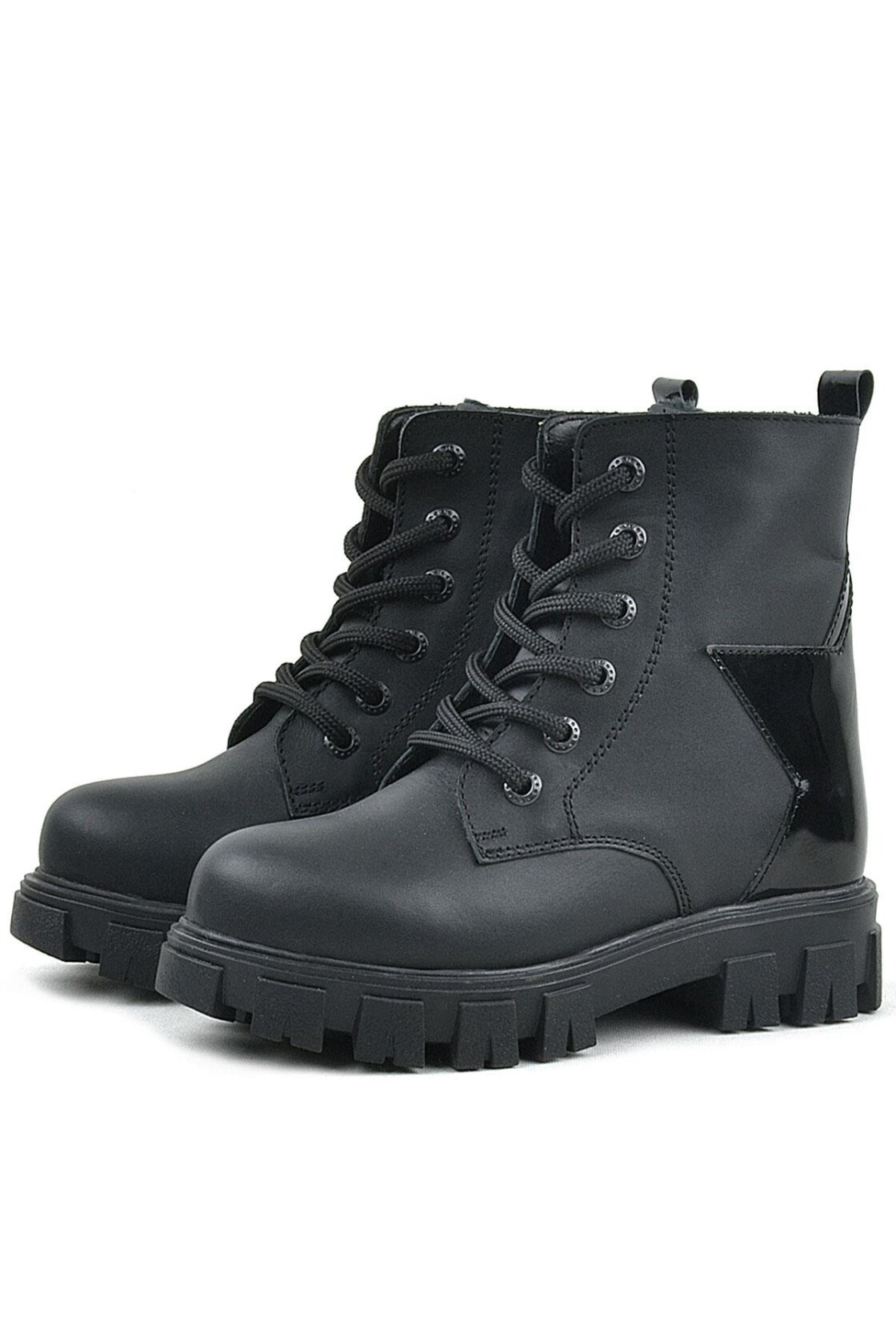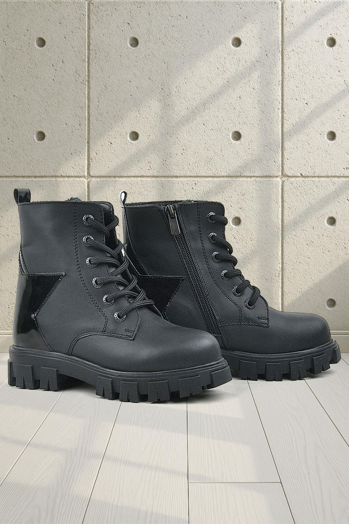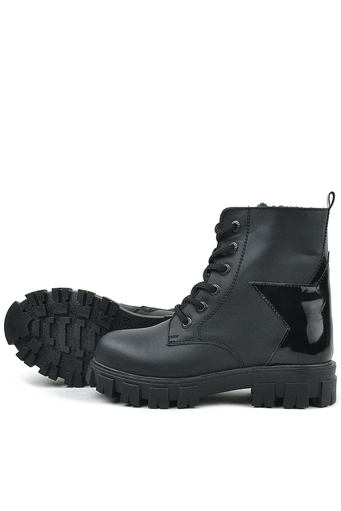 Rakerplus Hakiki Deri Siyah Yıldız Detaylı Kız Çocuk Bot