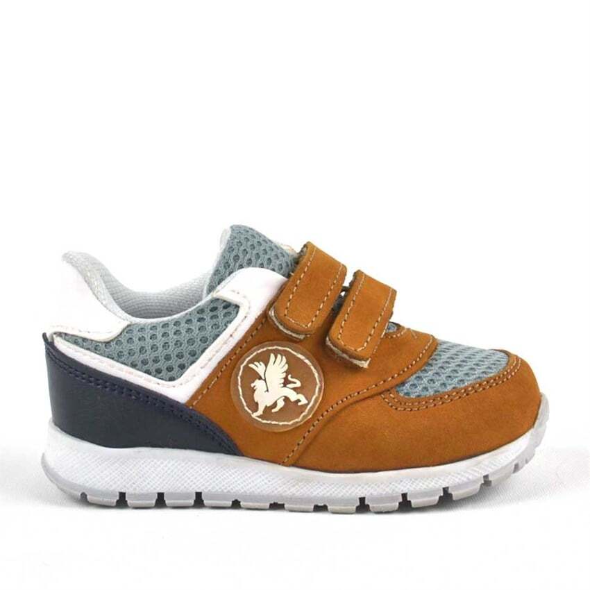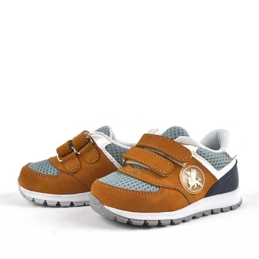 حذاء رياضي للأطفال من راكر بلس مصنوع من الجلد الطبيعي باللون البني مع شريط فيلكرو
