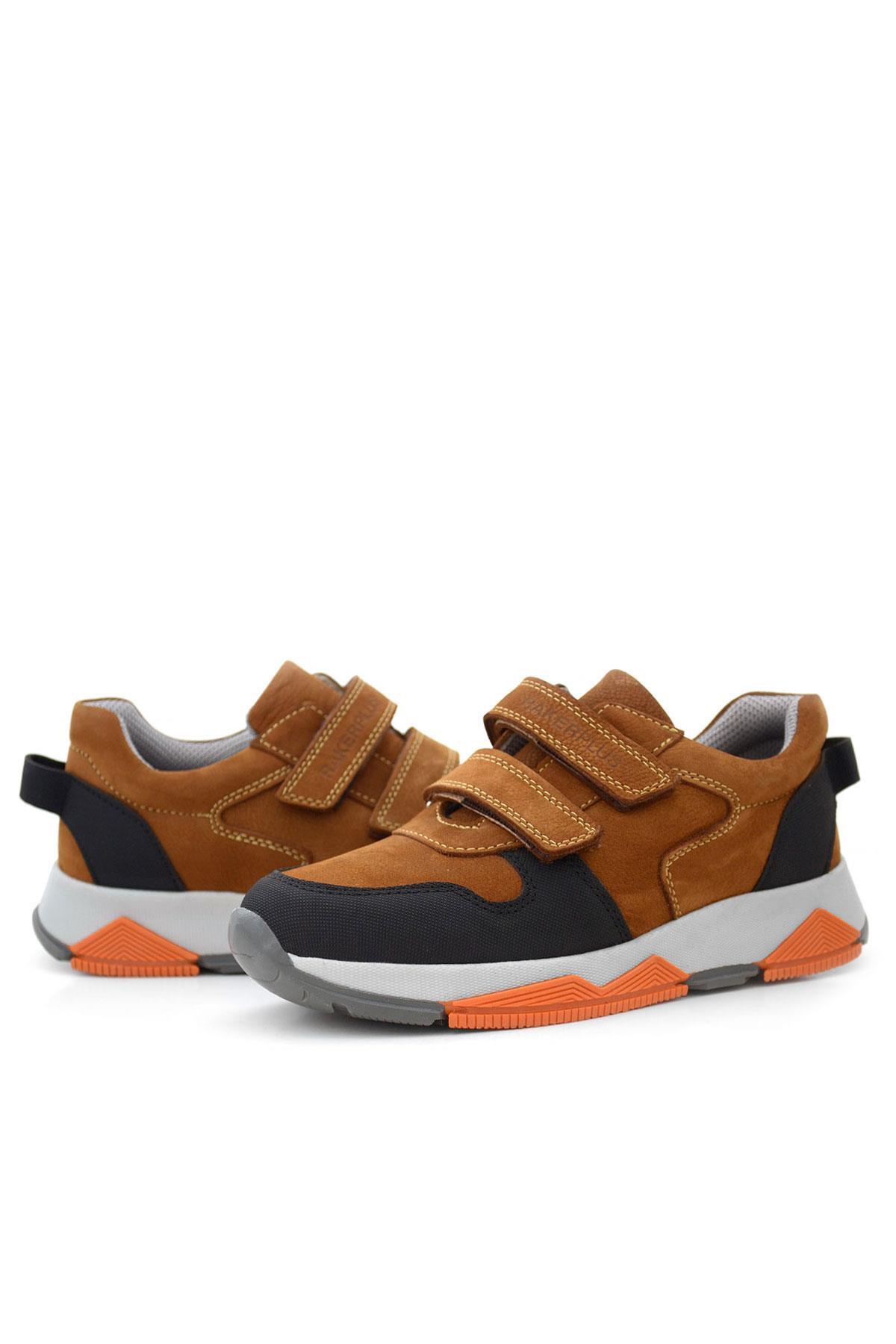 حذاء رياضي مدرسي للأطفال من الجلد الطبيعي من راكر بلاس بلون بني