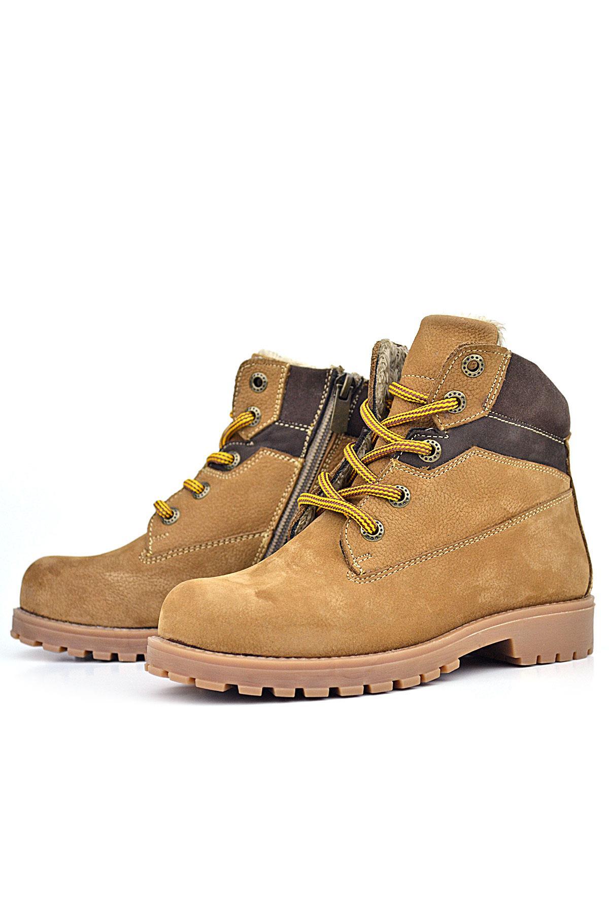 حذاء شتوي للأطفال من جلد طبيعي من راكر بلاس، بني فاتح، برباط وسحّاب