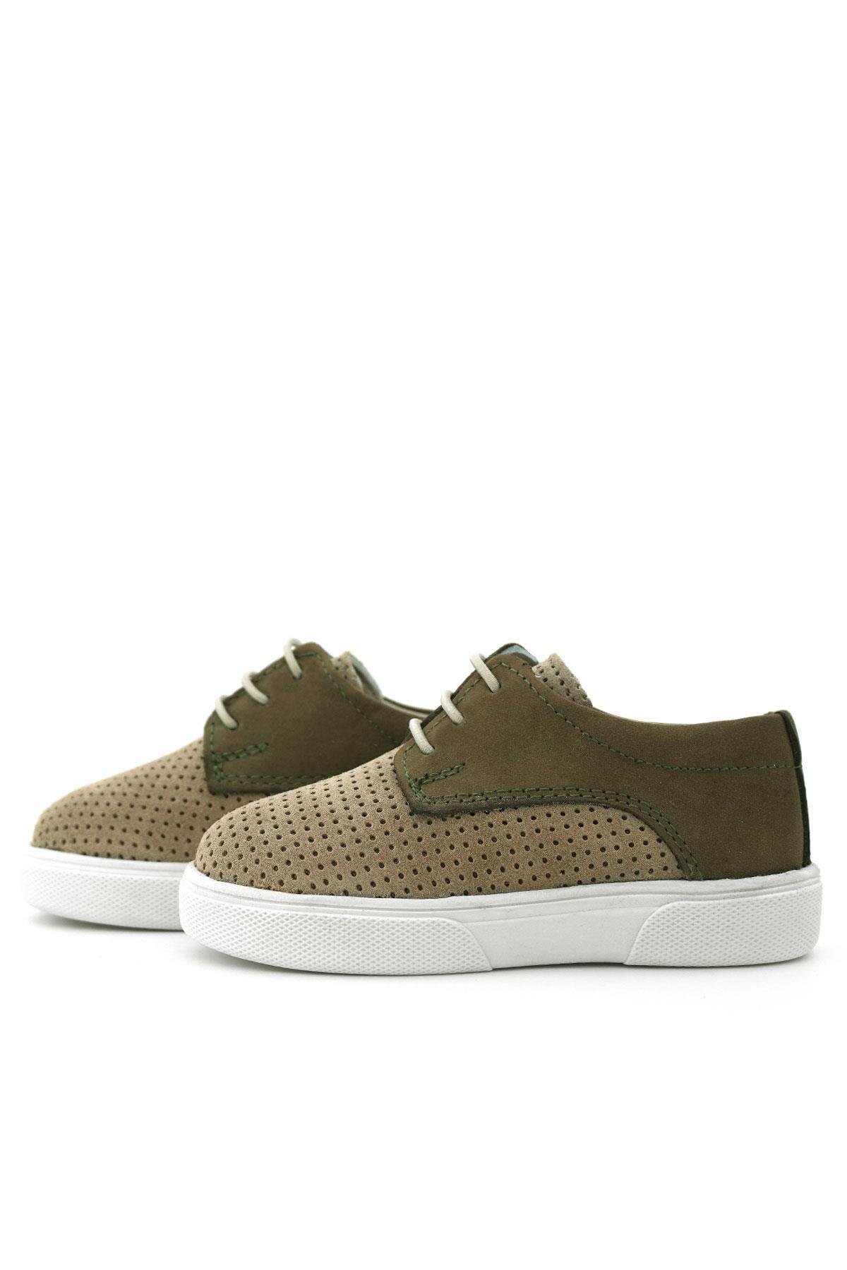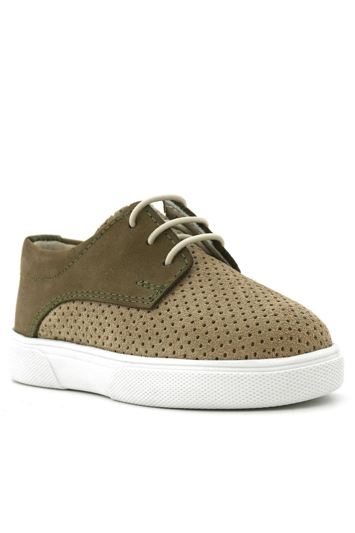 حذاء كاجوال مطاطي من الجلد الطبيعي بلون المنك الكاكي للأولاد من راكر بلاس