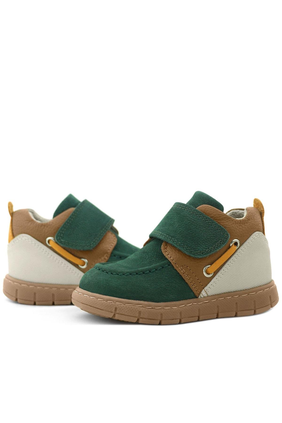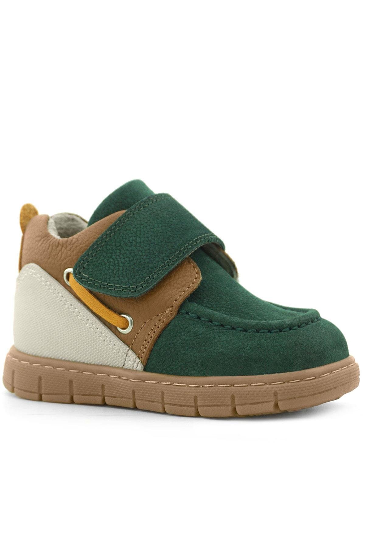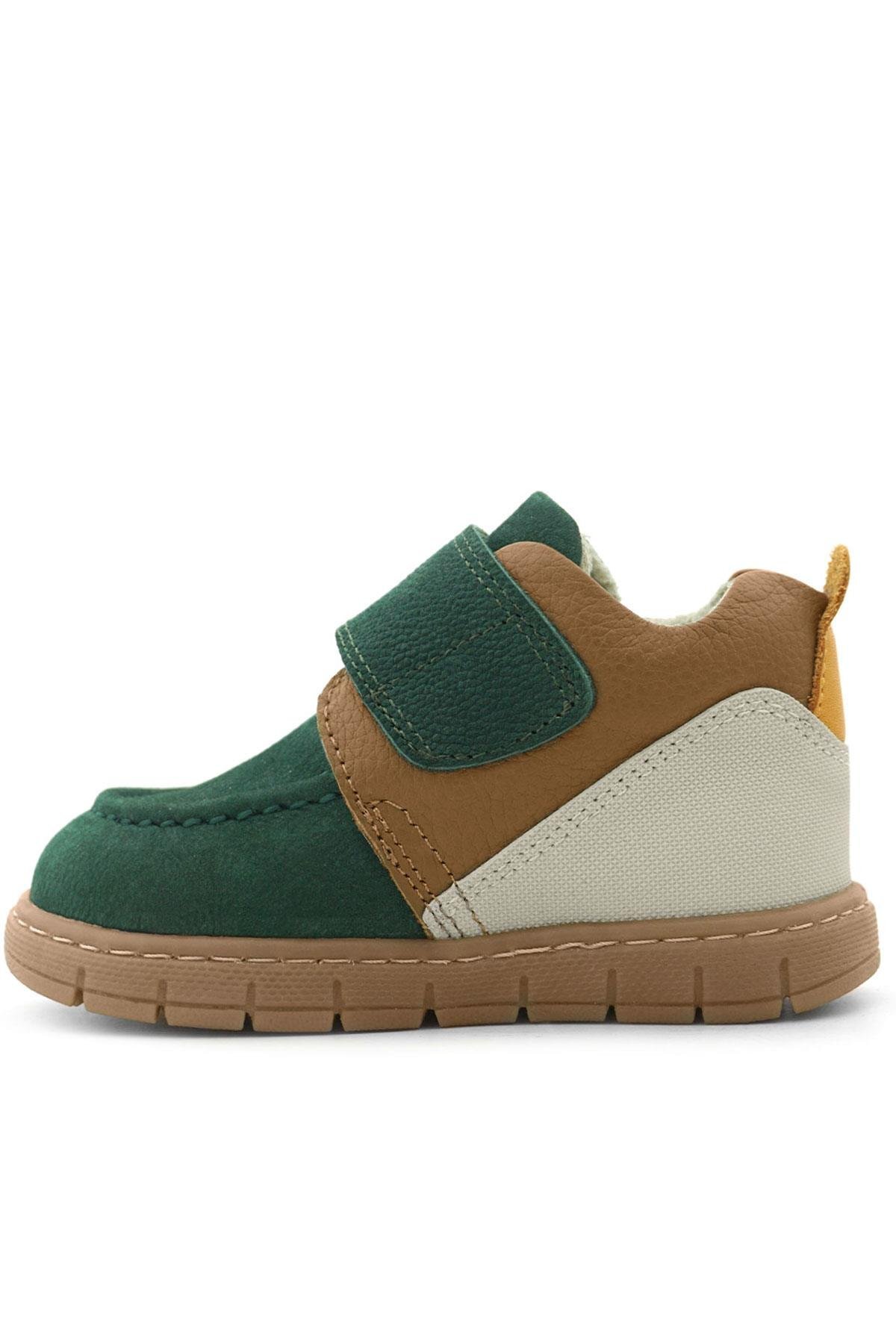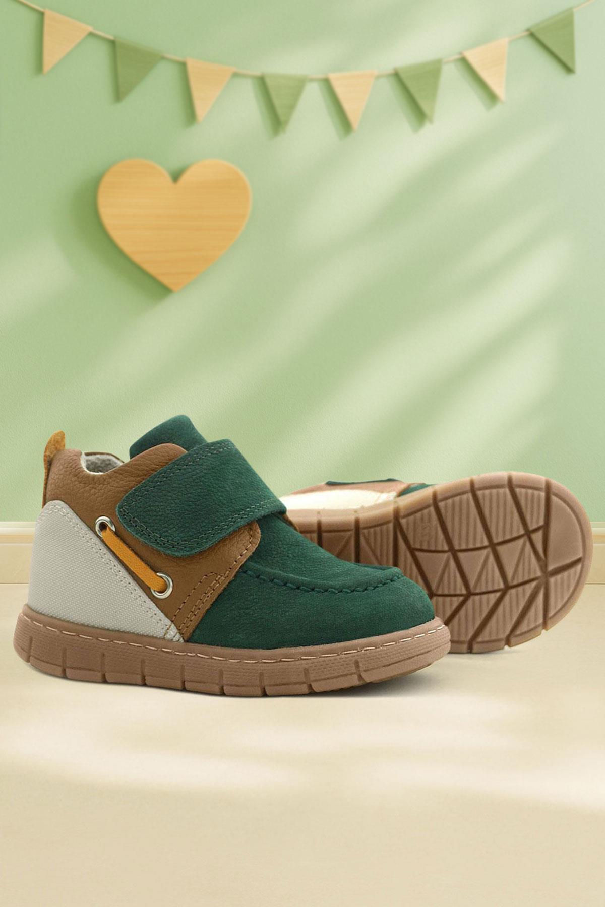 Rakerplus Hakiki Deri Yeşil Taba Cırt Cırtlı Bebek Bot, minik adımlar için maksimum konfor ve güven sunmak üzere özel olarak tasarlandı. %100 hakiki deri yüzeyi ve yumuşak astarı sayesinde bebeğinizin hassas cildine zarar vermezken, esnek taban yapısı doğal ayak hareketlerini destekler. Cırt cırtlı kapama sistemi, kolay giydirme ve çıkarma imkanı sağlar. Kaymaz ve hafif tabanı sayesinde hem iç hem dış mekânda güvenli bir kullanım sunar. Ergonomik tasarımıyla bebeklerin ayak gelişimini destekleyen bu bot, şık yeşil-taba renk kombinasyonuyla hem rahatlığı hem de tarzı bir arada sunar.