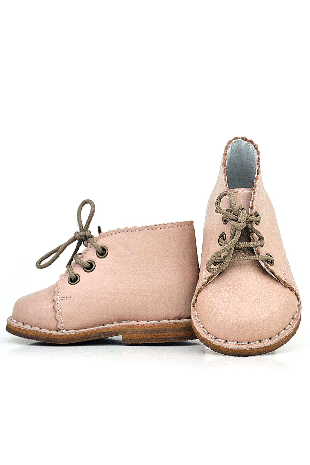 حذاء راكر بلاس وردي فاتح مصنوع يدويًا من الجلد الطبيعي برباط للفتيات الصغيرات