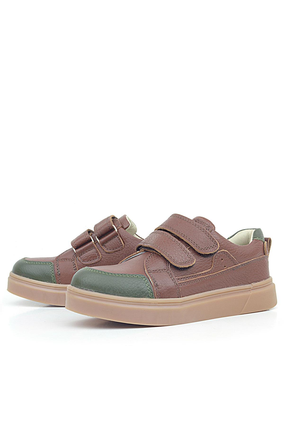 Rakerplus Kahverengi Yeşil Hakiki Deri Cırtlı Kız Çocuk Sneaker Ayakkabı - 1