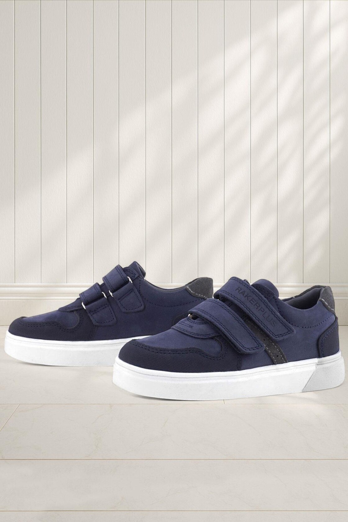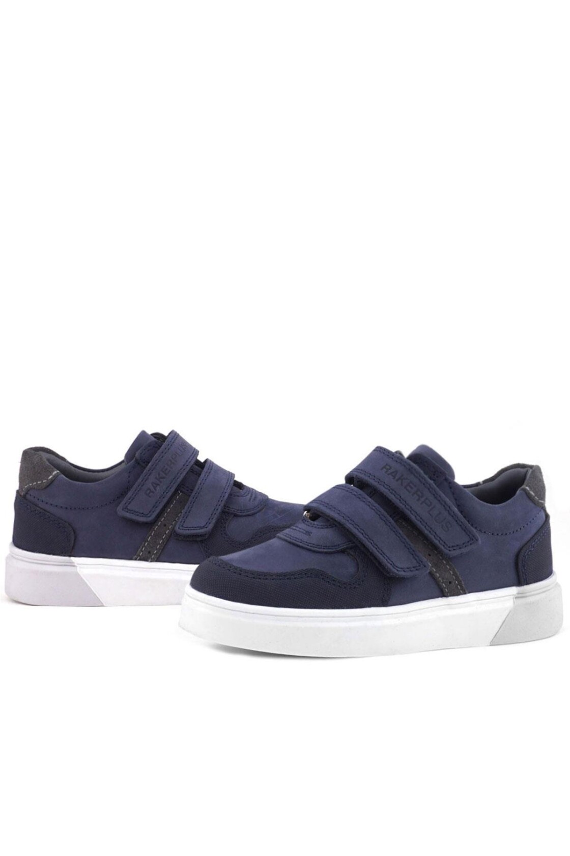Rakerplus Anatomik Lacivert Nubuk Gri Cırt Cırtlı Hakiki Deri Erkek Çocuk Okul Ayakkabısı ve Çocuk Sneakers
