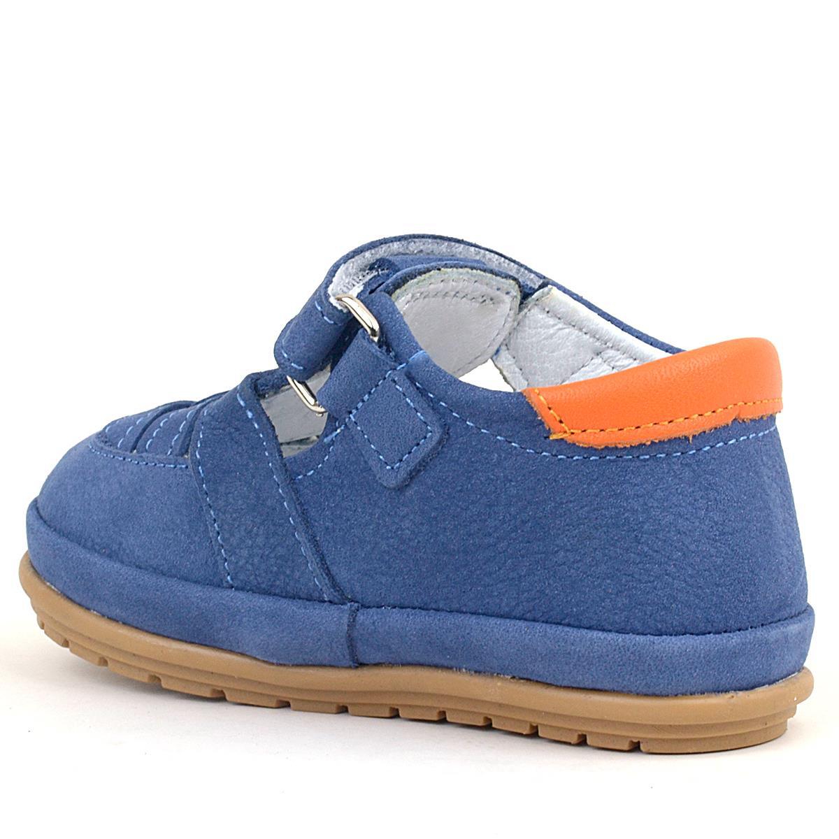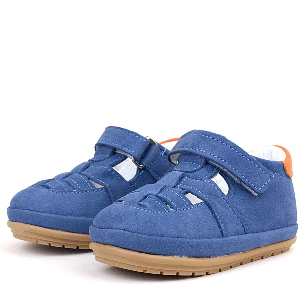 Rakerplus Shaun Hakiki Deri Mavi Cırtlı Anatomik Bebek Sandalet