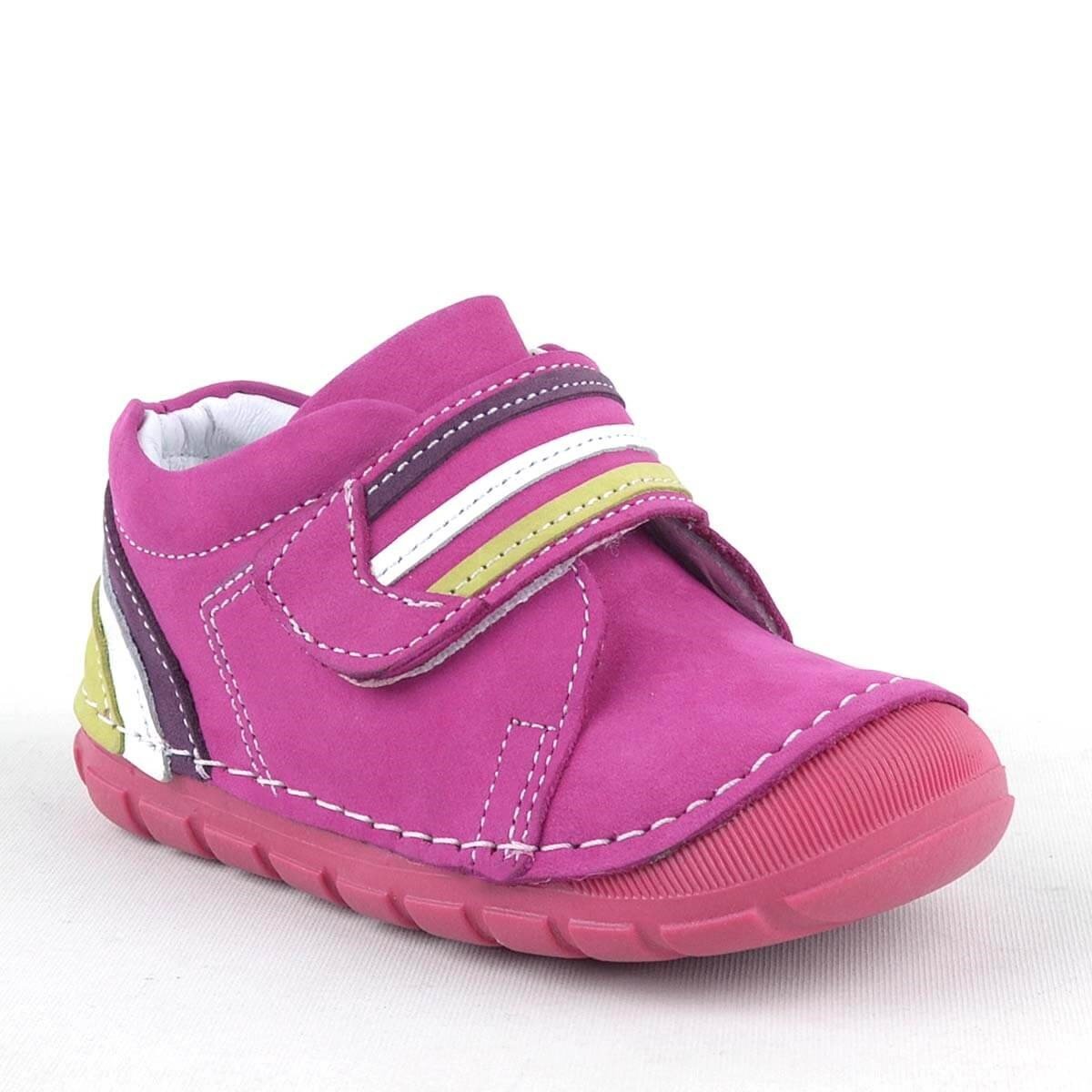Rakerplus Pilou Hakiki Deri Fuşya Tek Cırtlı İlk Adım Kız Bebek Ayakkabısı