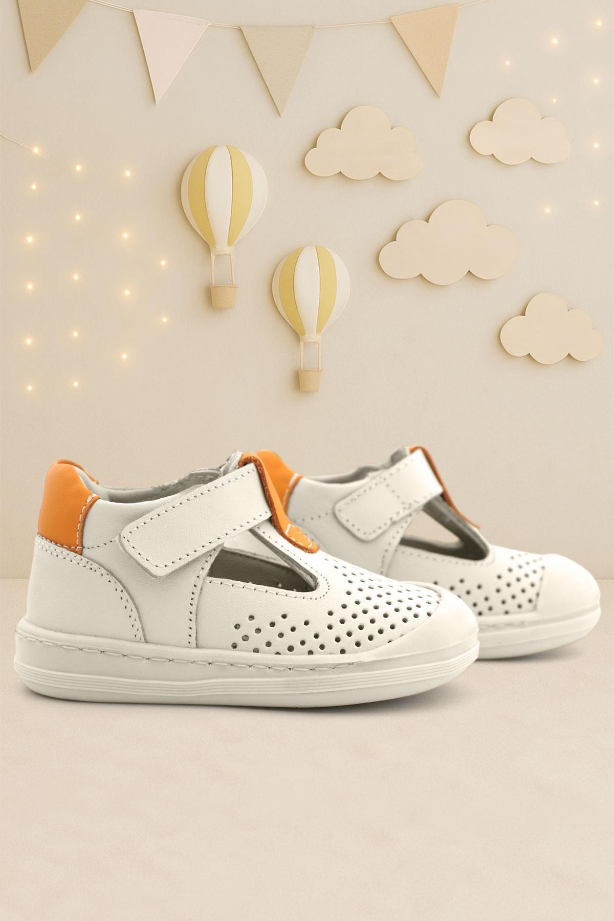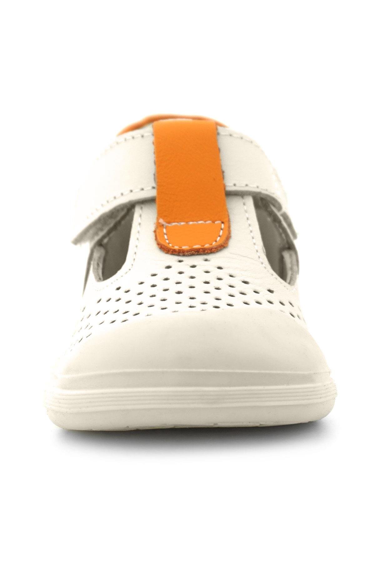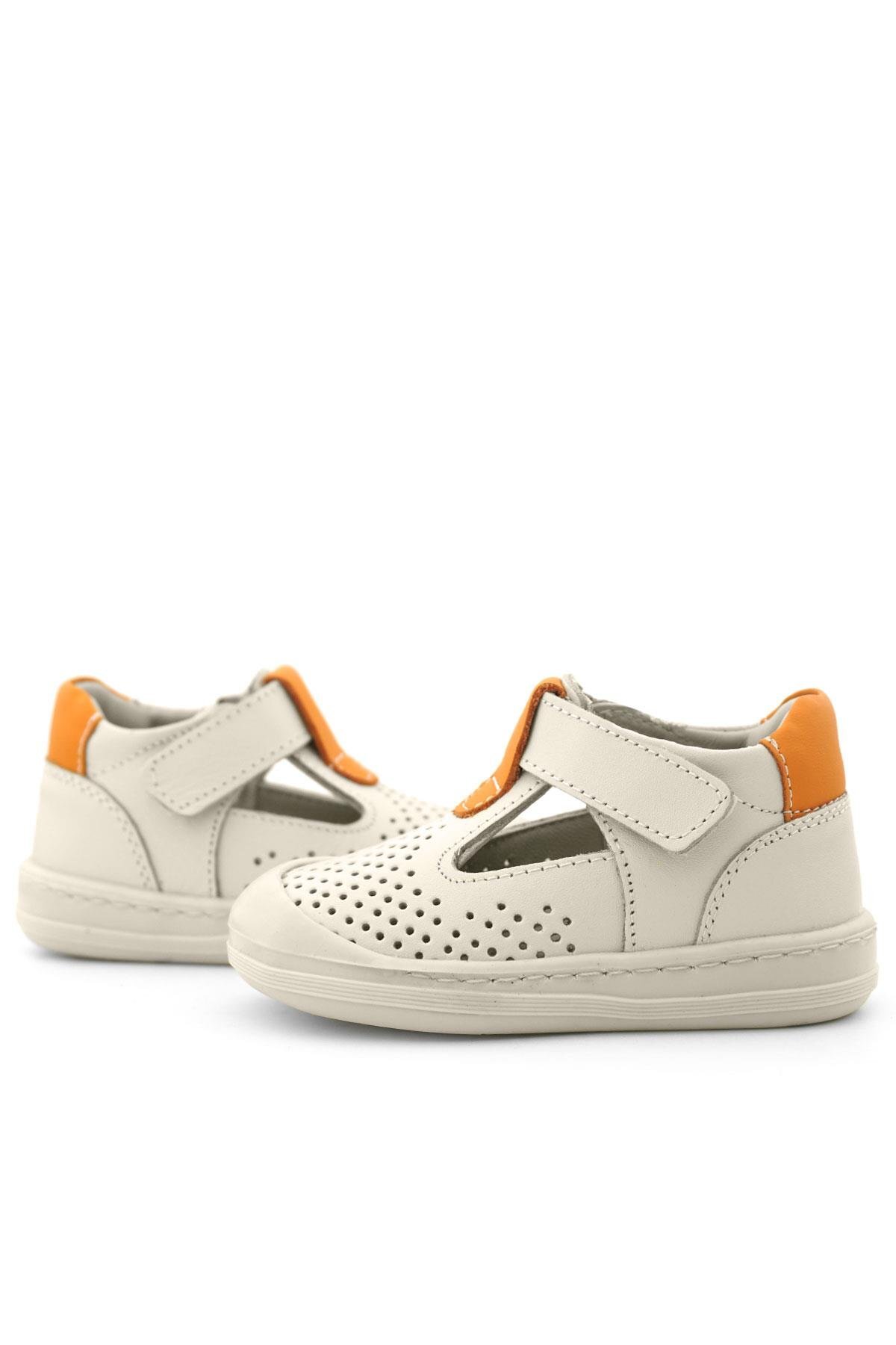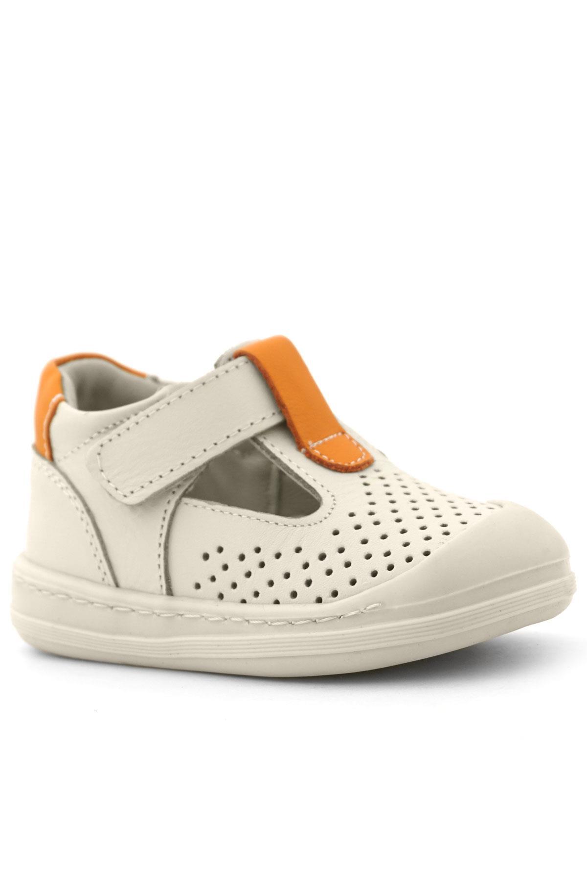 Gelince Haber VerRakerplus Shaun Hakiki Deri Bej Turuncu Cırtlı Anatomik Bebek Sandalet
