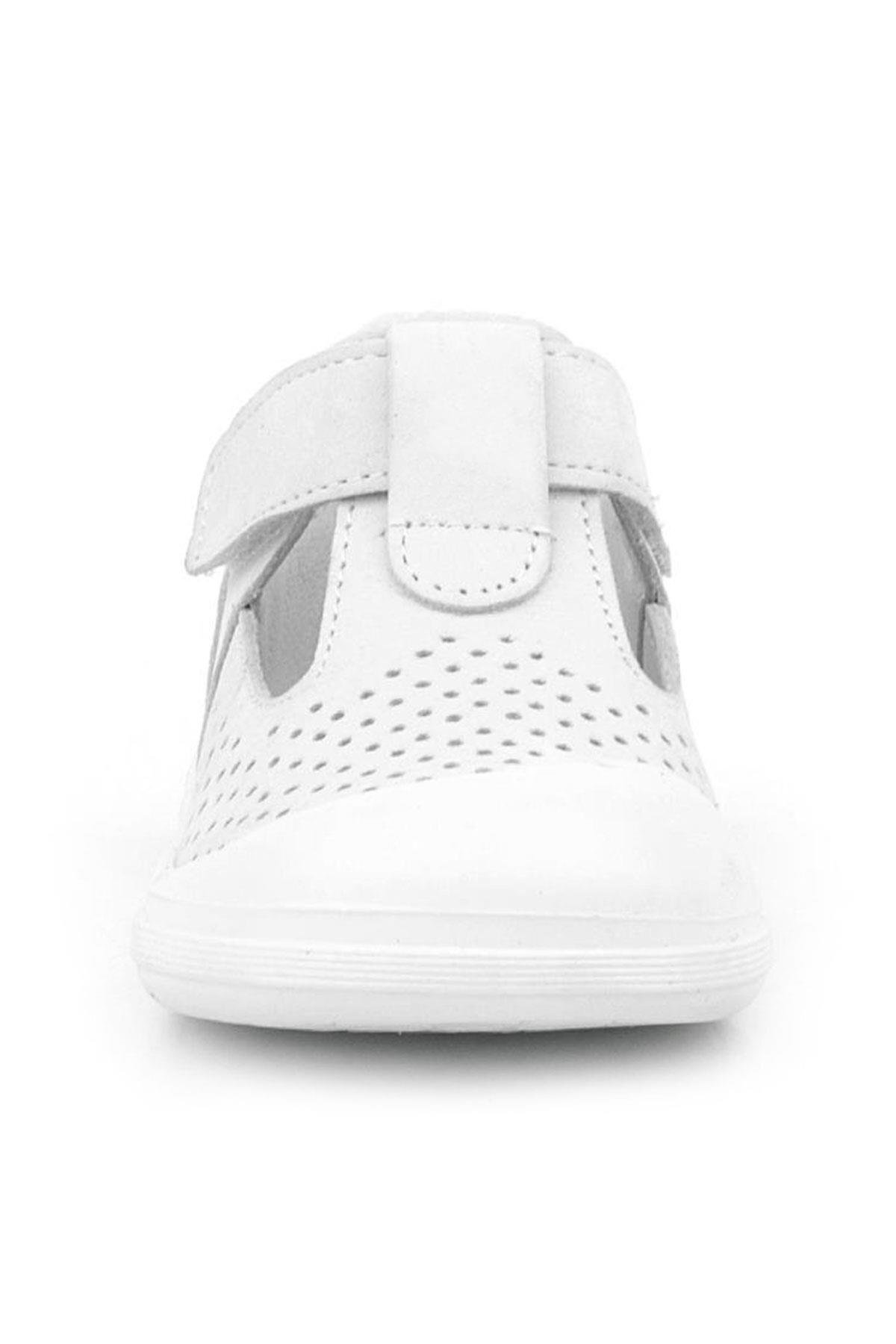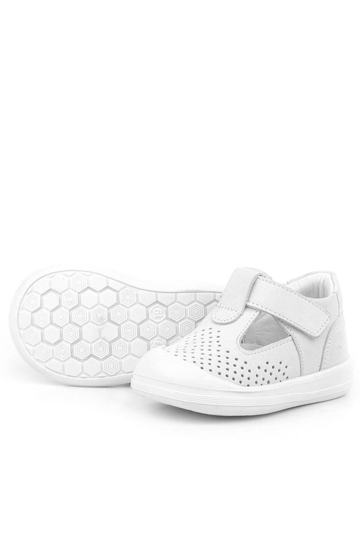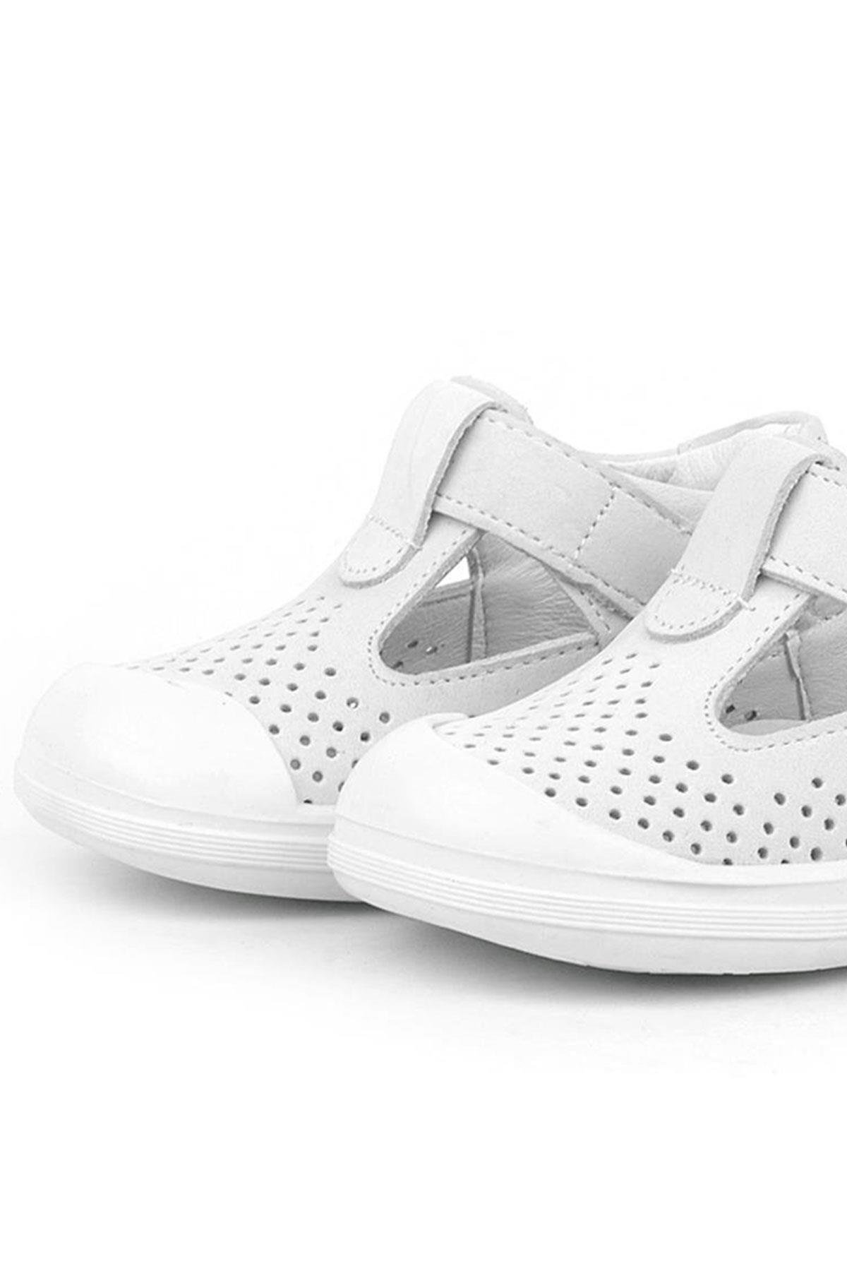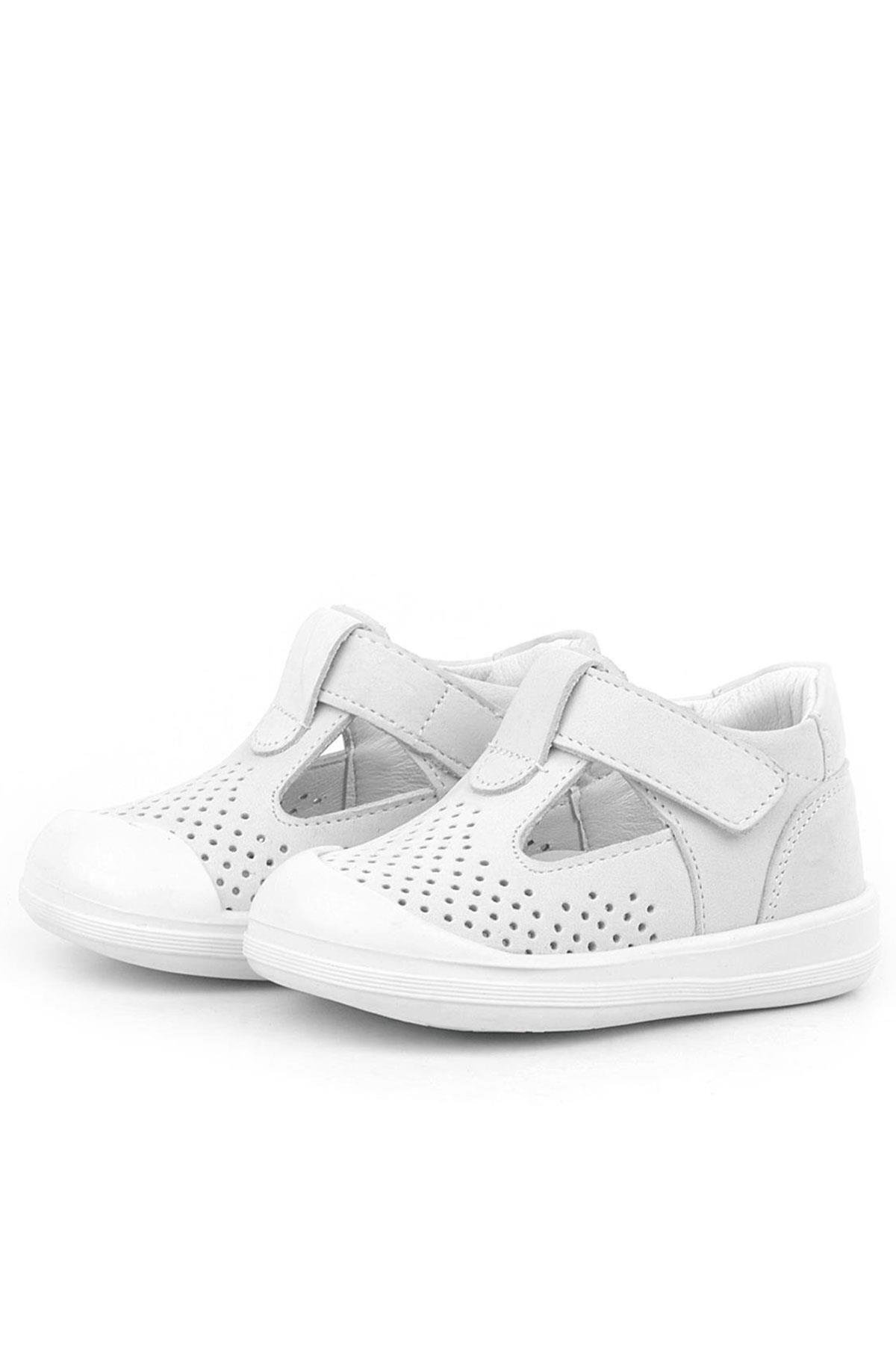 Rakerplus Shaun Hakiki Deri Beyaz Cırtlı Anatomik Bebek Sandalet